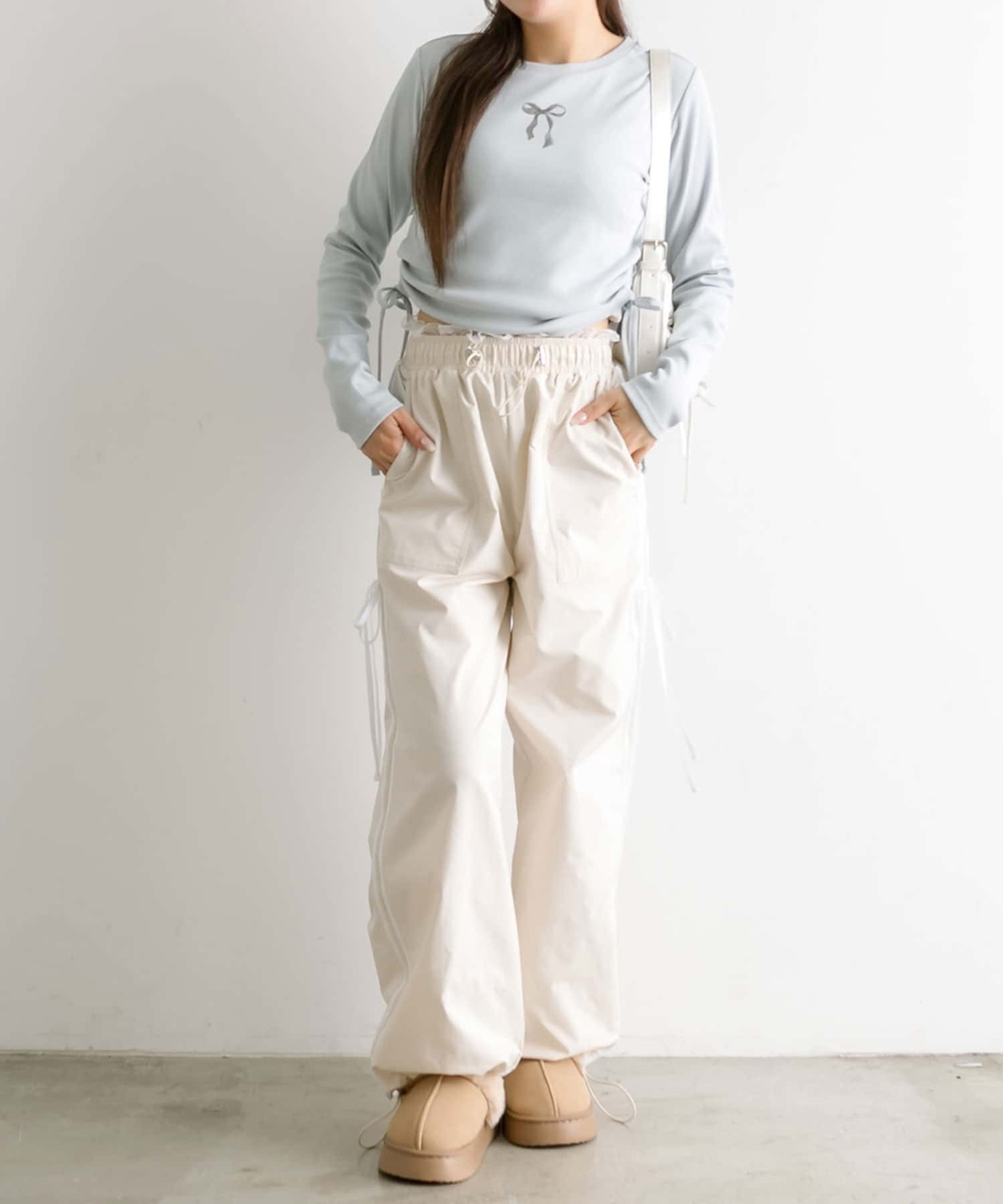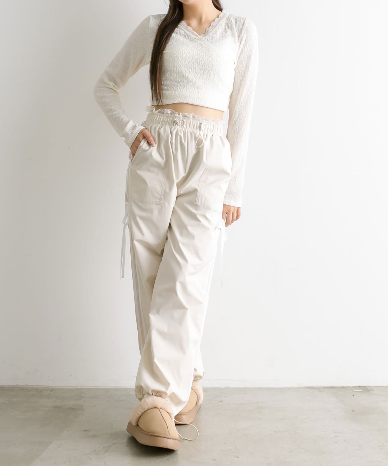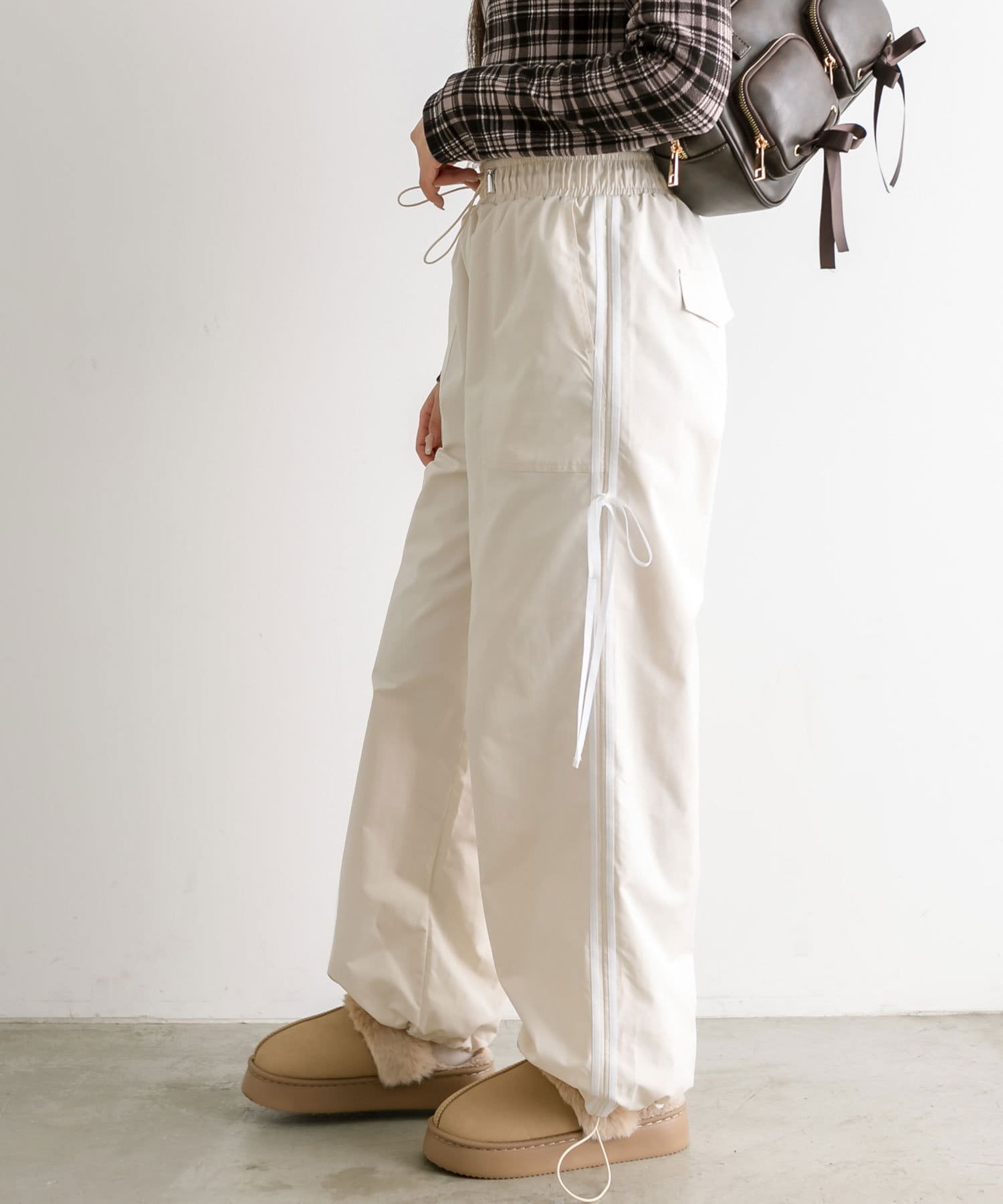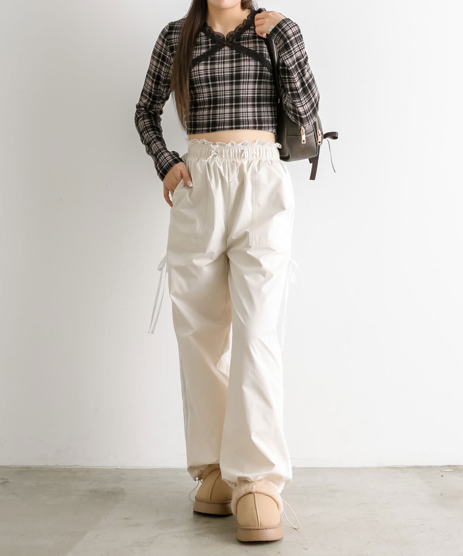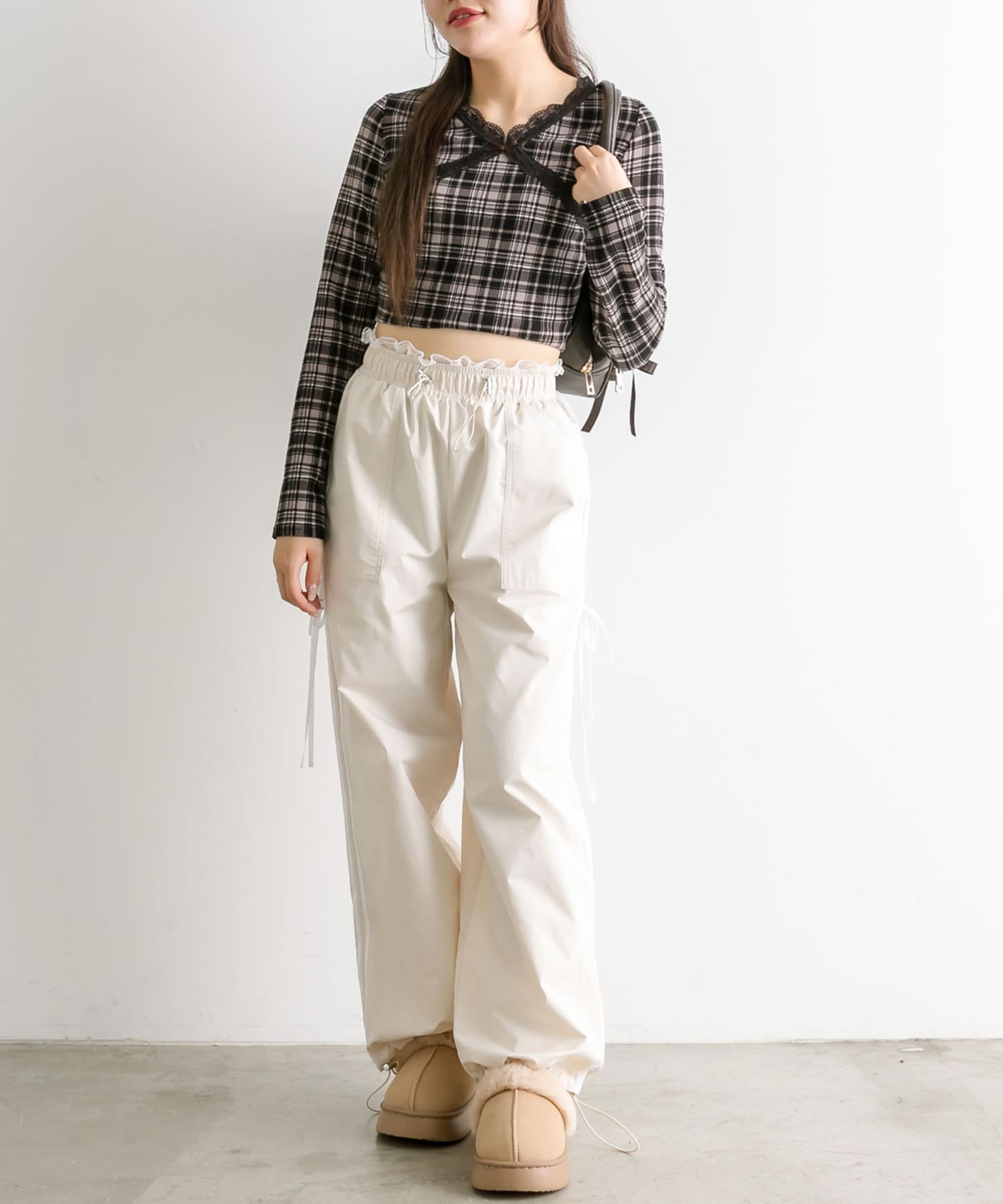 レースとリボンで甘さも兼ね備えたラインパンツ