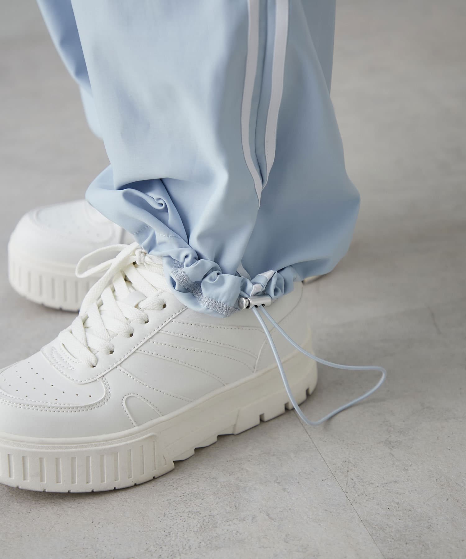・裾もドロストゴムで絞り具合を調節できるので、お好みのシルエットに変えて着用していただけます。