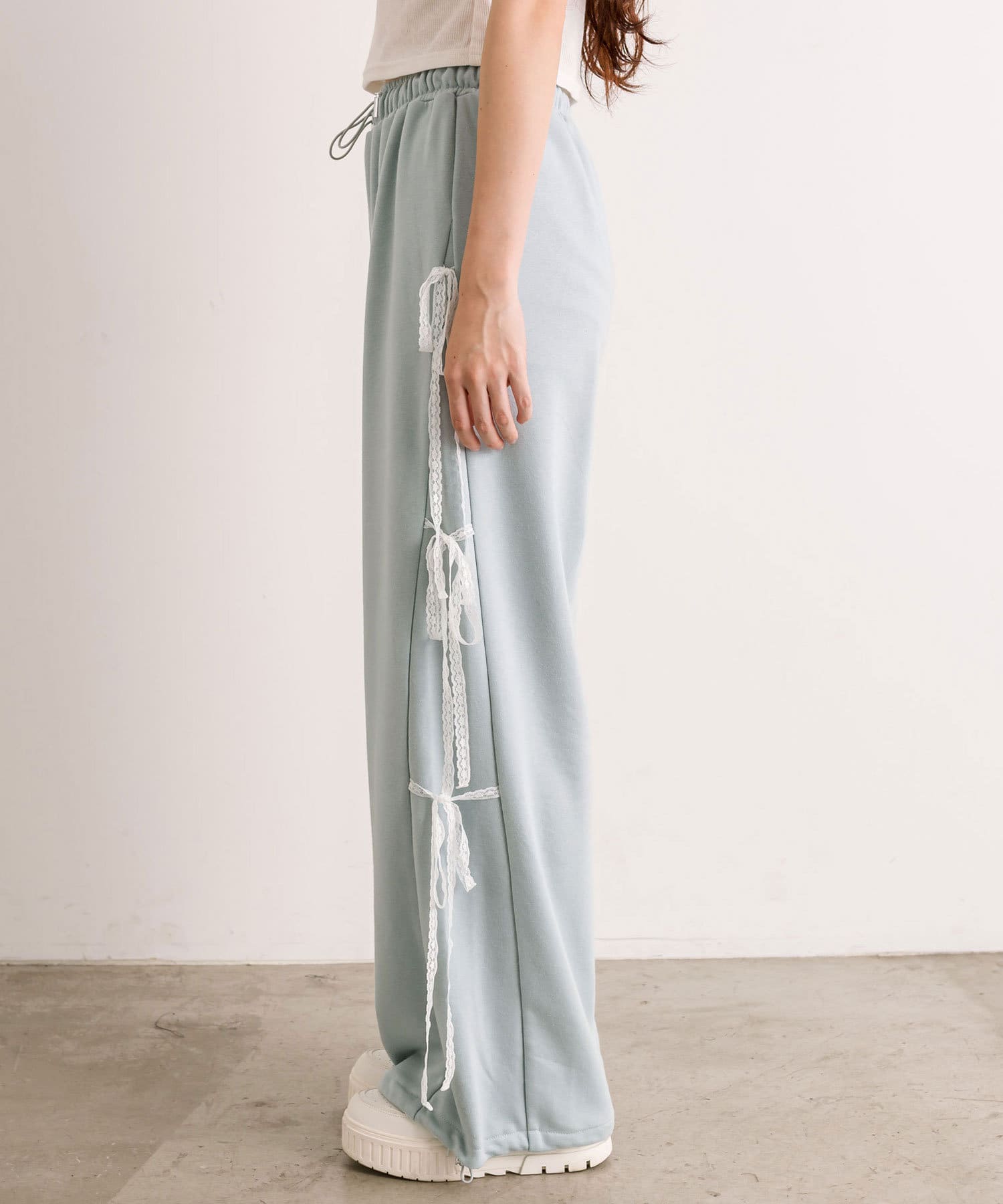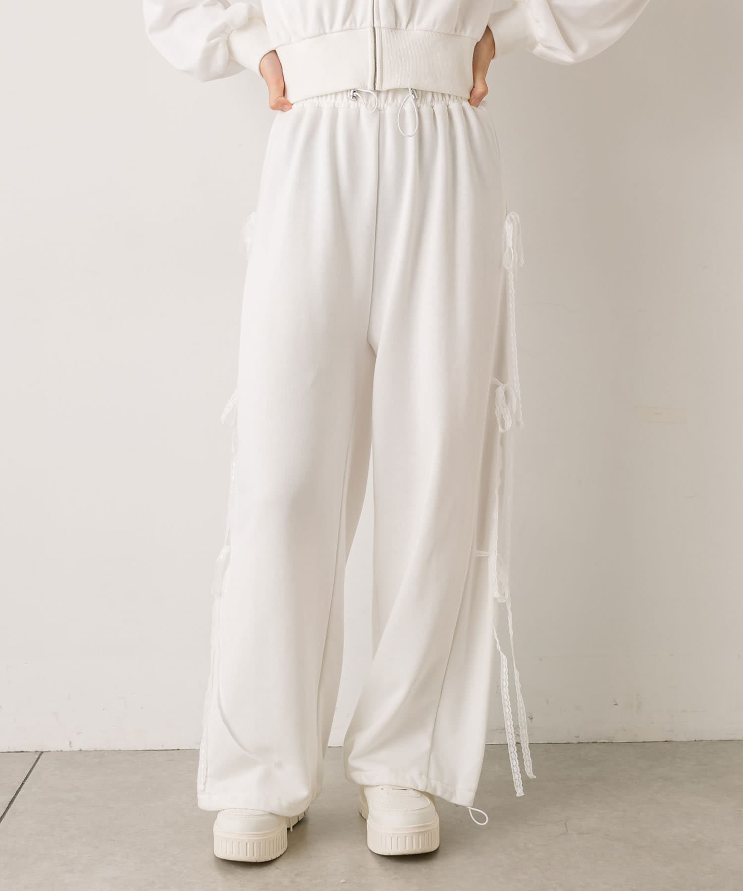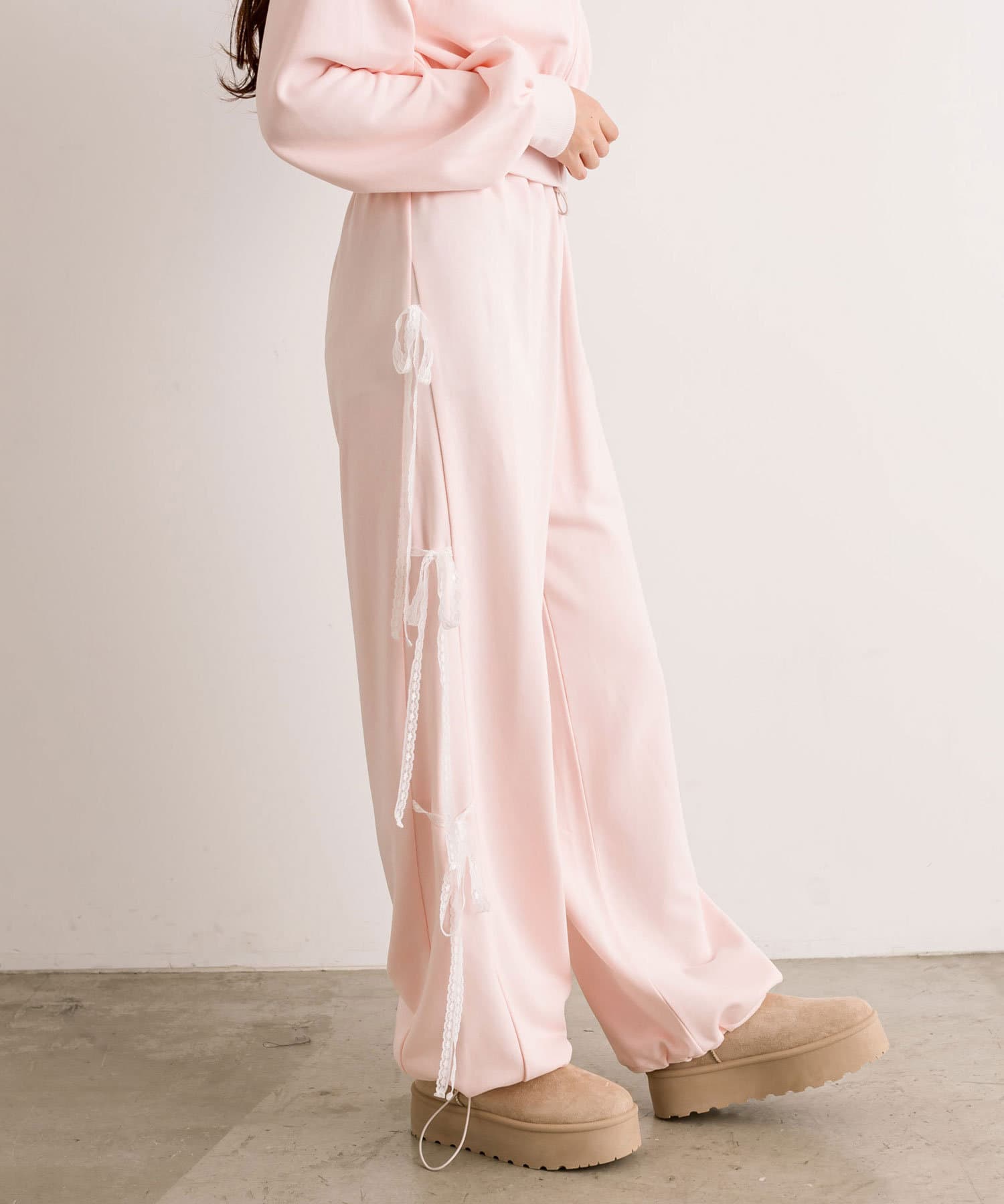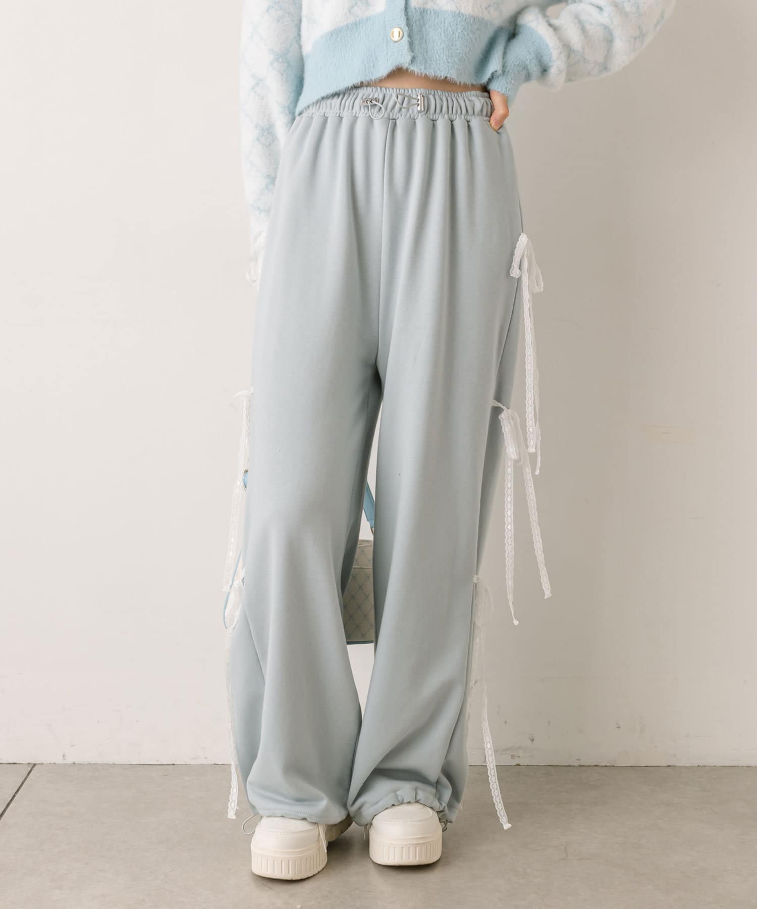 ・サイドのレースリボンがかわいいトレンドライクなスウェットパンツ。