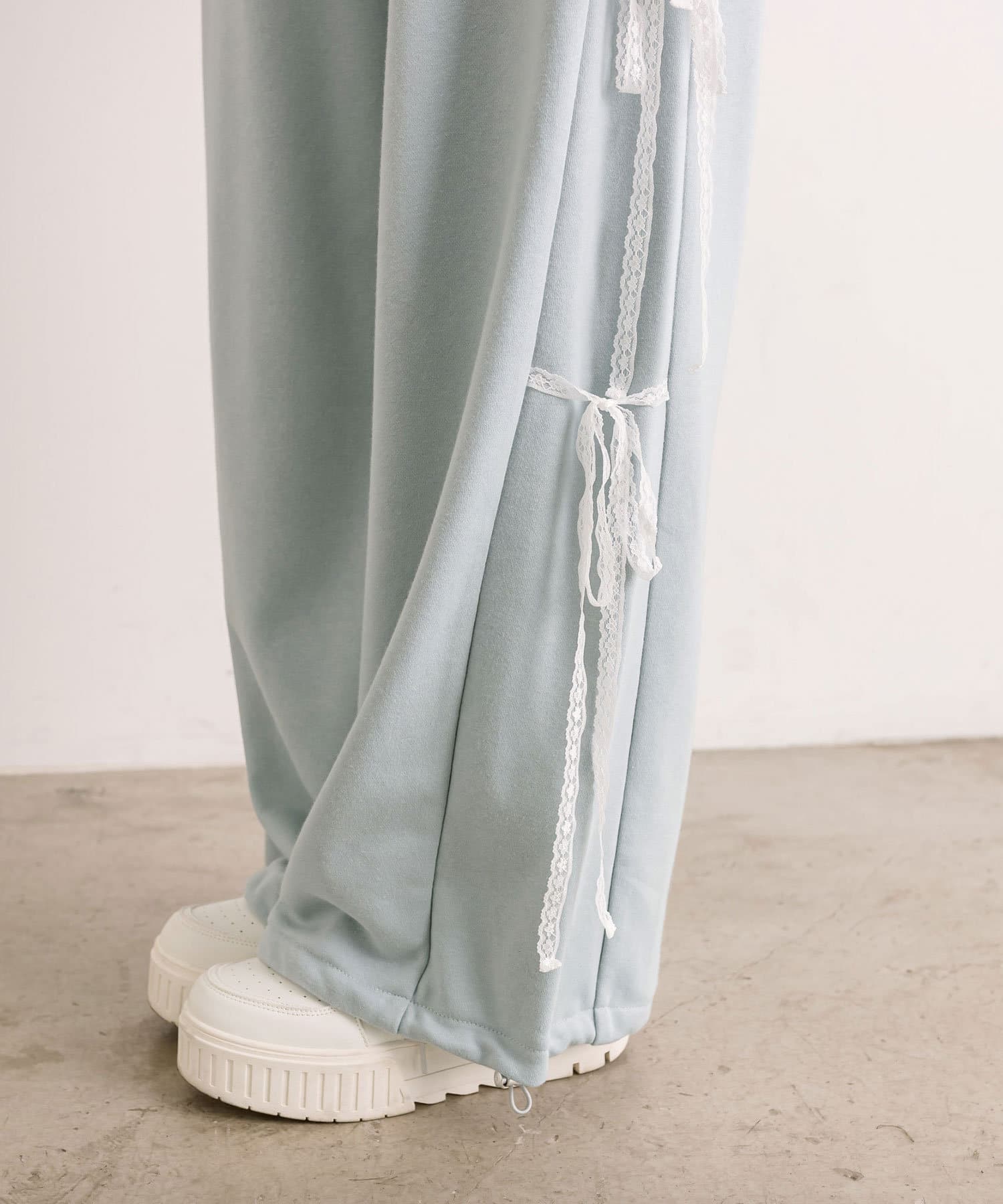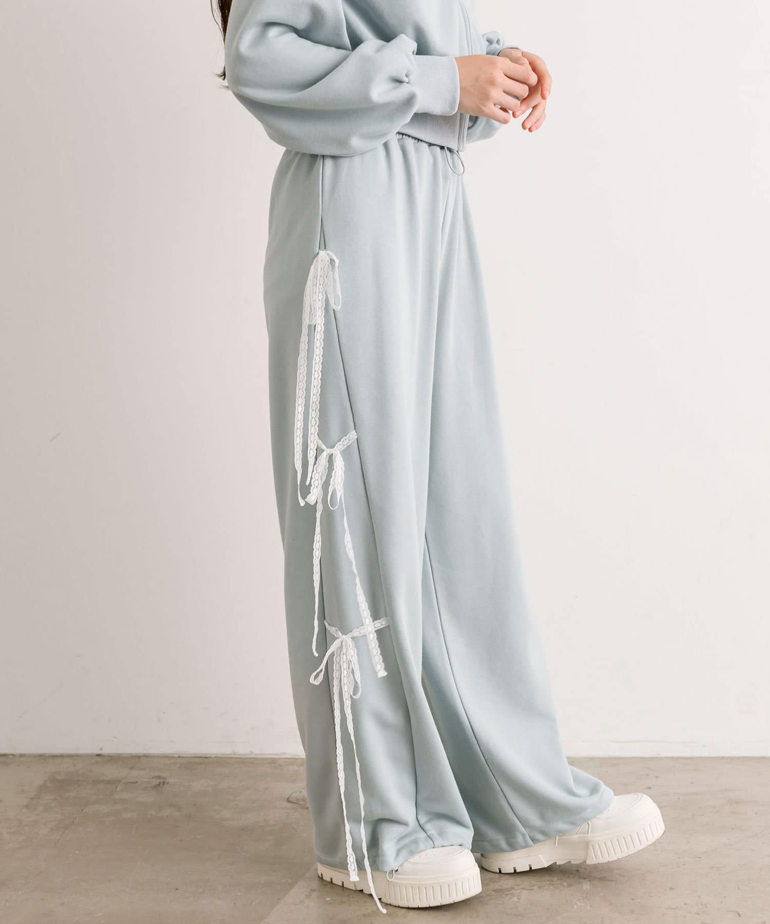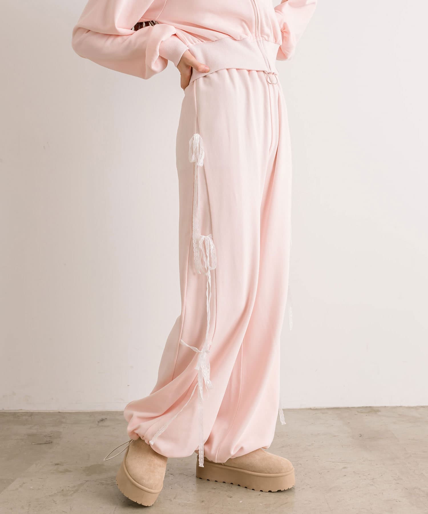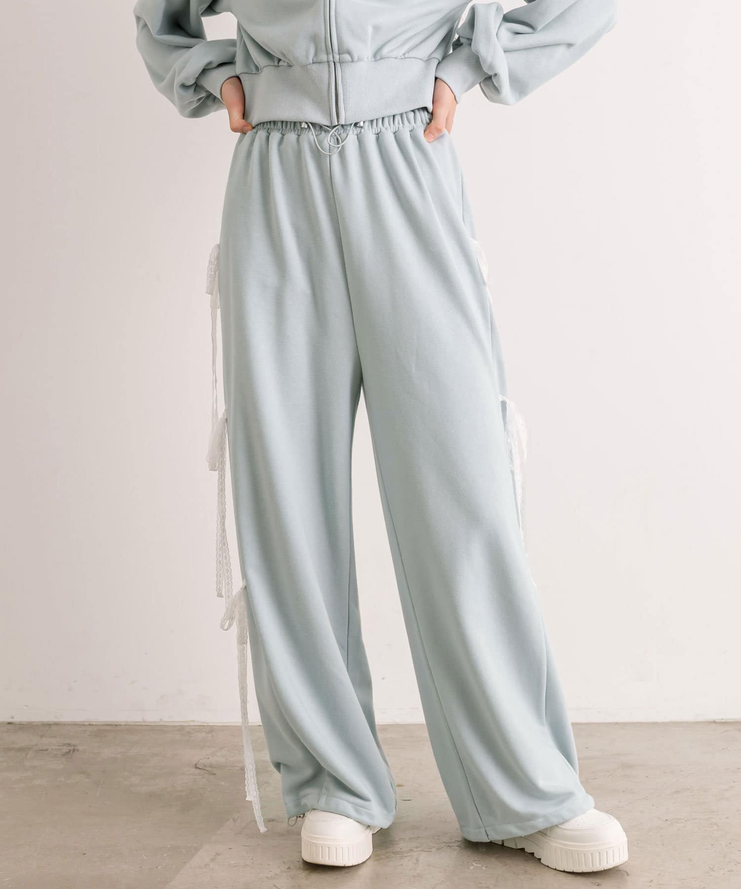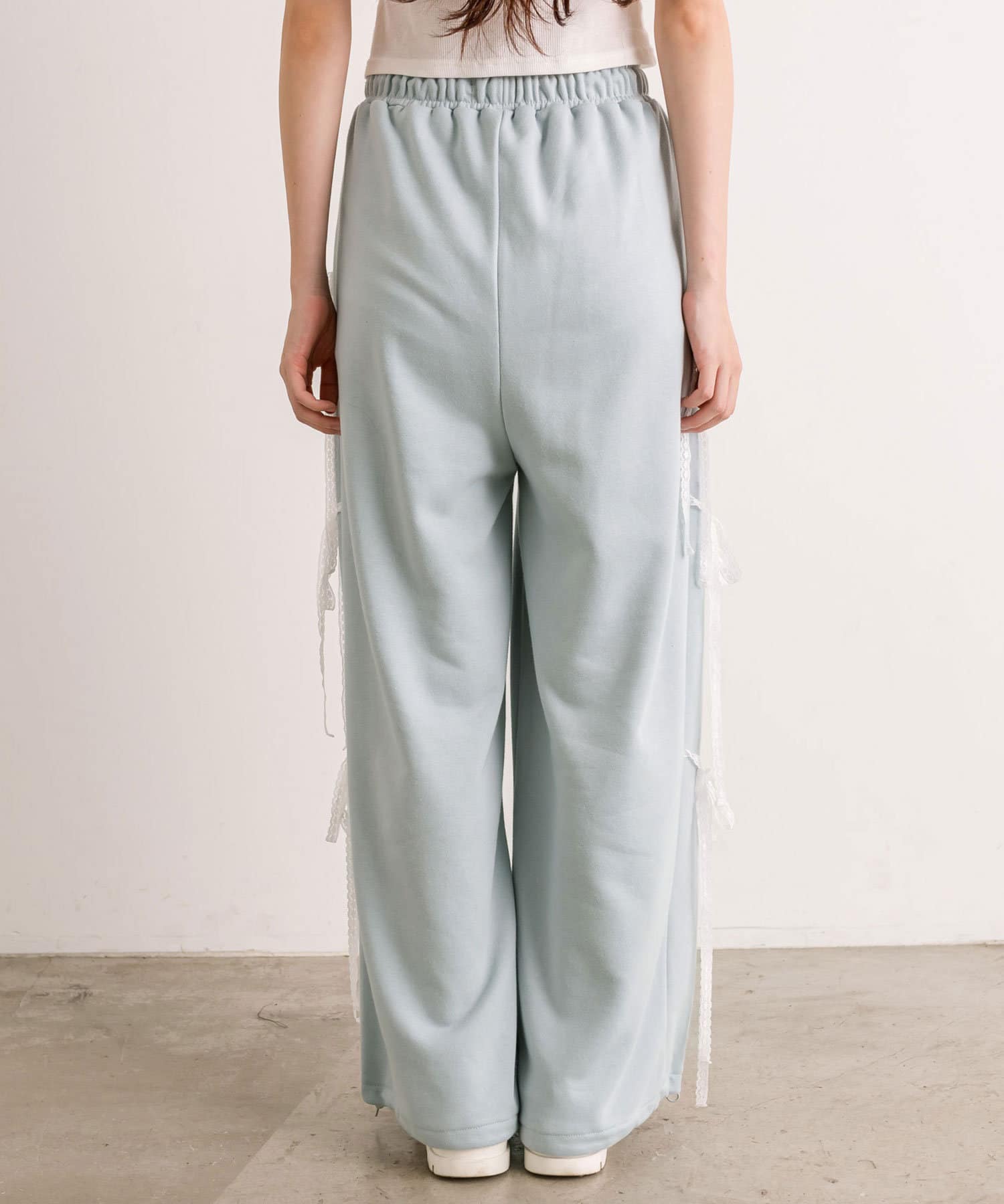 ・サイドのレースリボンがかわいいトレンドライクなスウェットパンツ。