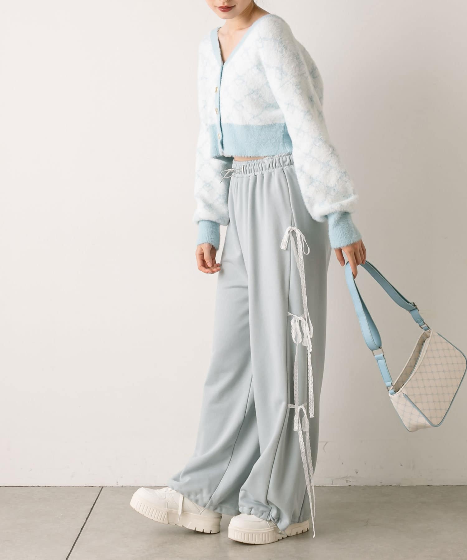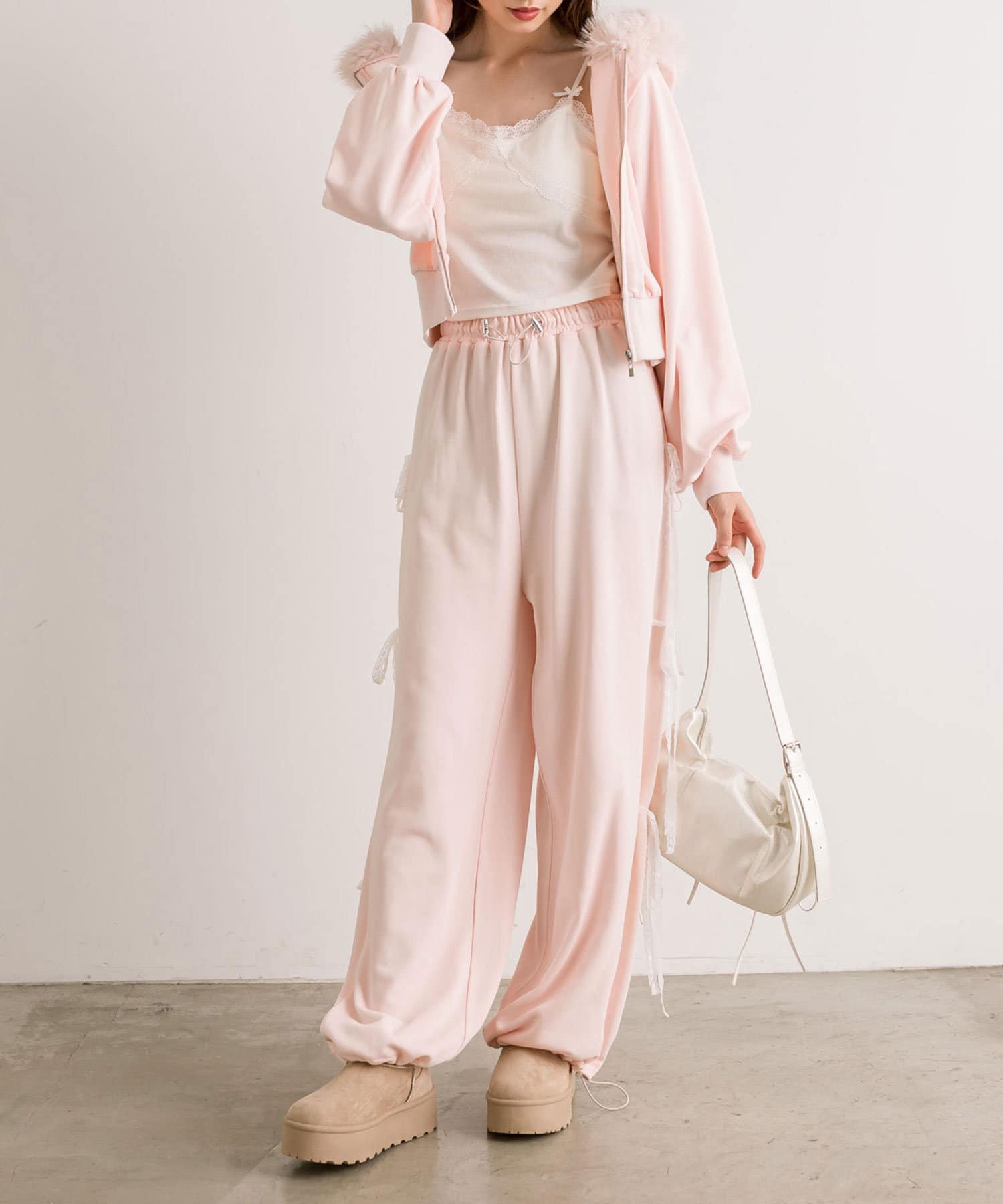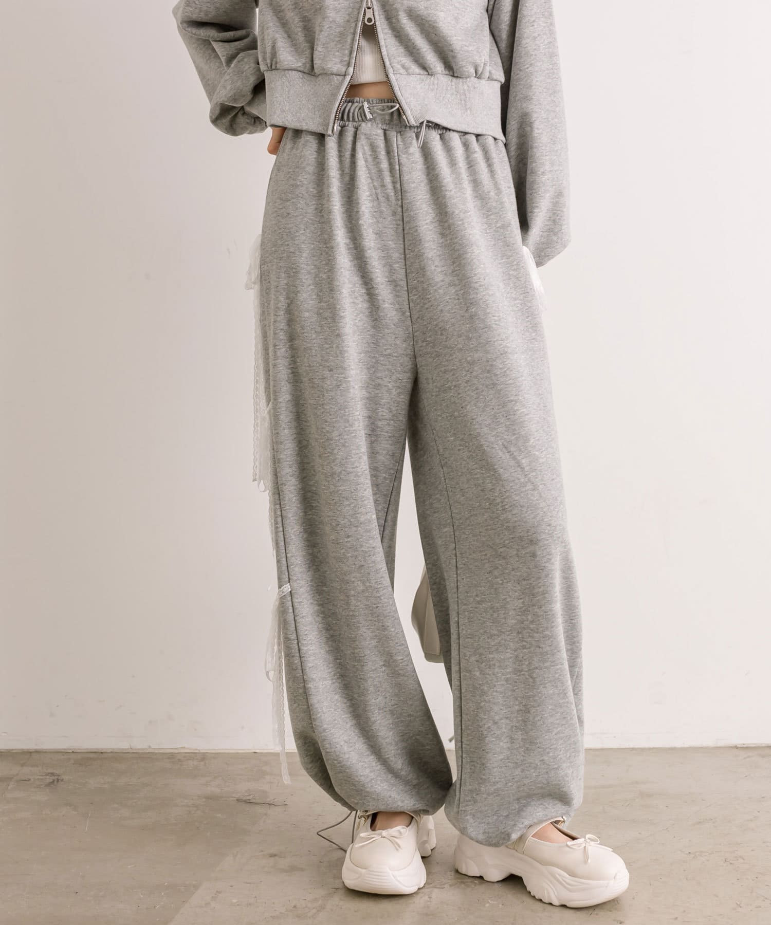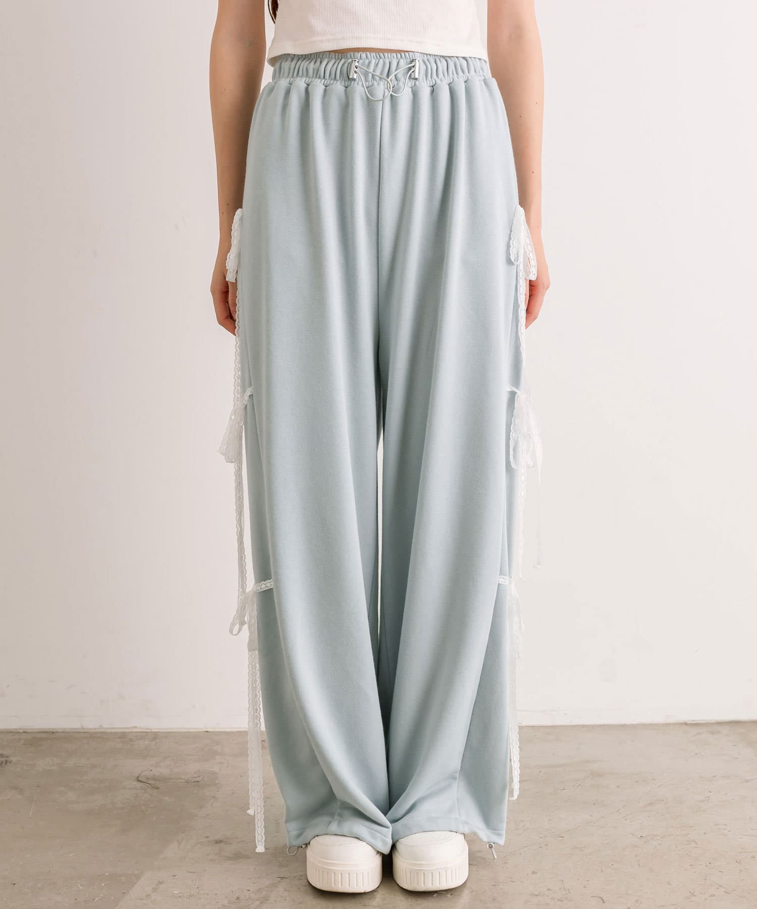 ・サイドのレースリボンがかわいいトレンドライクなスウェットパンツ。