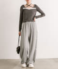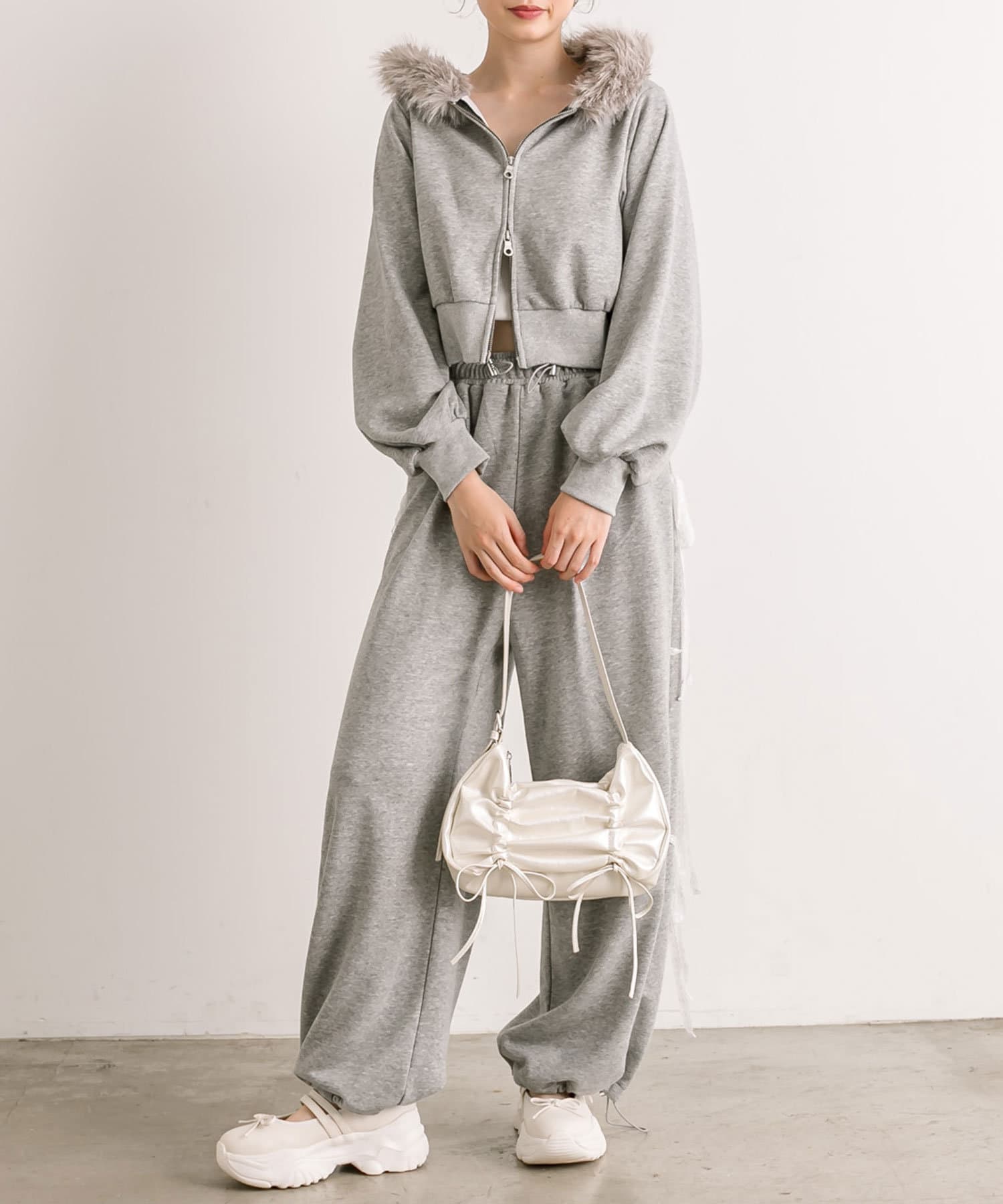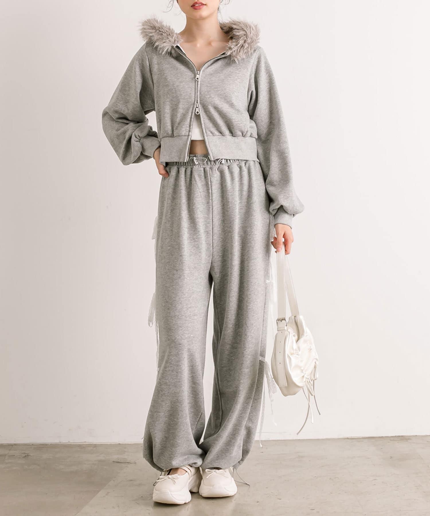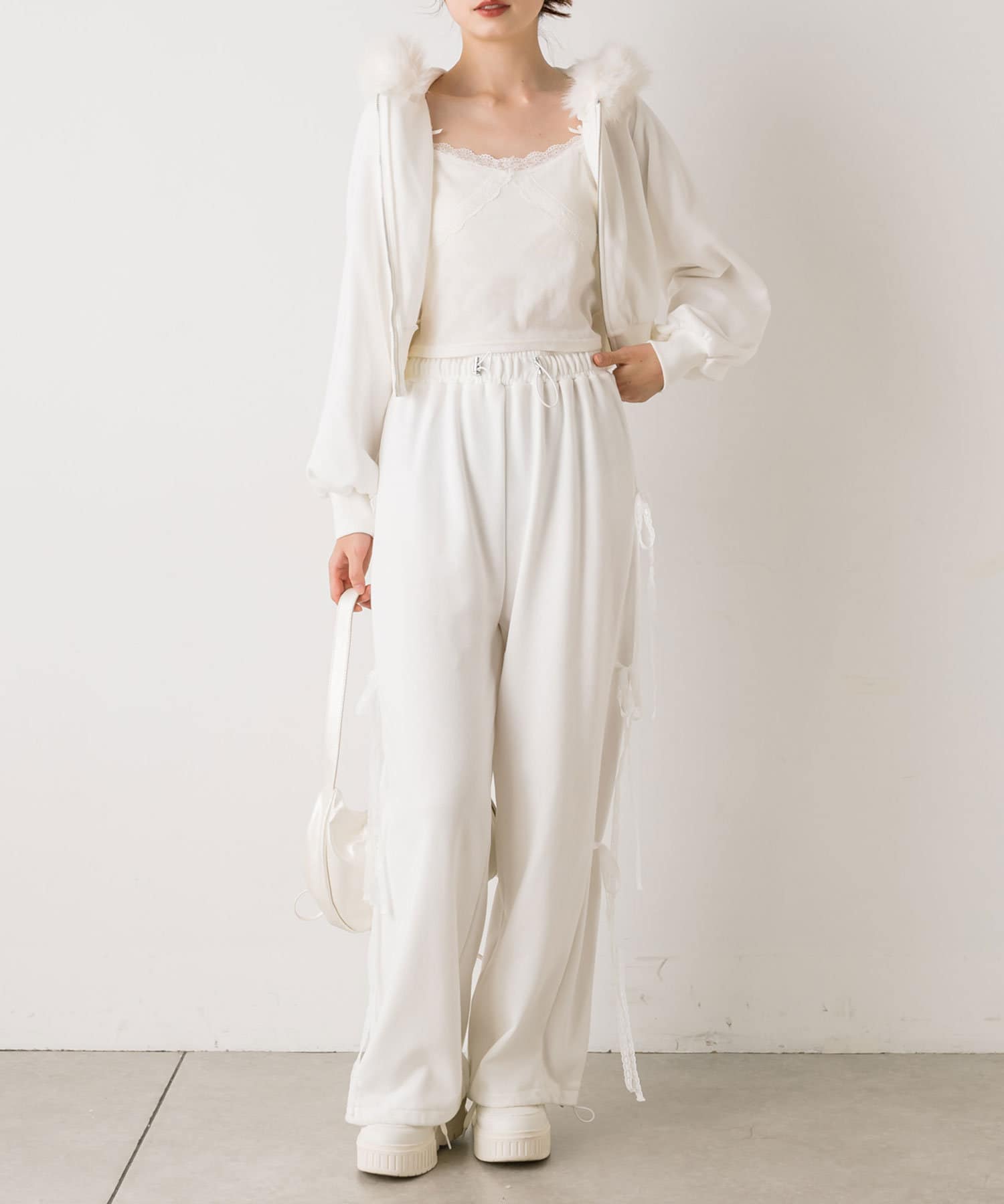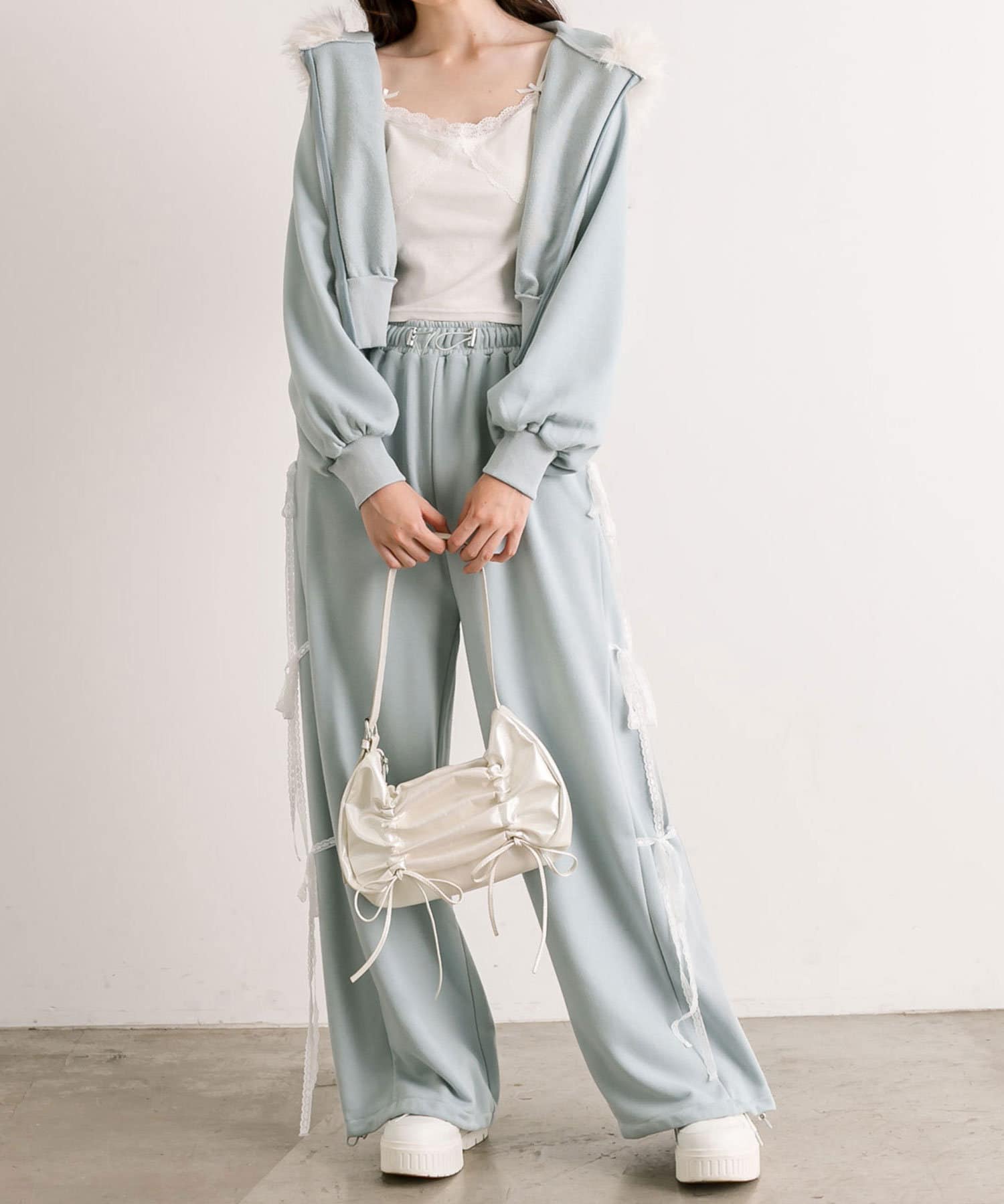 ・サイドのレースリボンがかわいいトレンドライクなスウェットパンツ。