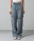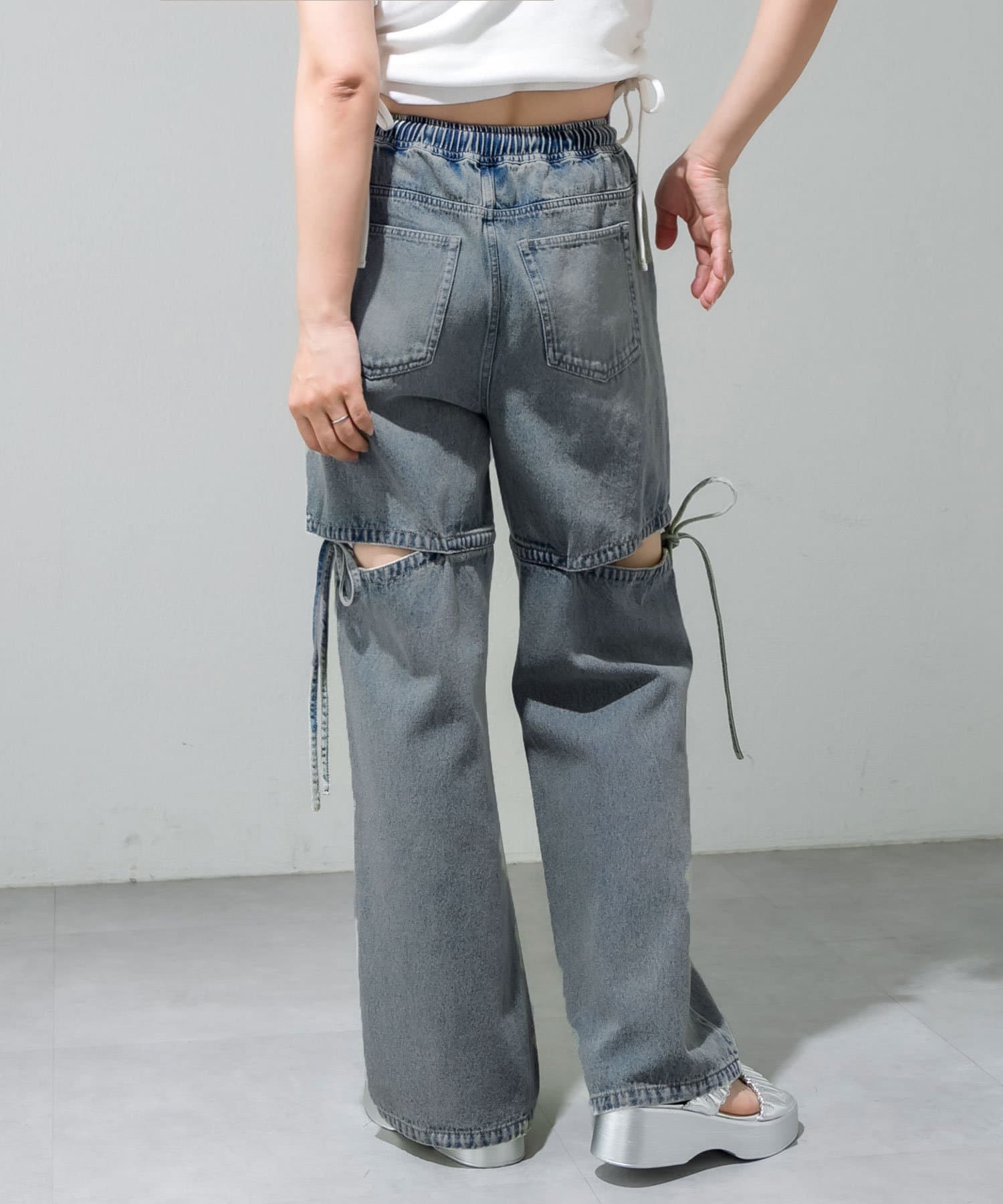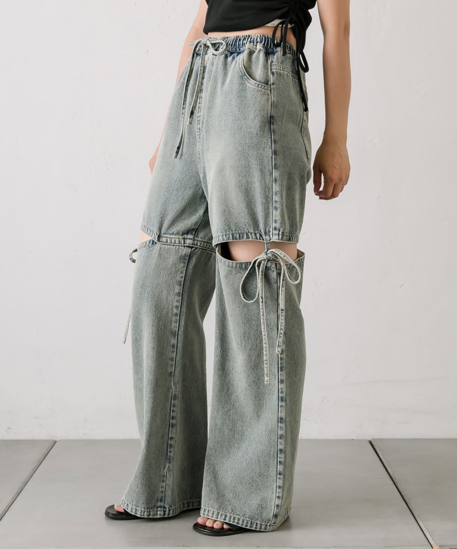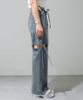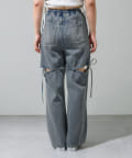 ・サイドスリットデザインで、程よく肌見せができるデニムパンツ。
