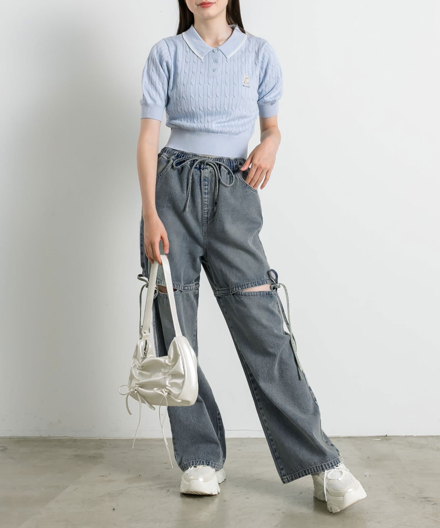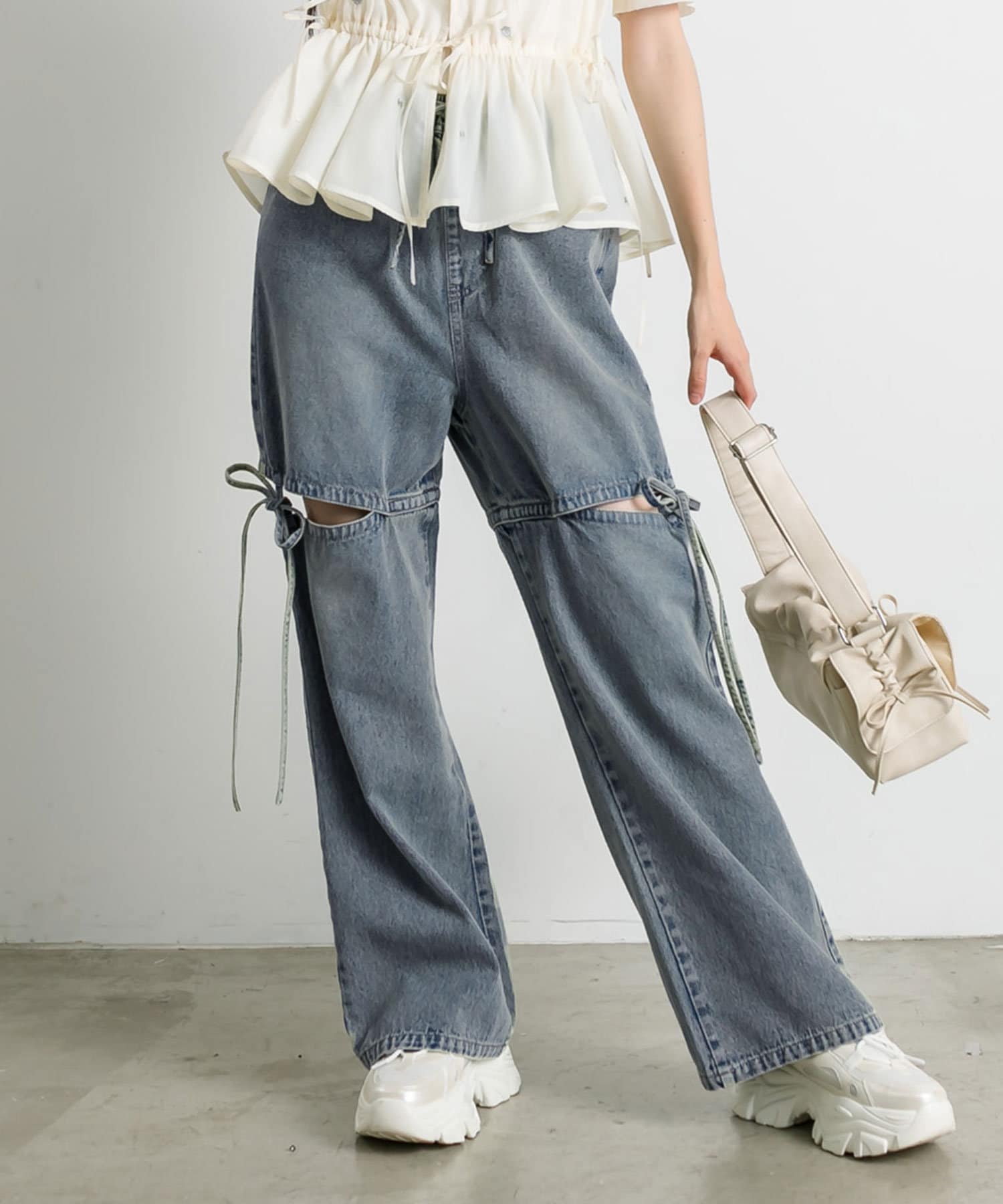 • OLIVE des OLIVE(オリーブ デ オリーブ) サイドスリットリボンアソートデニムパンツ