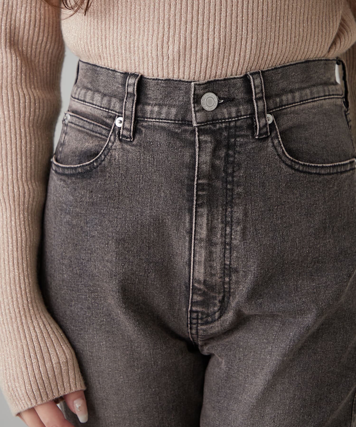 ・裾に向かって広がるフレアラインが美脚見えを叶えるデニムパンツ。