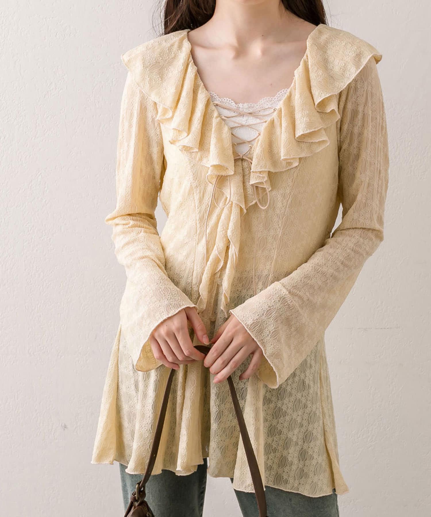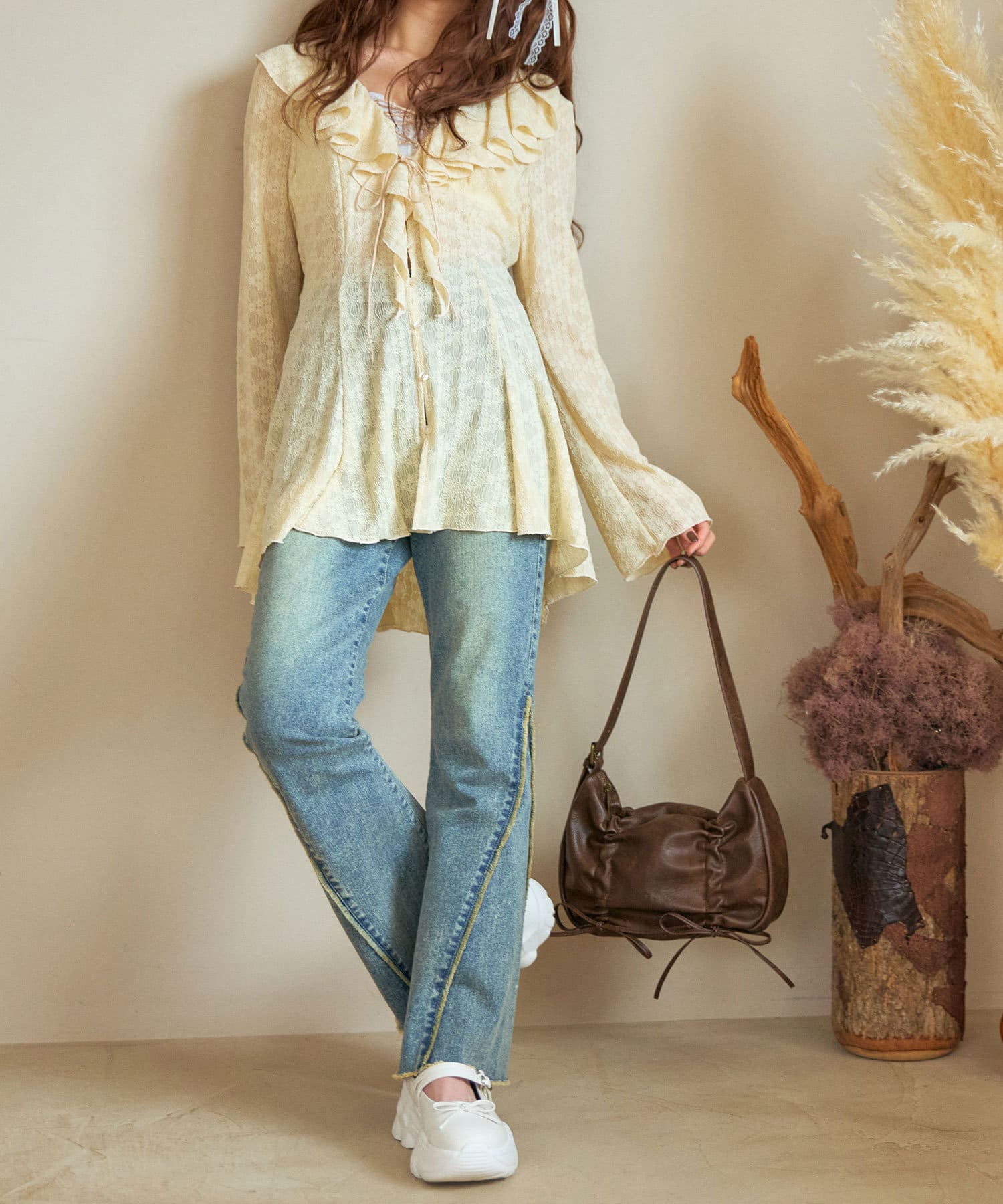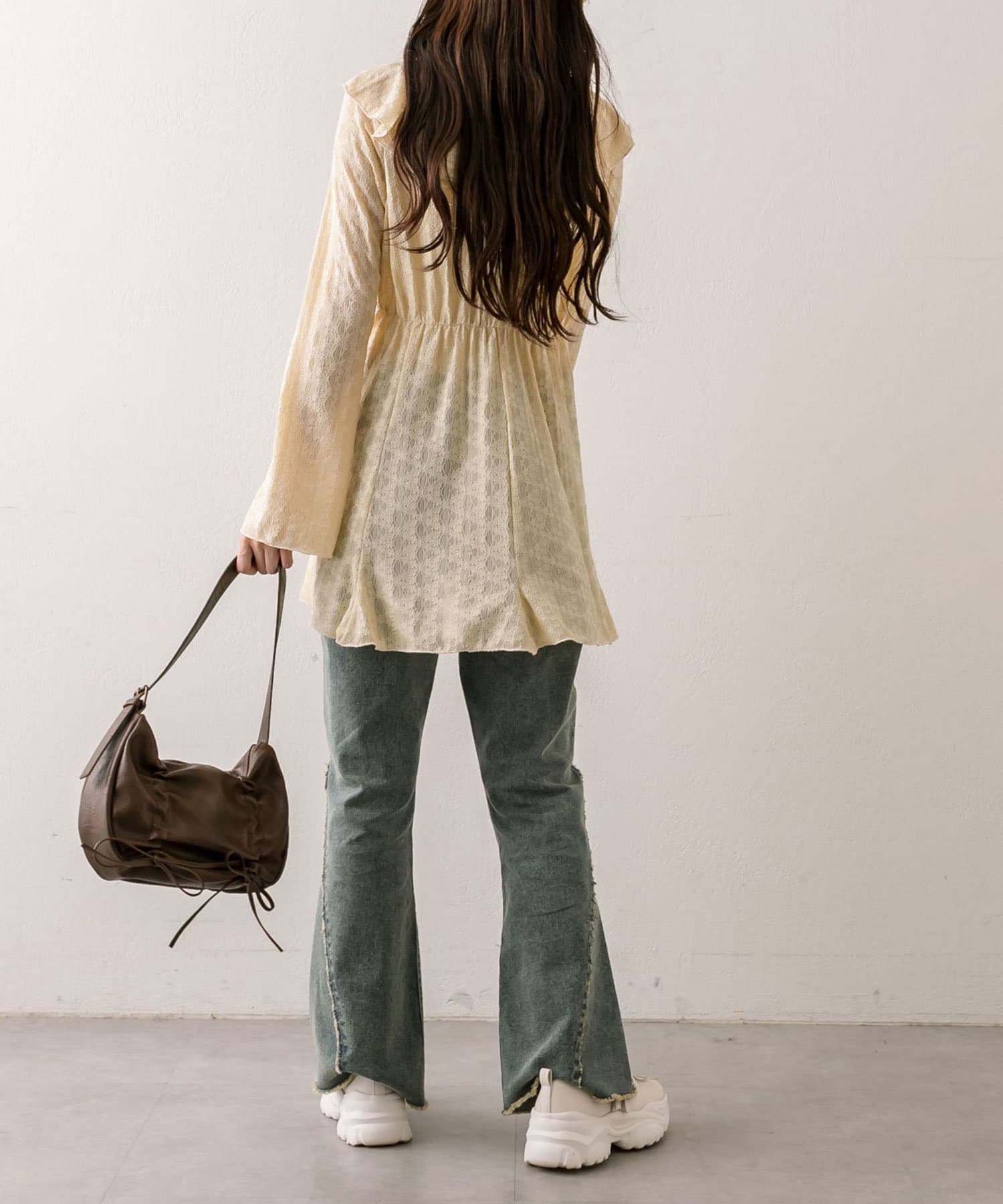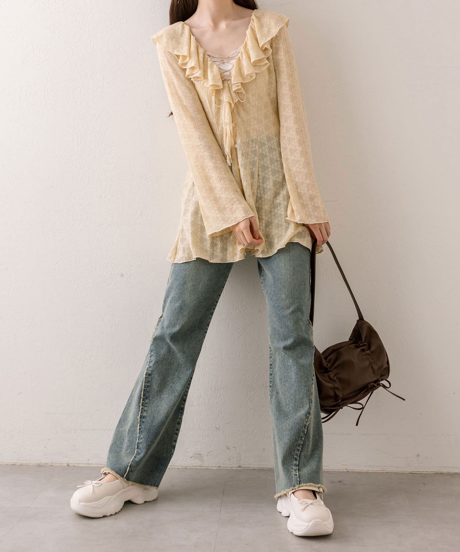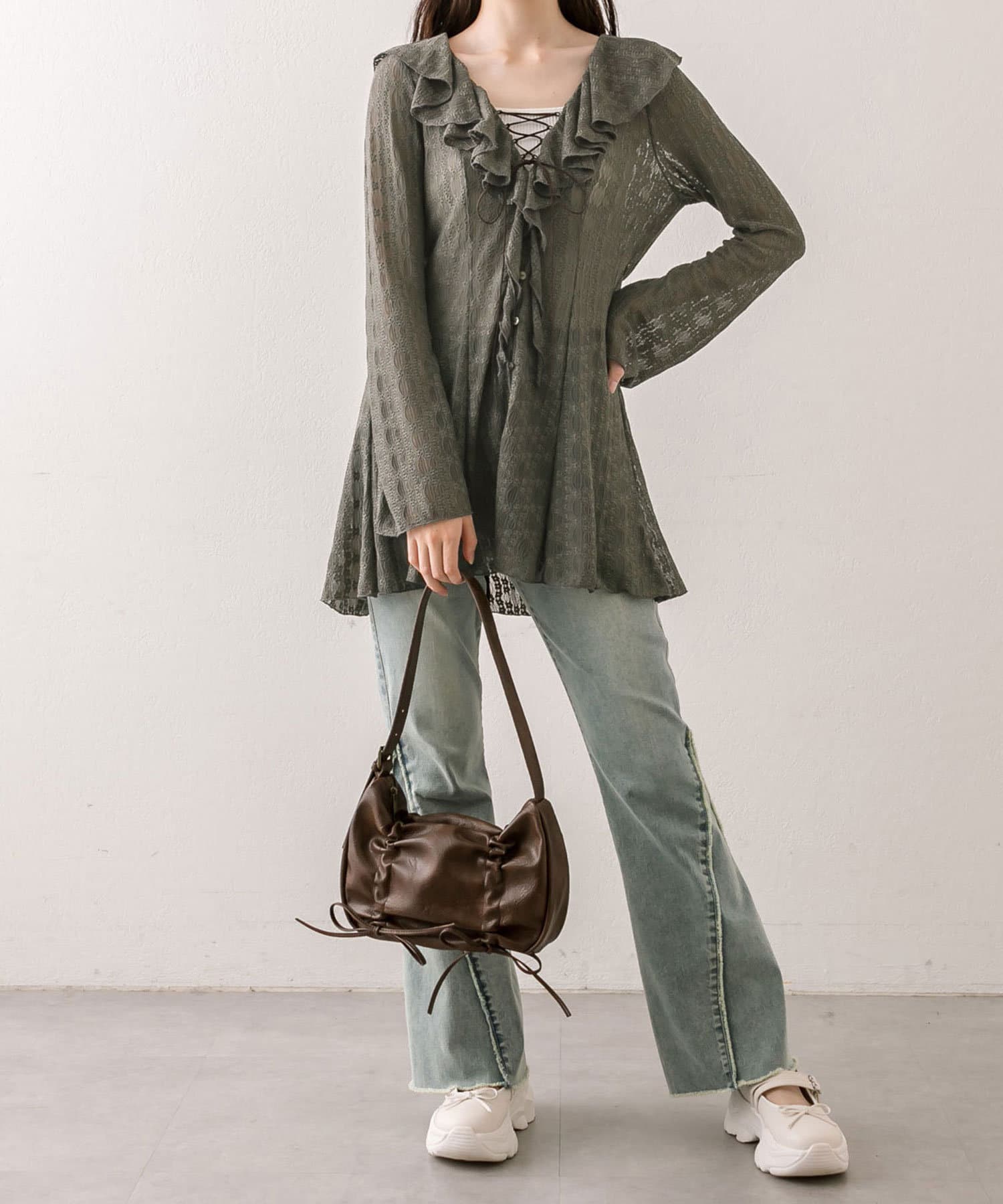 ・甘めが好きの方はミニボトムを合わせてミニワンピ風に着てもかわいいです。