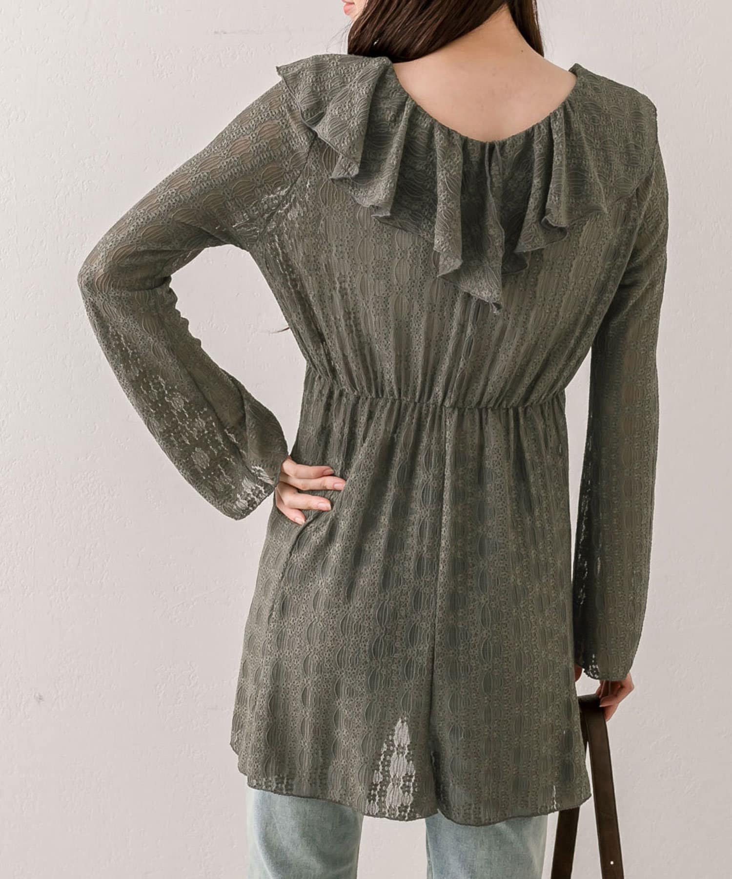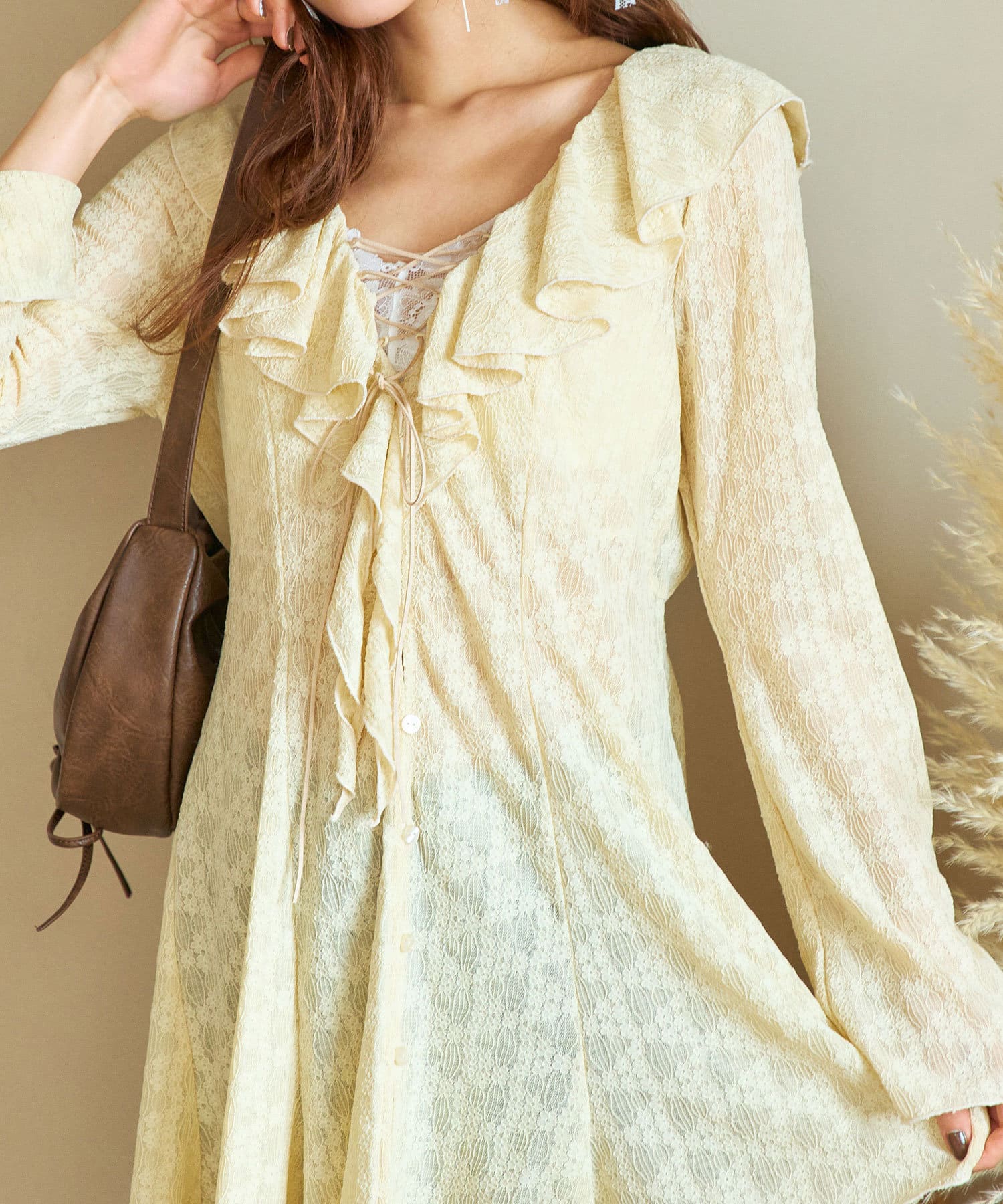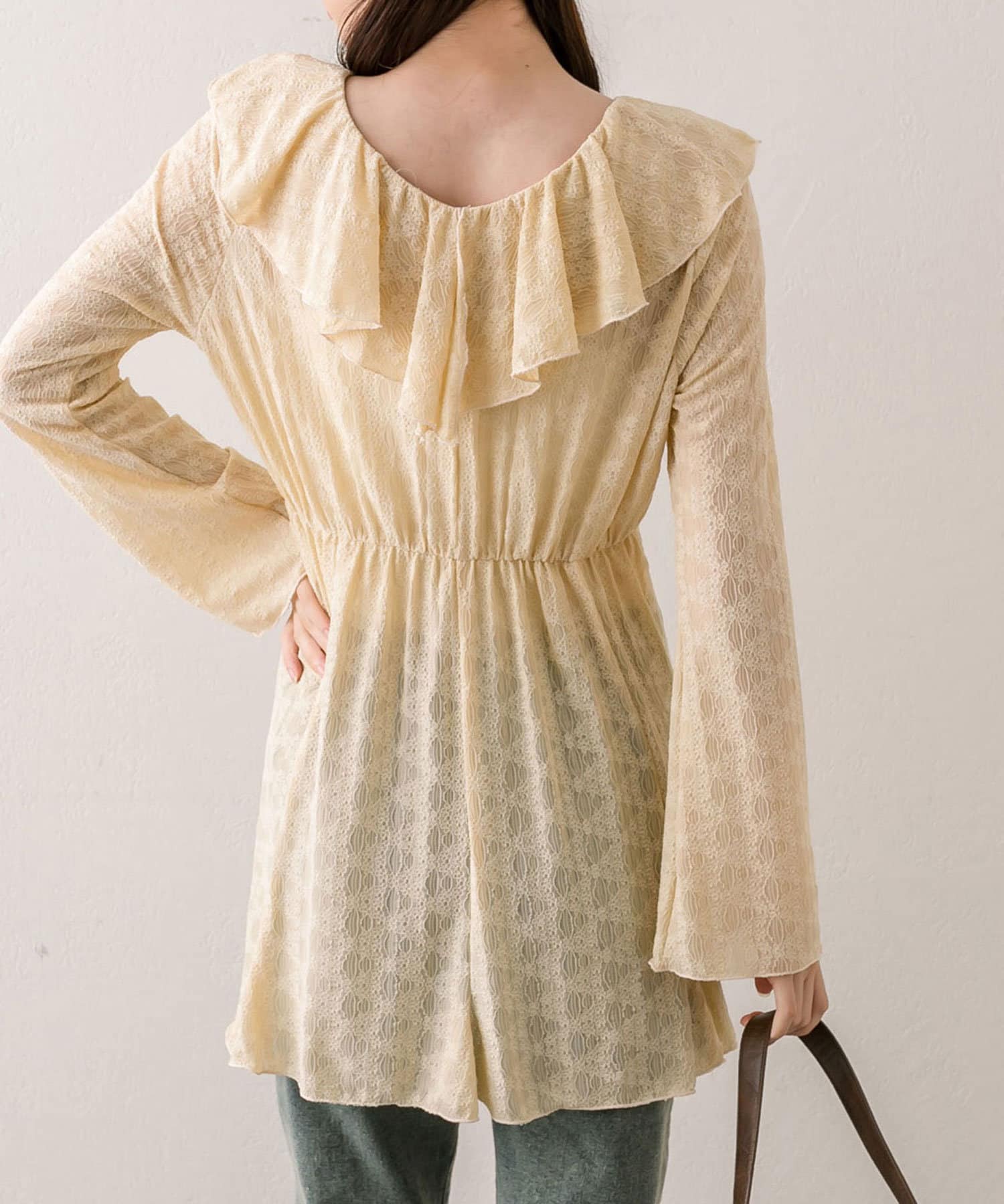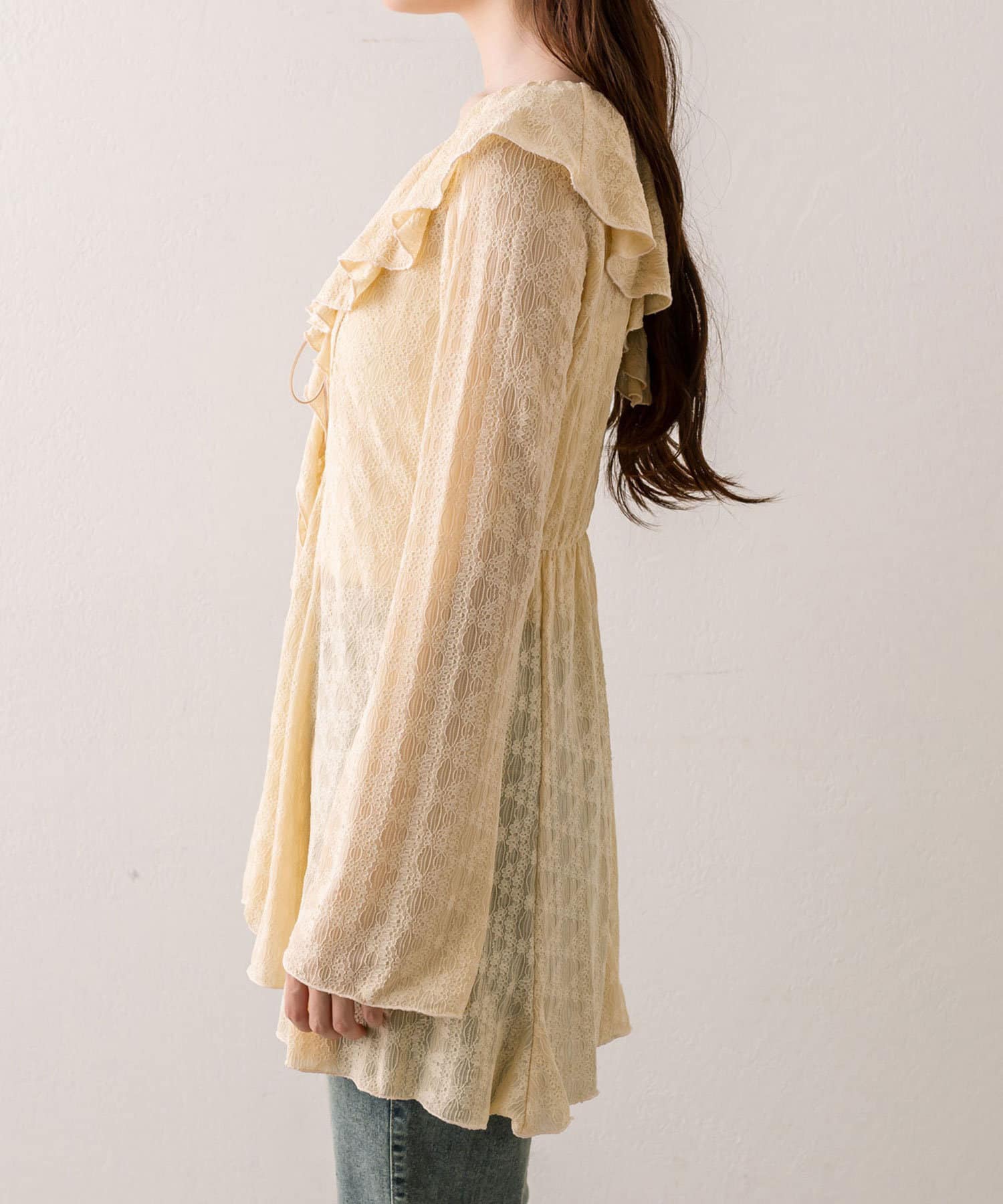 ・ボリューム感のあるラッフル部分が顔周りを華やかにしてくれます。