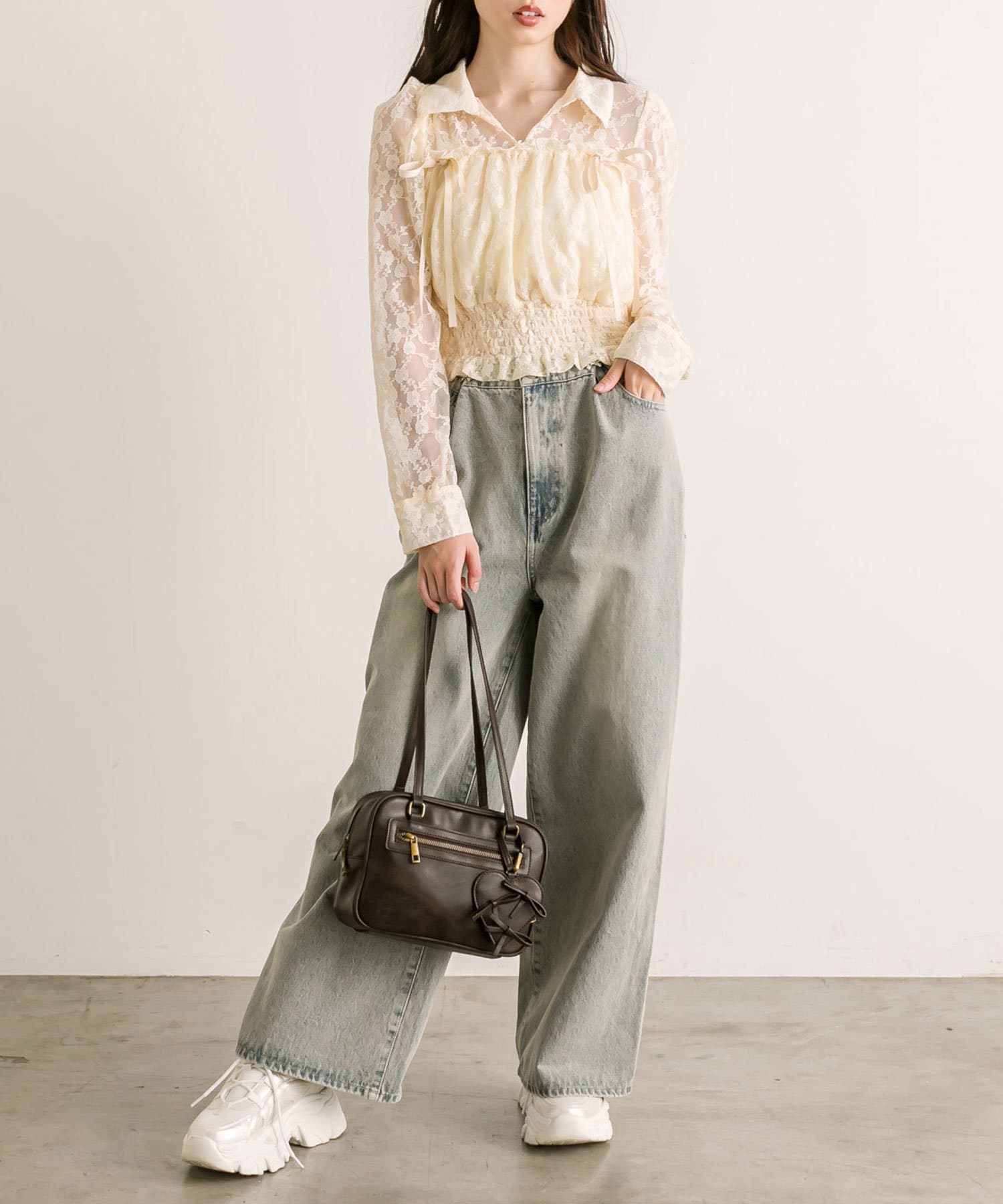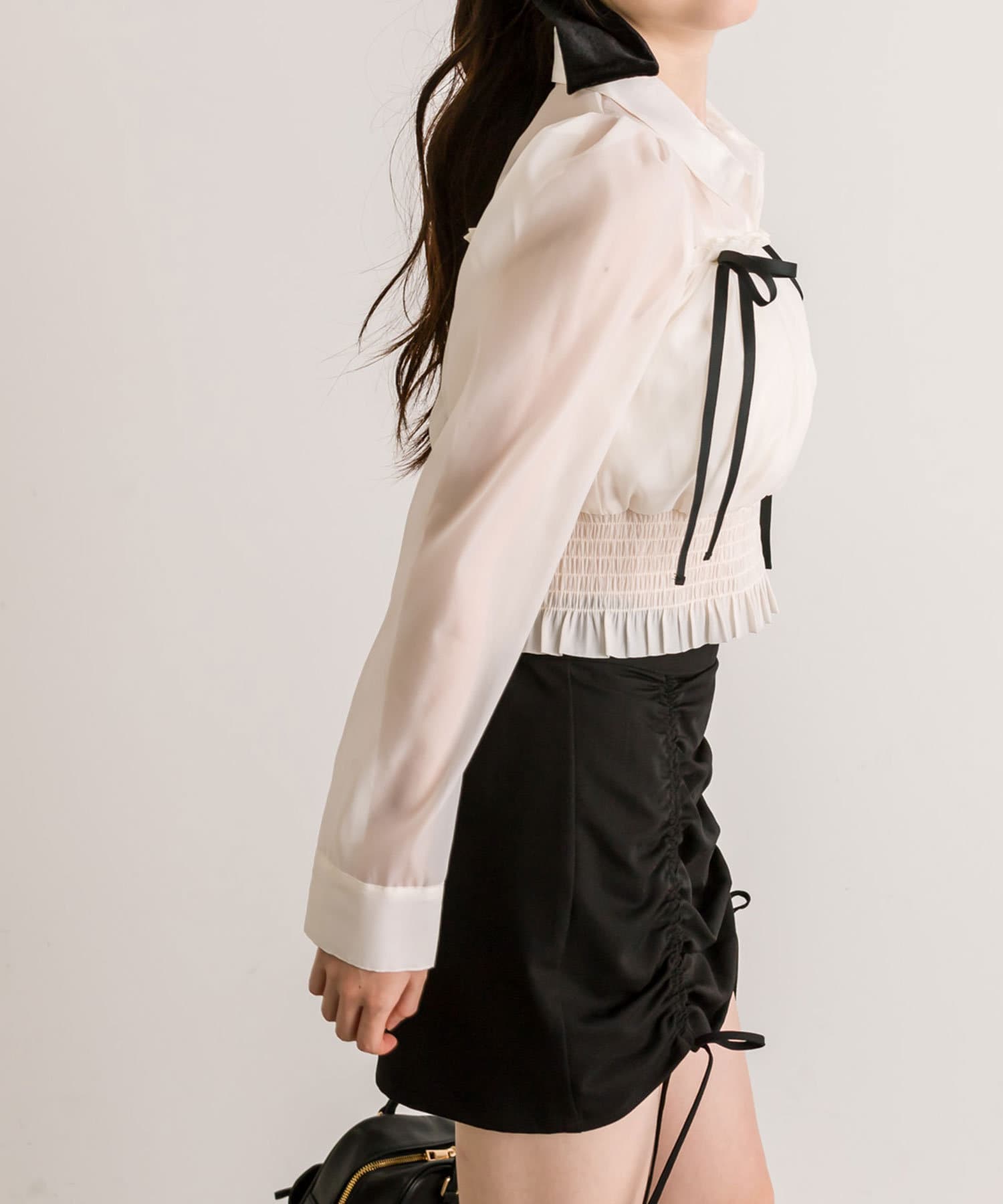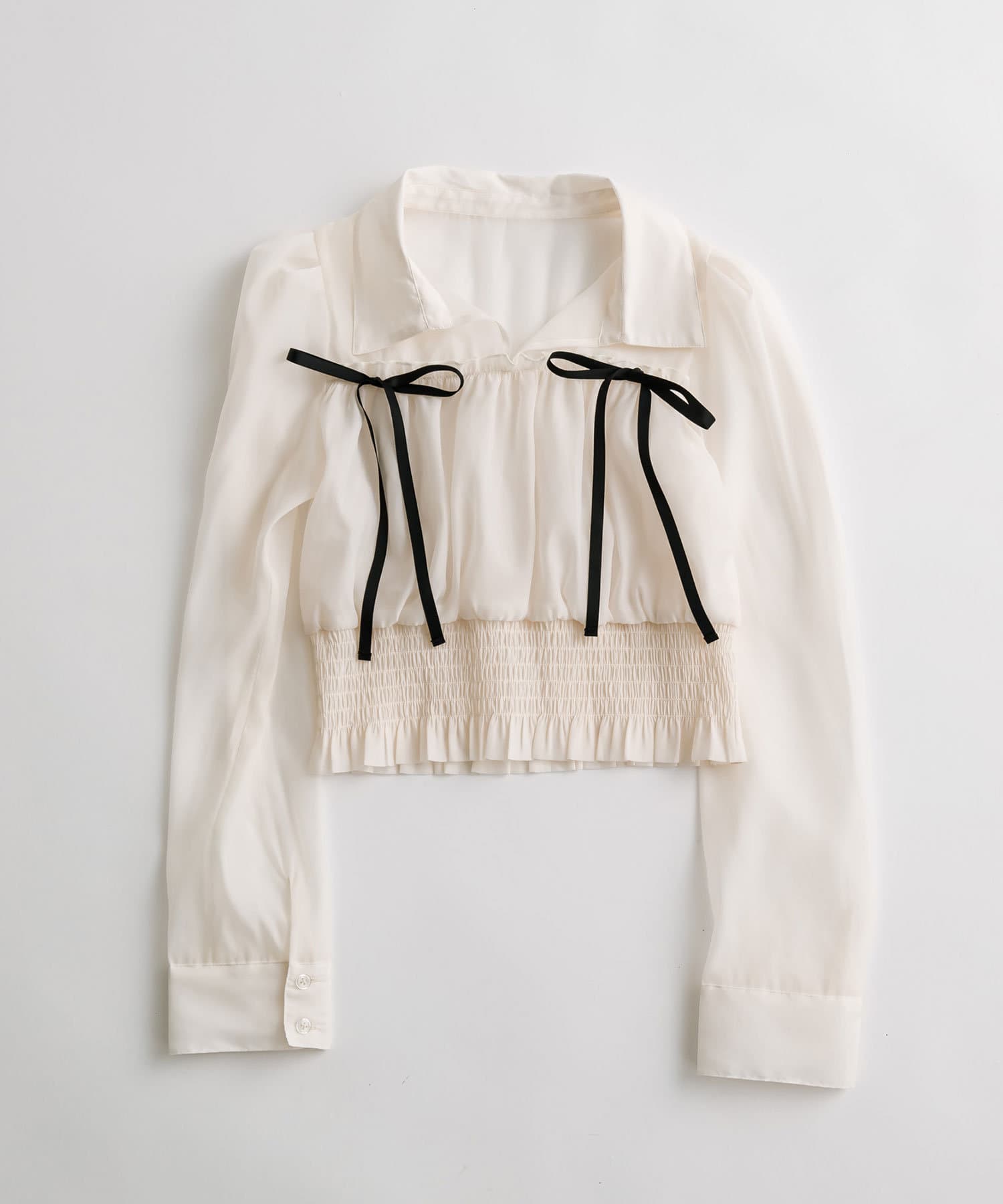 【WEB限定】ダブルリボン長袖シャツブラウス