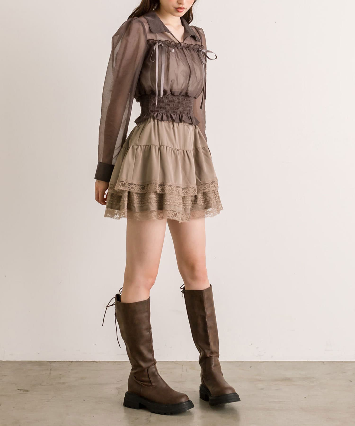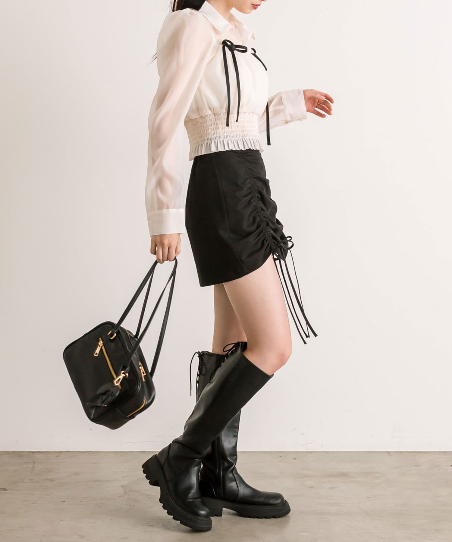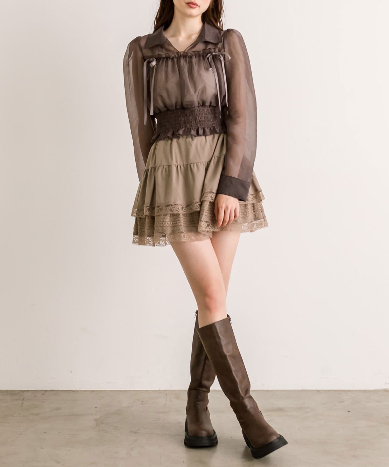 ・ミニスカート合わせで韓国ガーリーコーデがおすすめ。