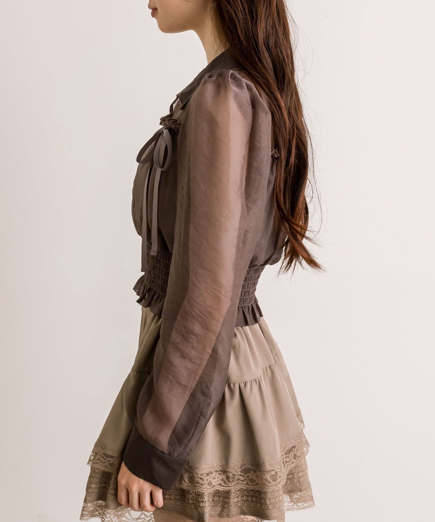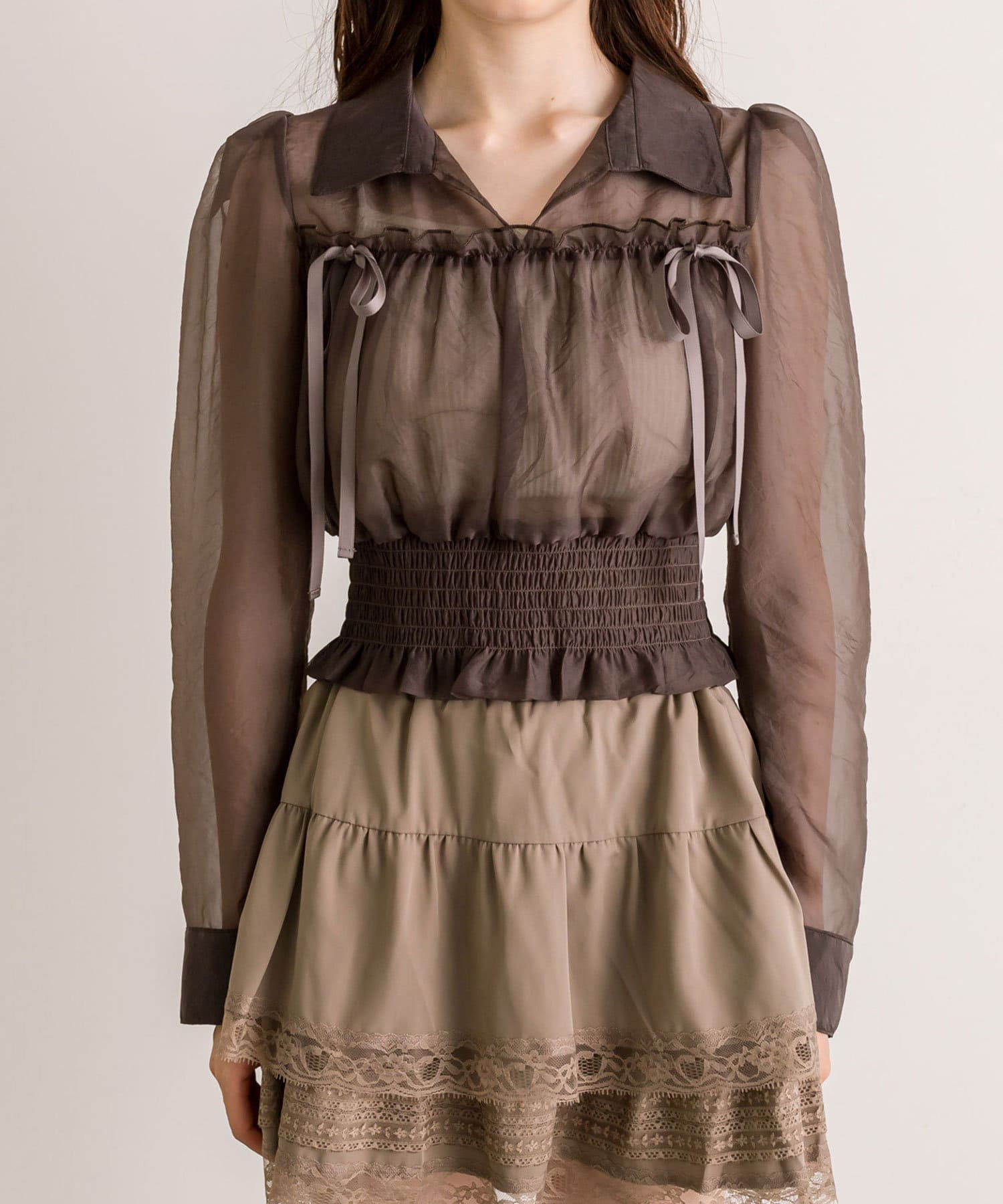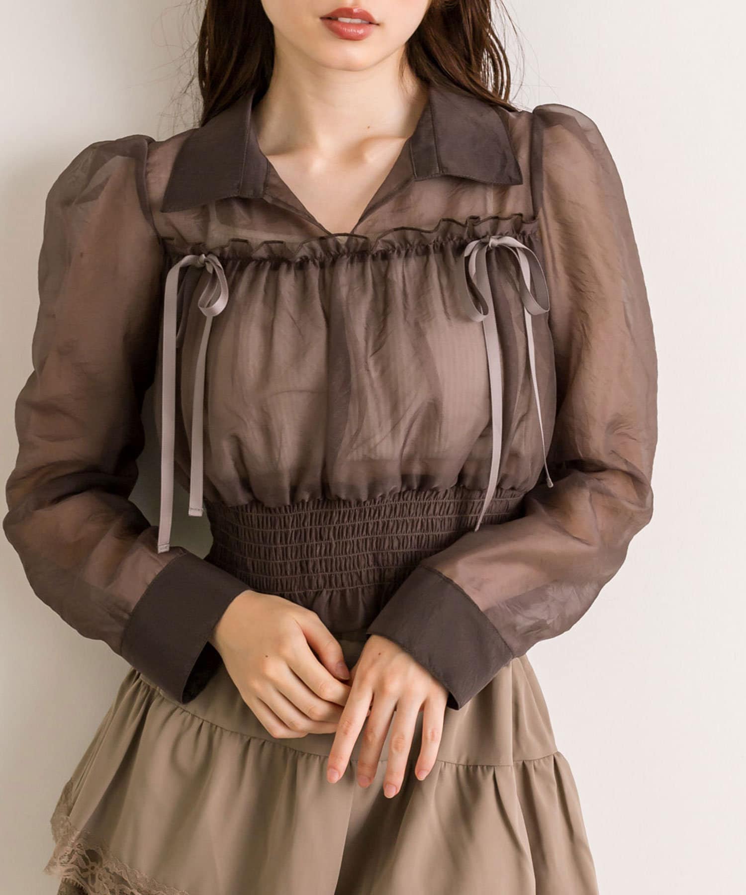 ・女の子らしい華奢なダブルリボンがポイントのガーリーなブラウス。