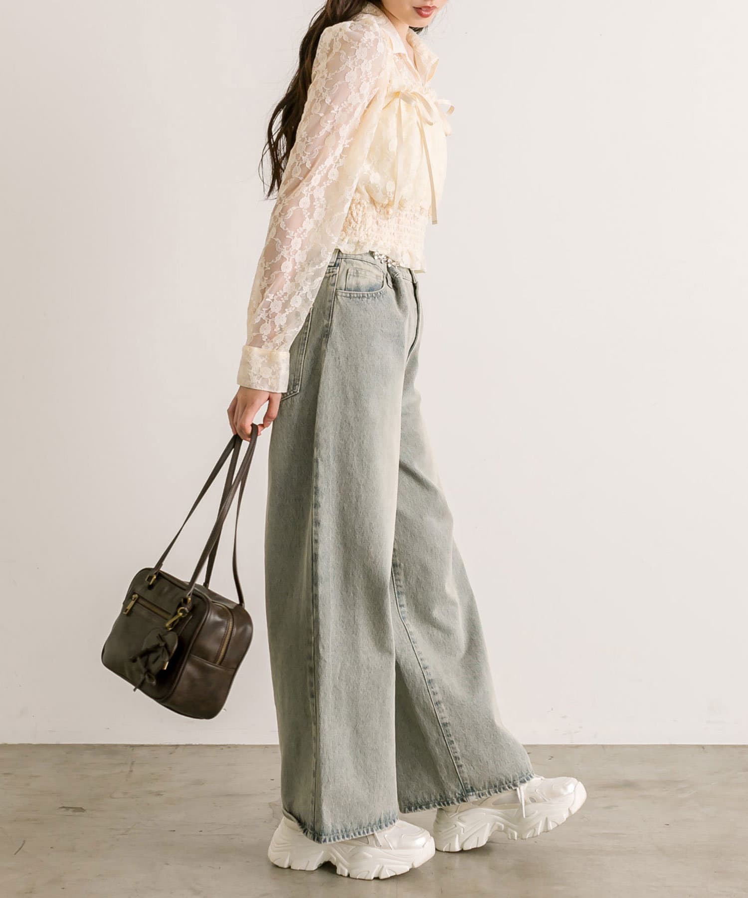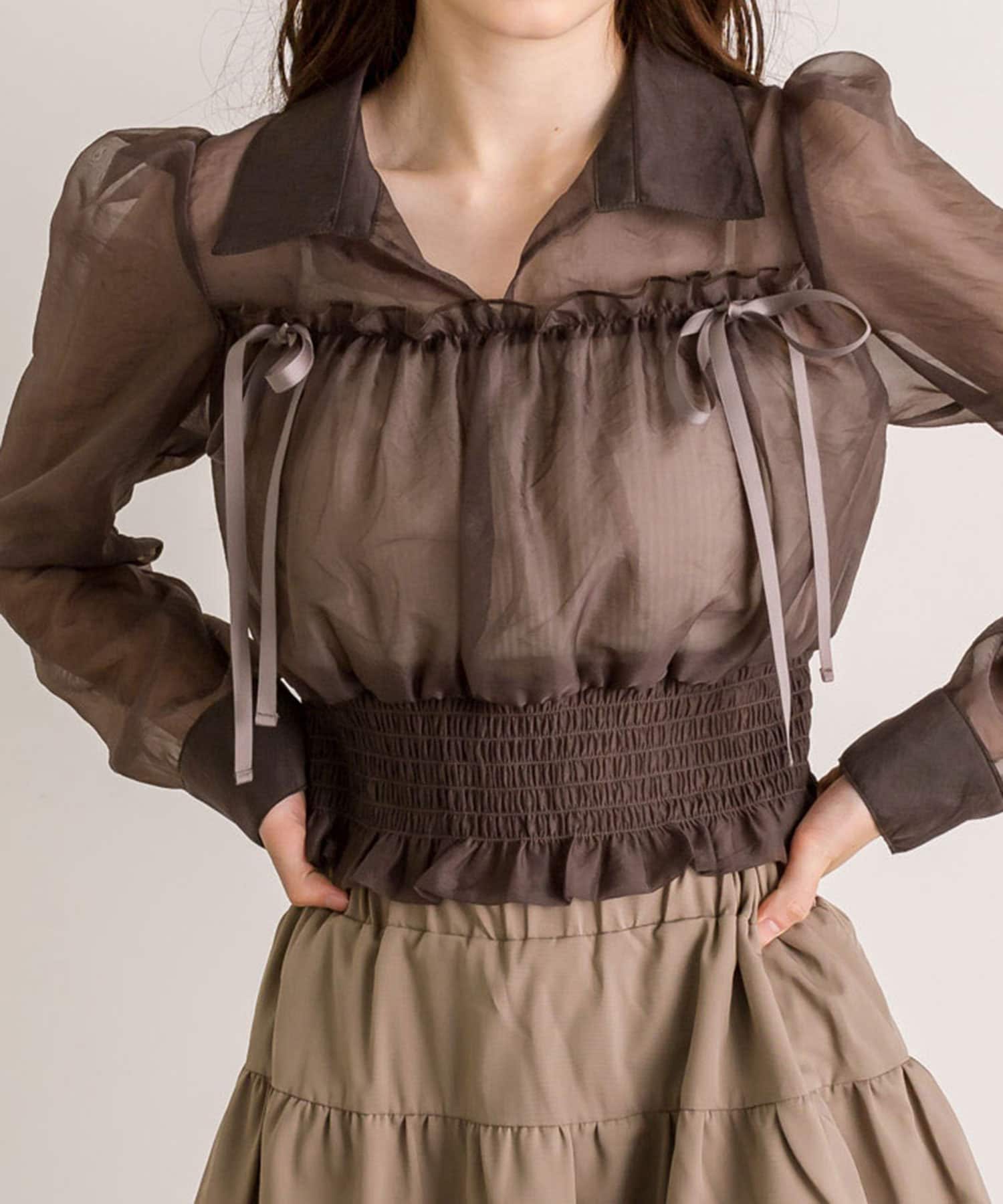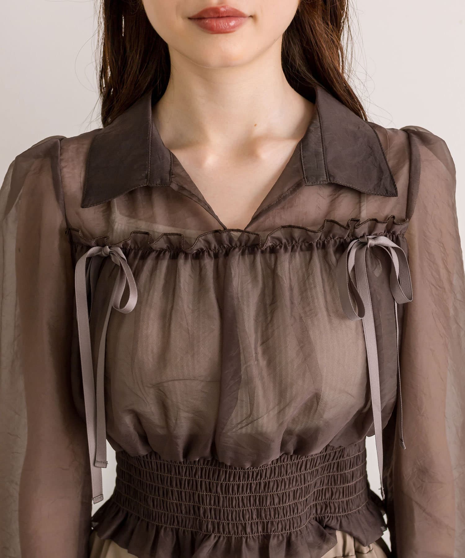 ・女の子らしい華奢なダブルリボンがポイントのガーリーなブラウス。