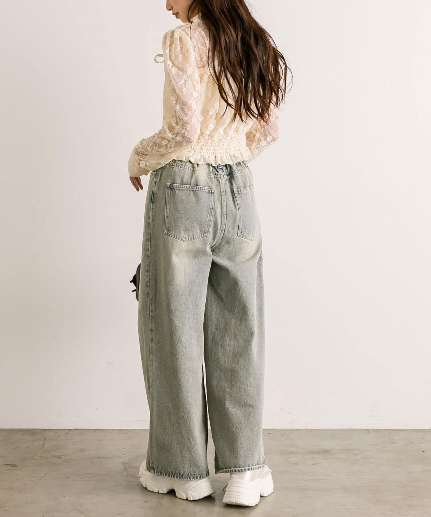 ・ウエスト部分に太めのシャーリングがあることで、細見えが叶います。