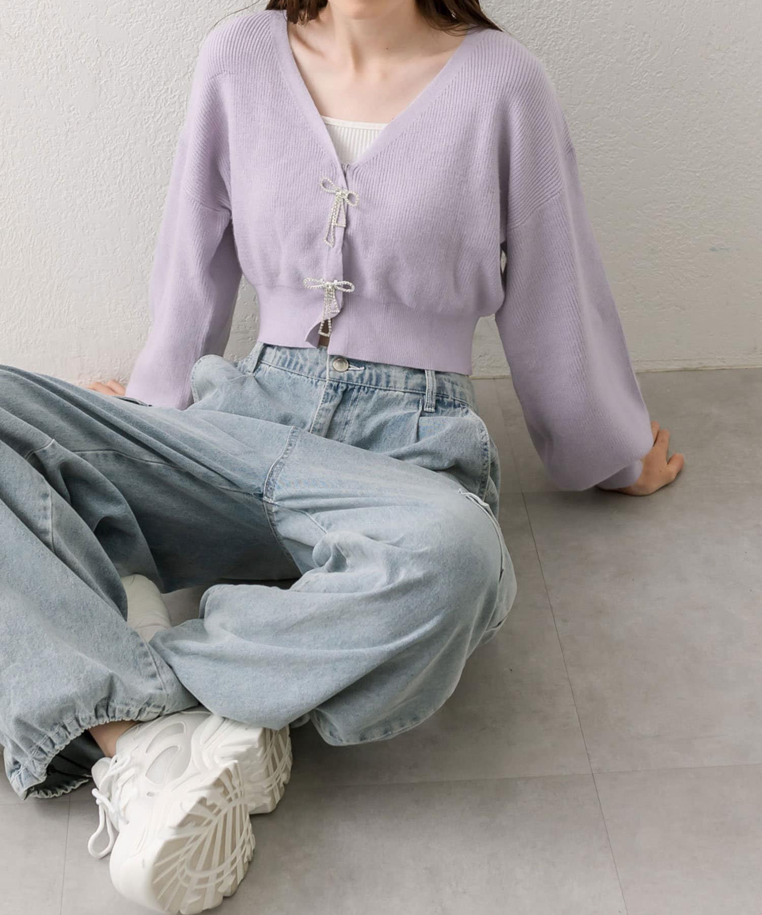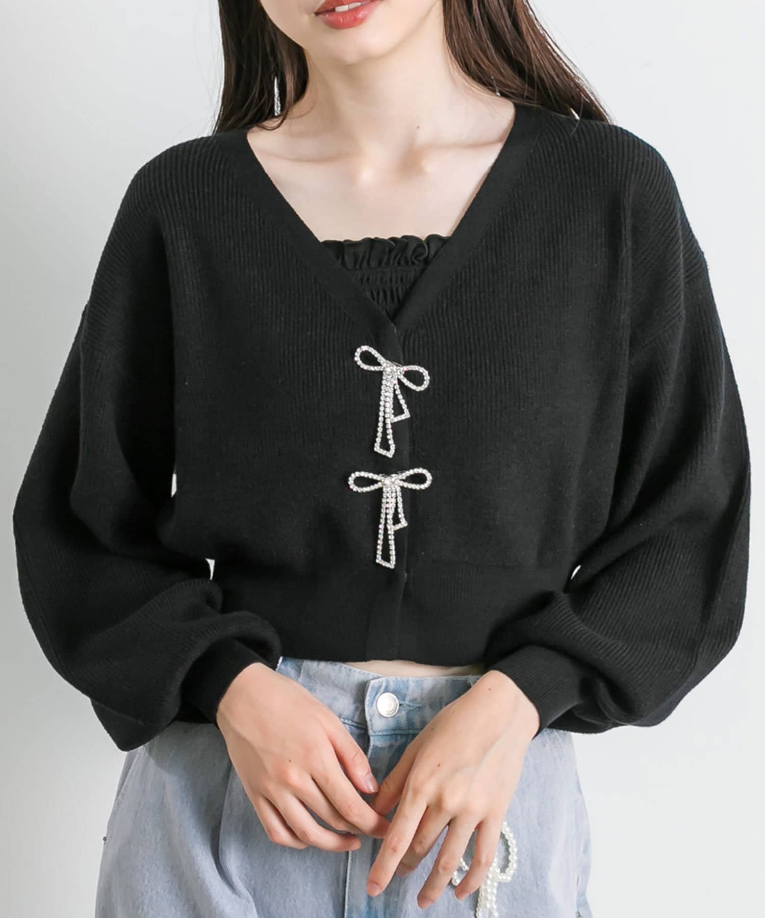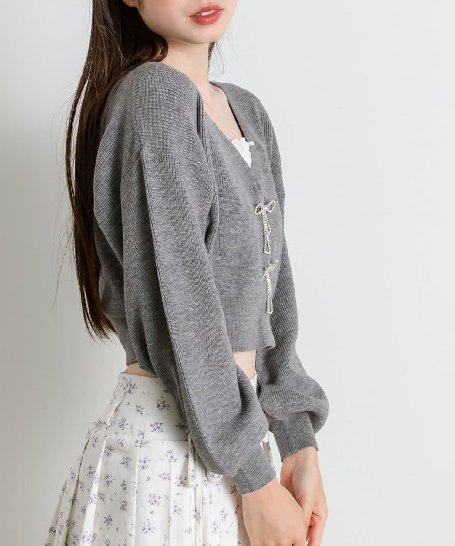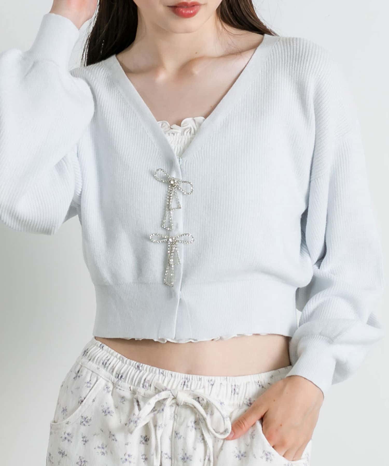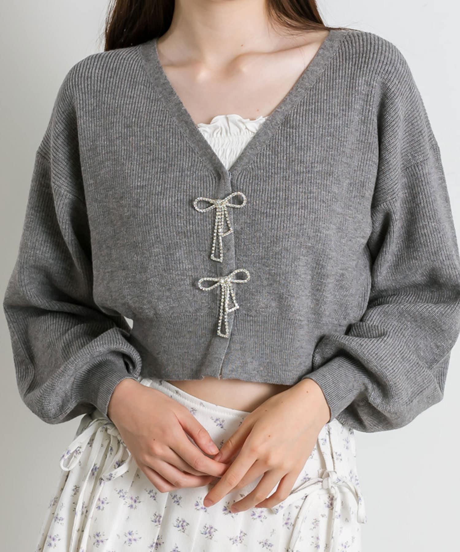 【WEB限定/リバイバル】リボンビジューカーディガン