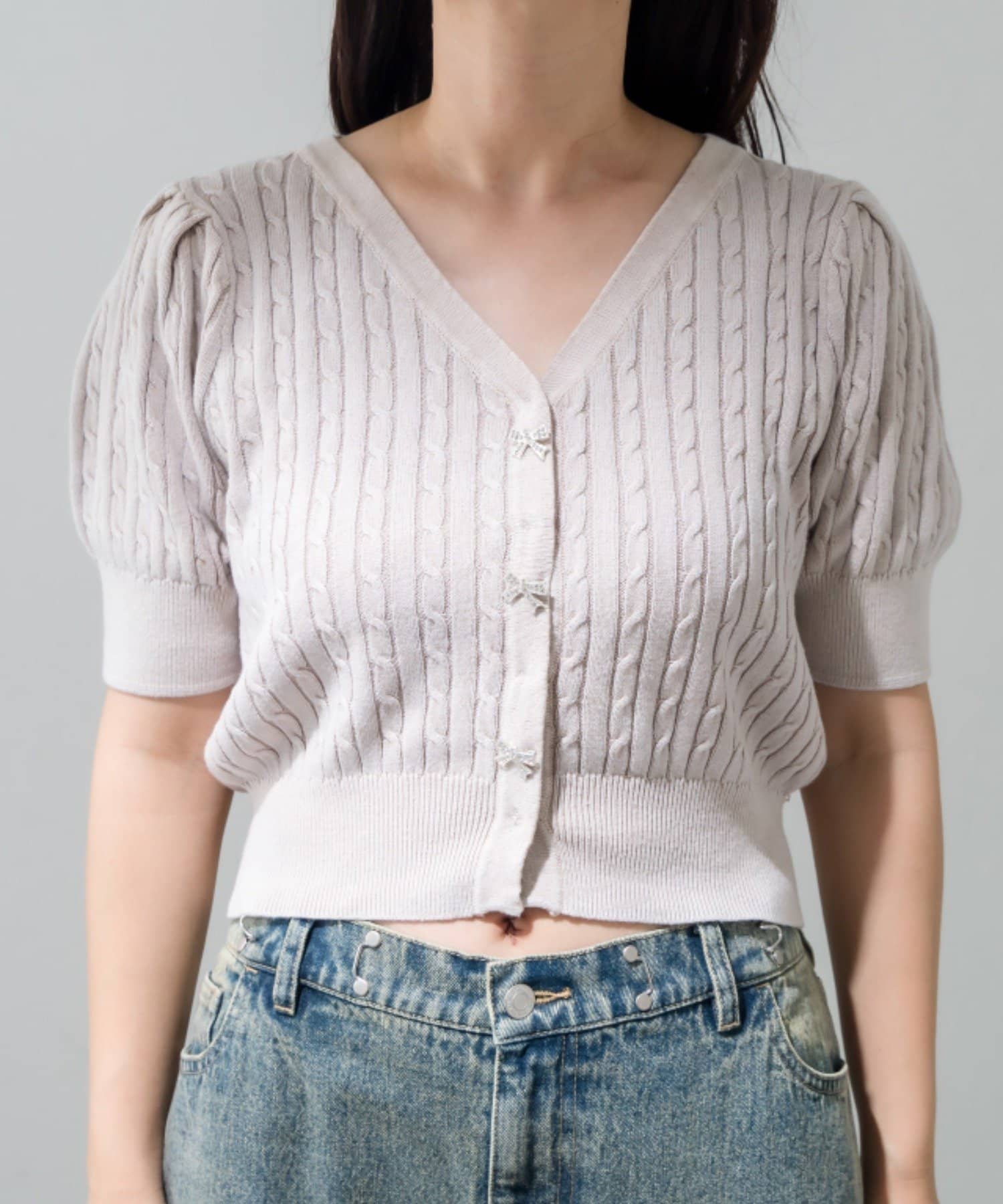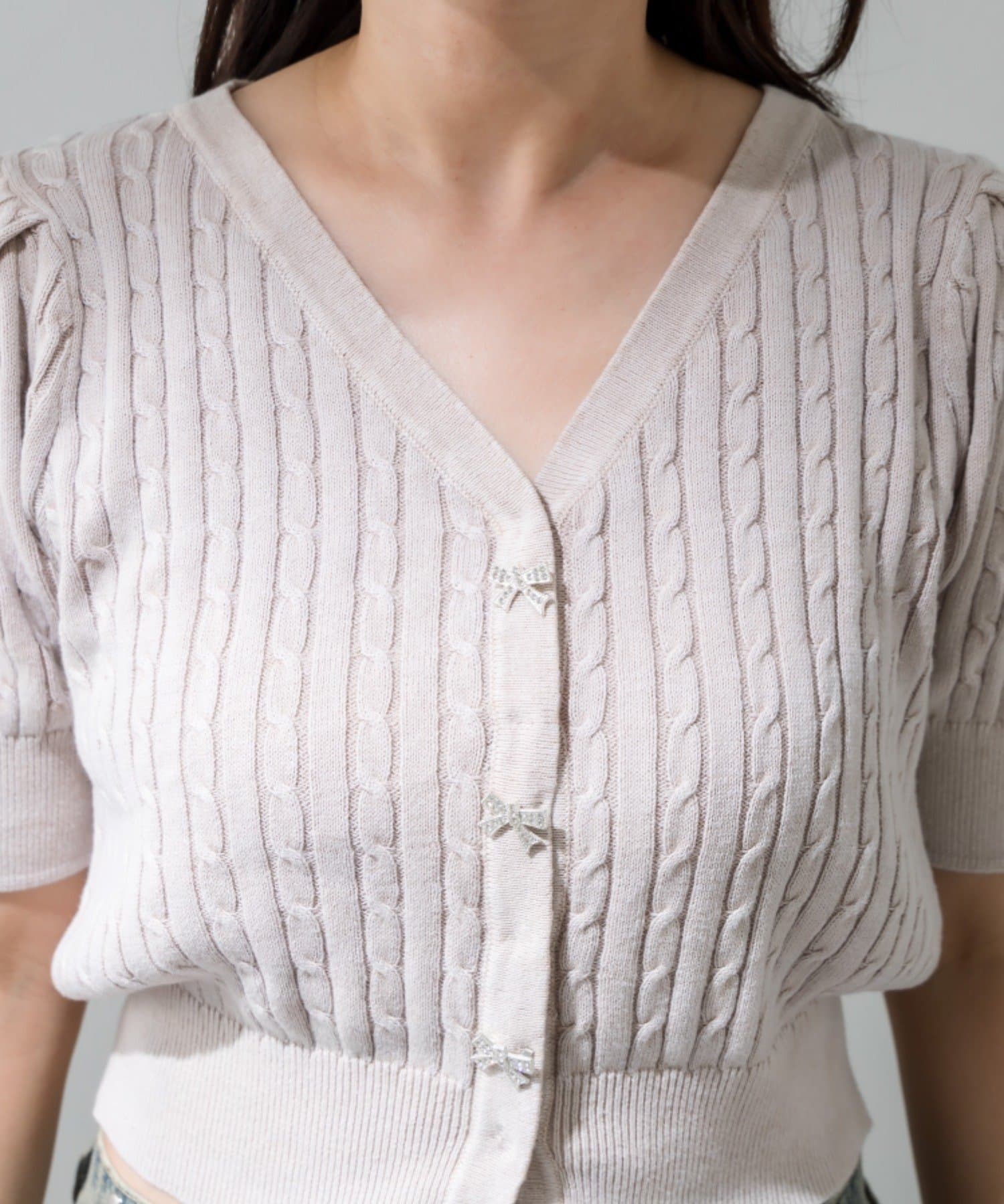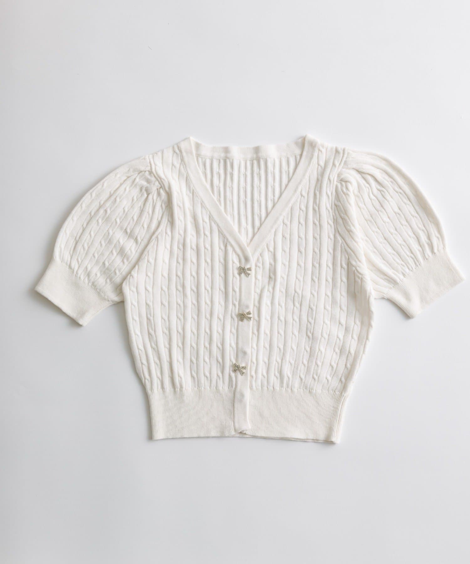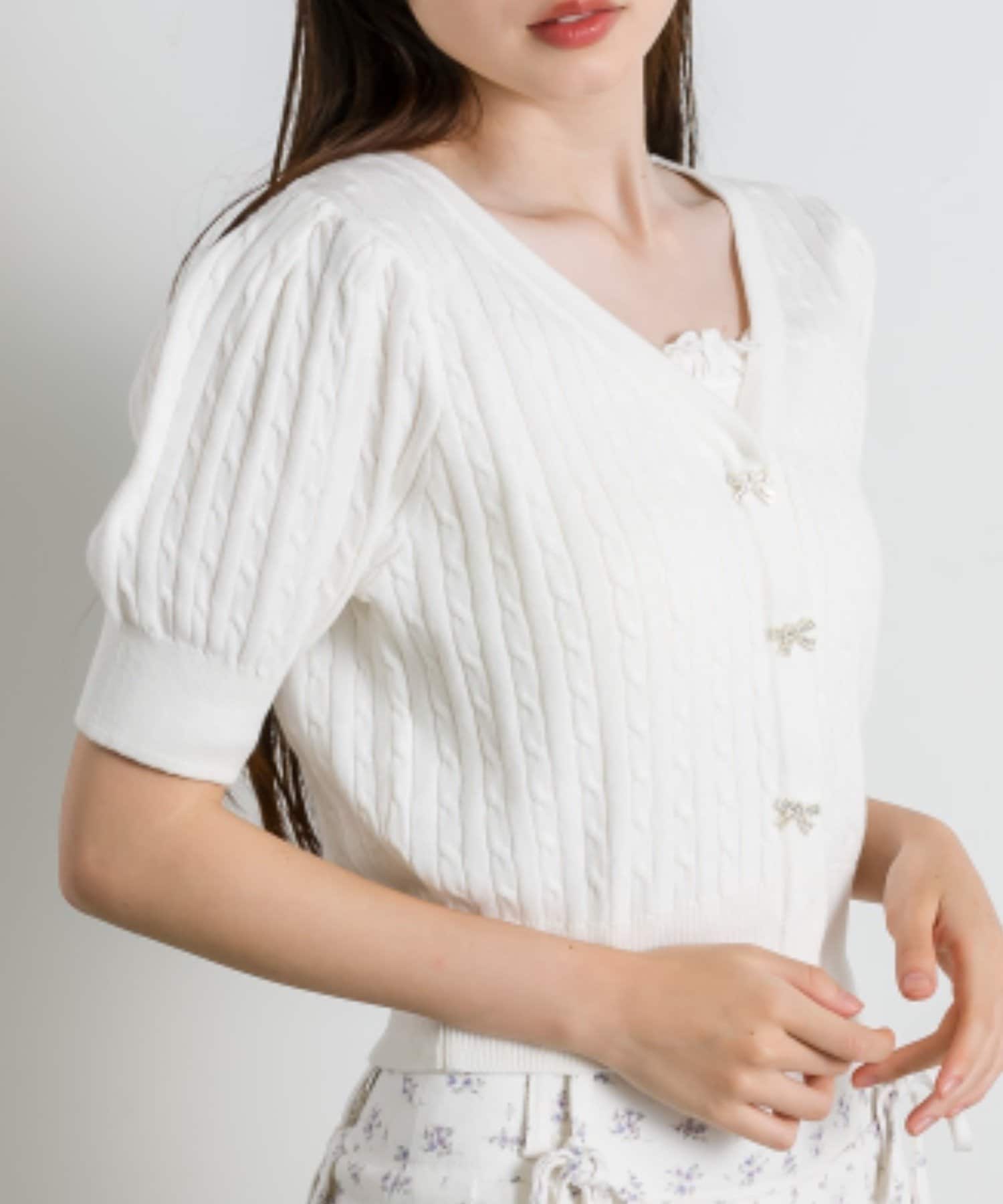 ・トレンドのリボンモチーフのビジューが可愛いカーディガン。