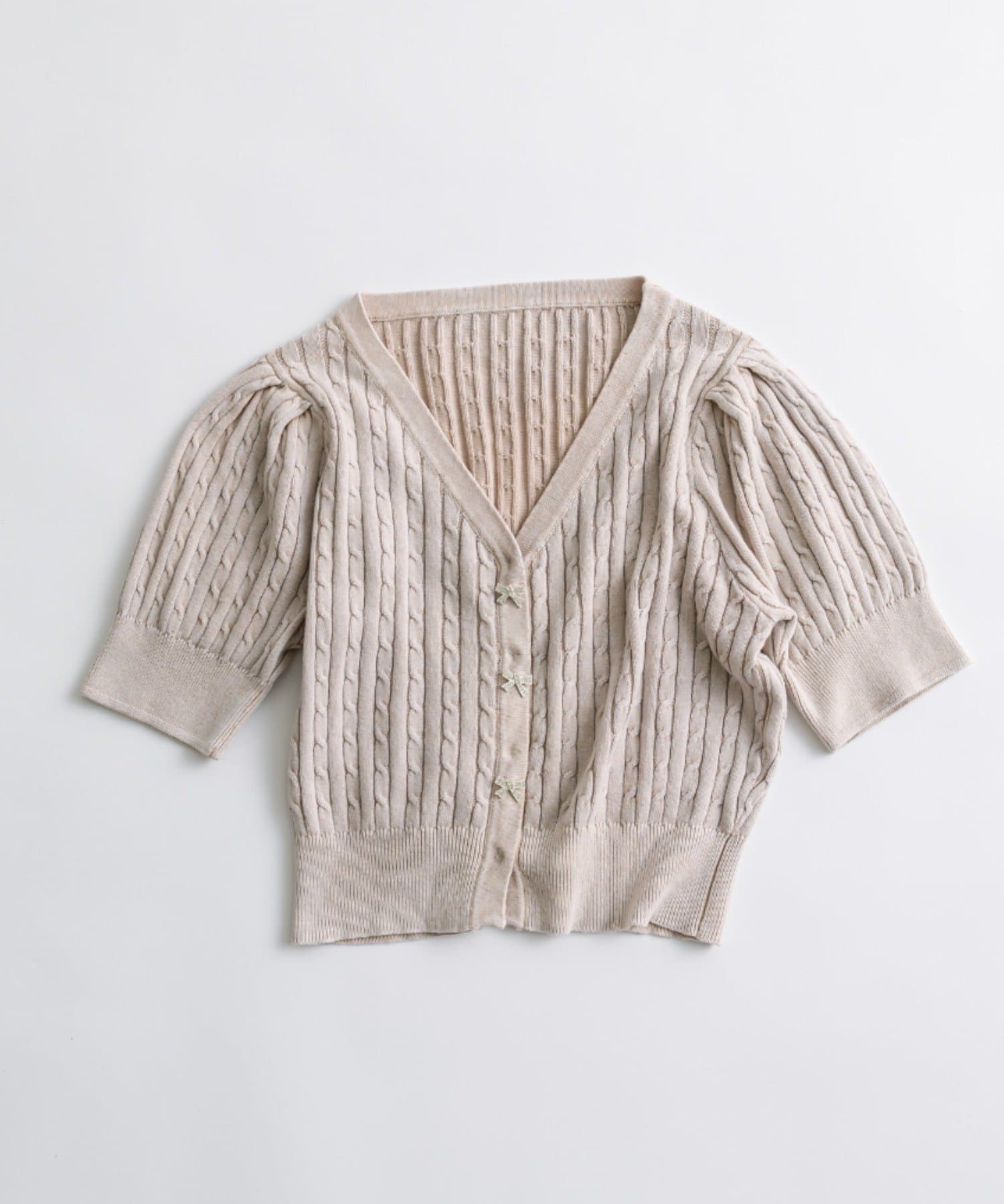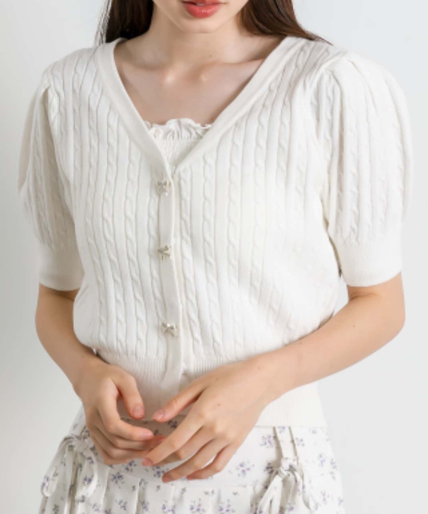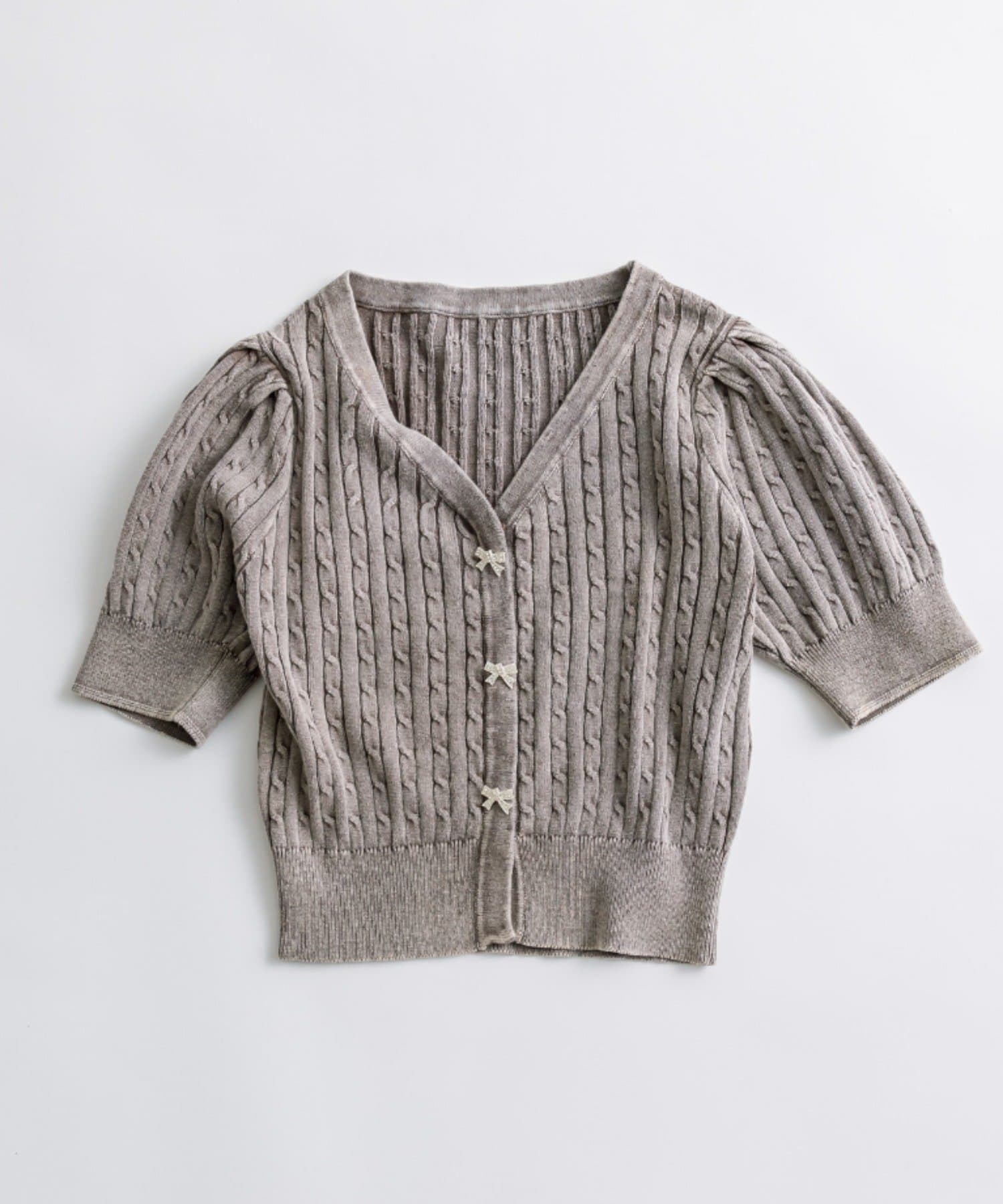 ・トレンドのリボンモチーフのビジューが可愛いカーディガン。