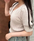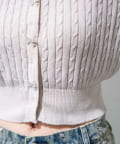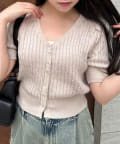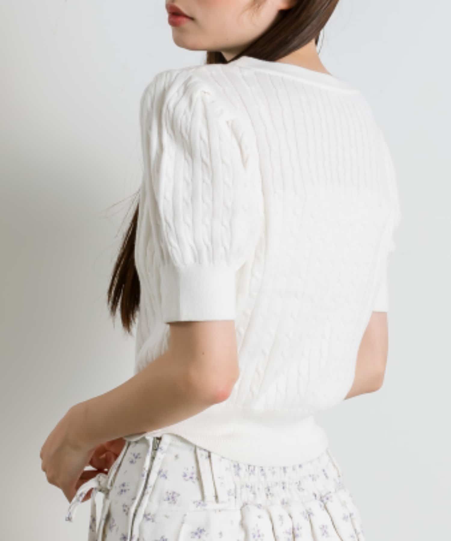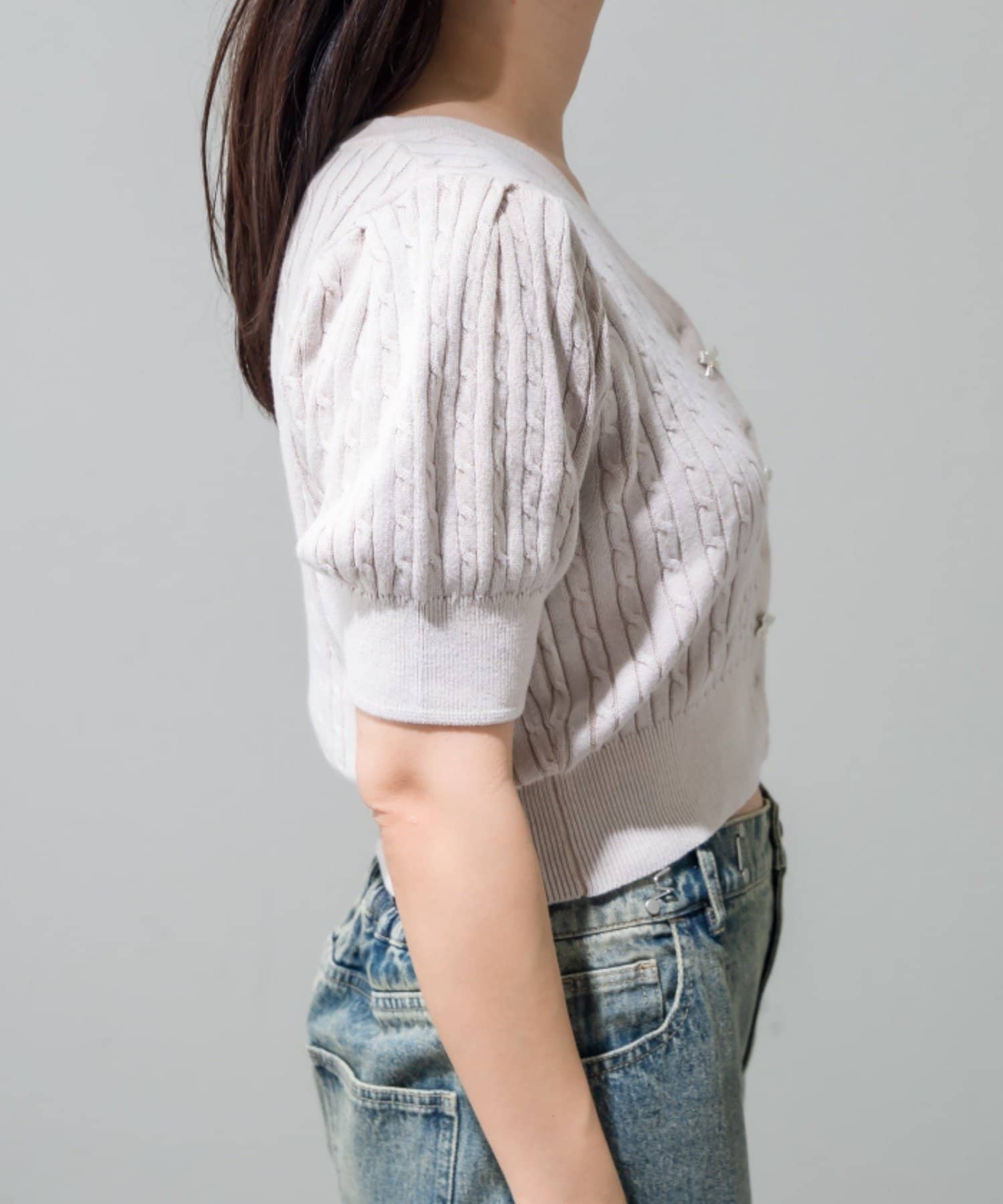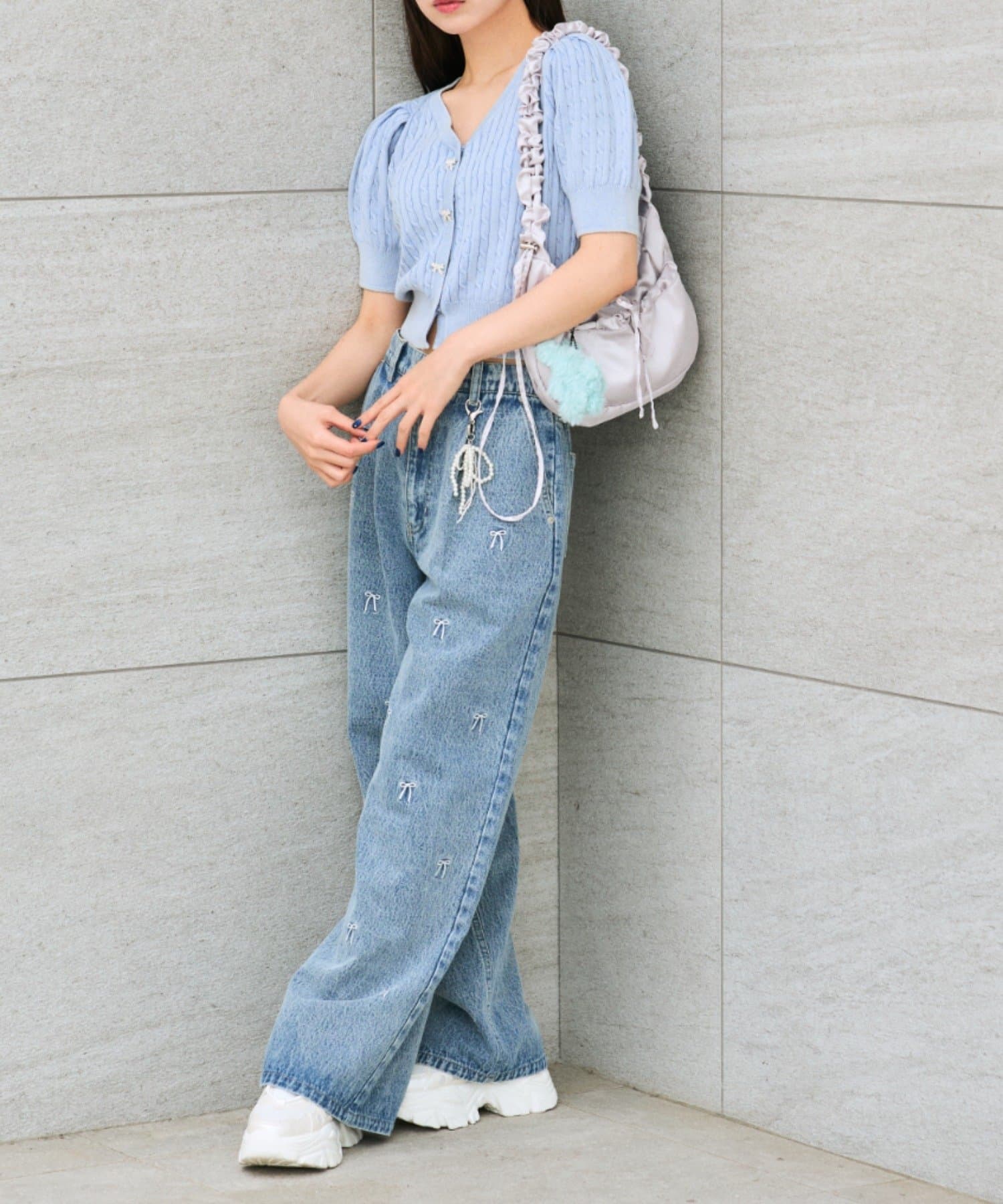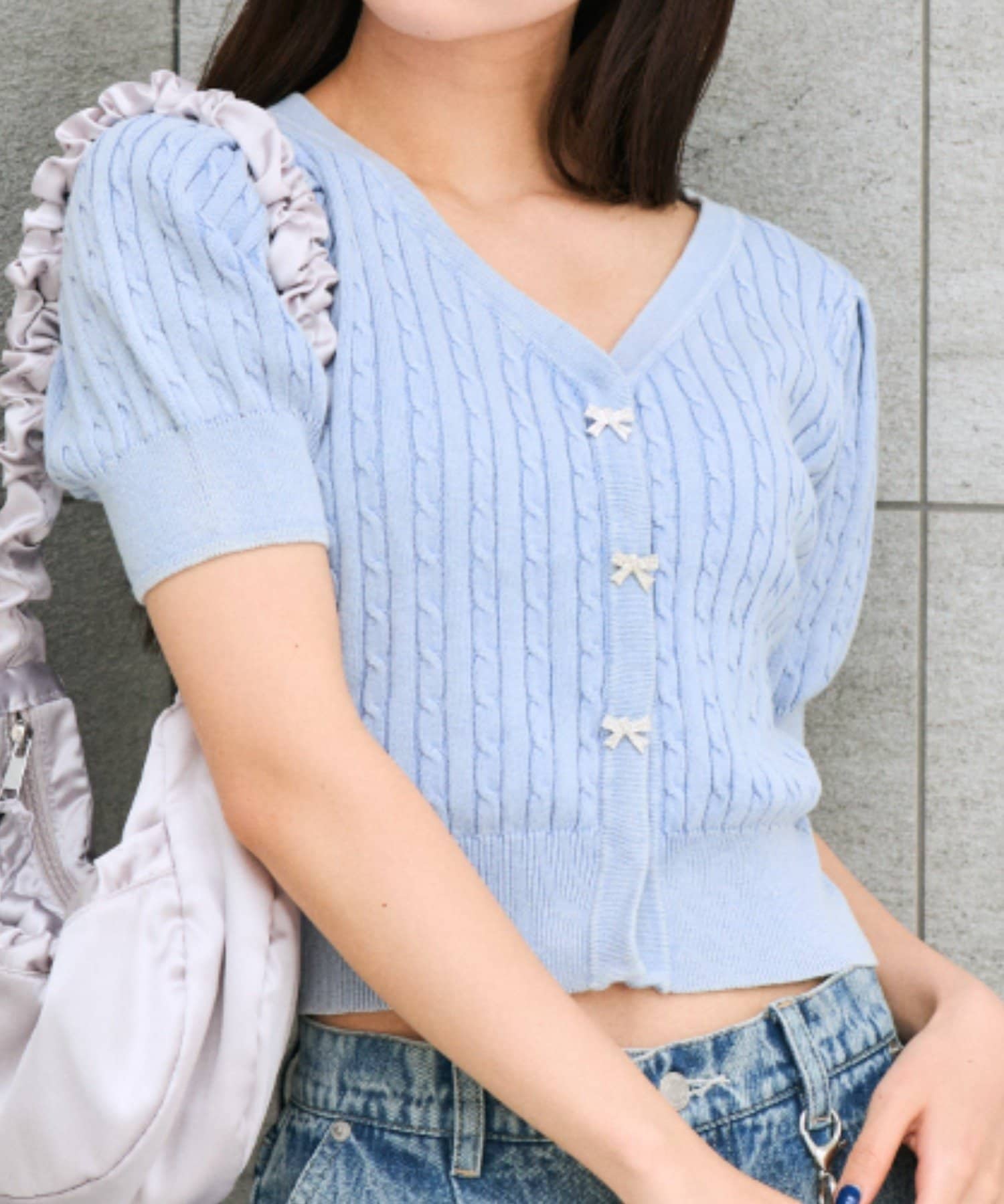 ・トレンドのリボンモチーフのビジューが可愛いカーディガン。