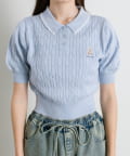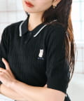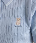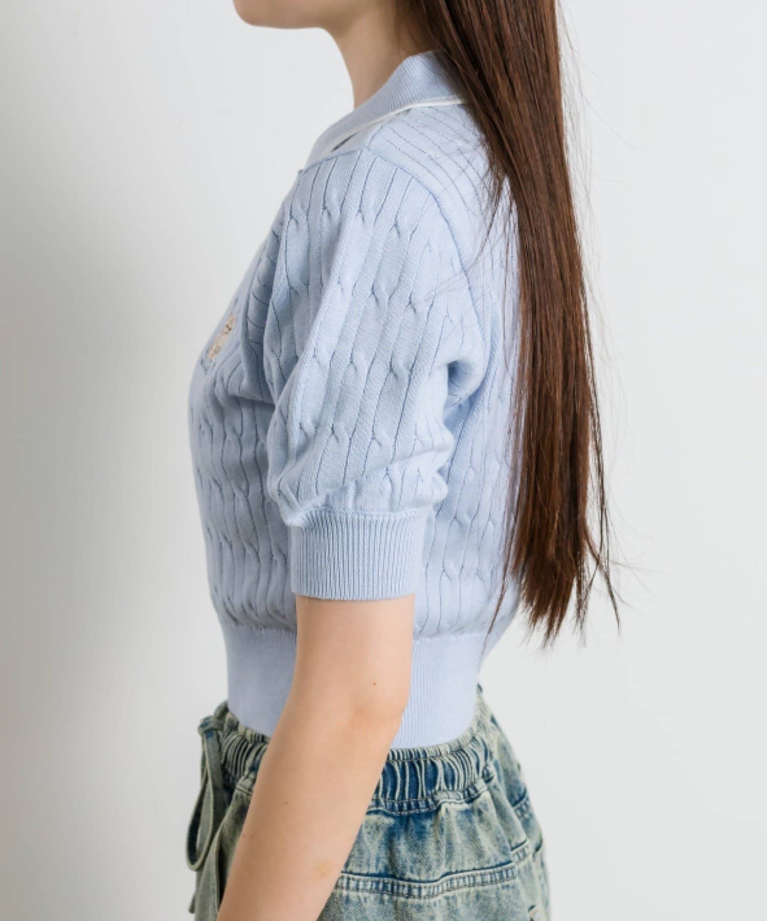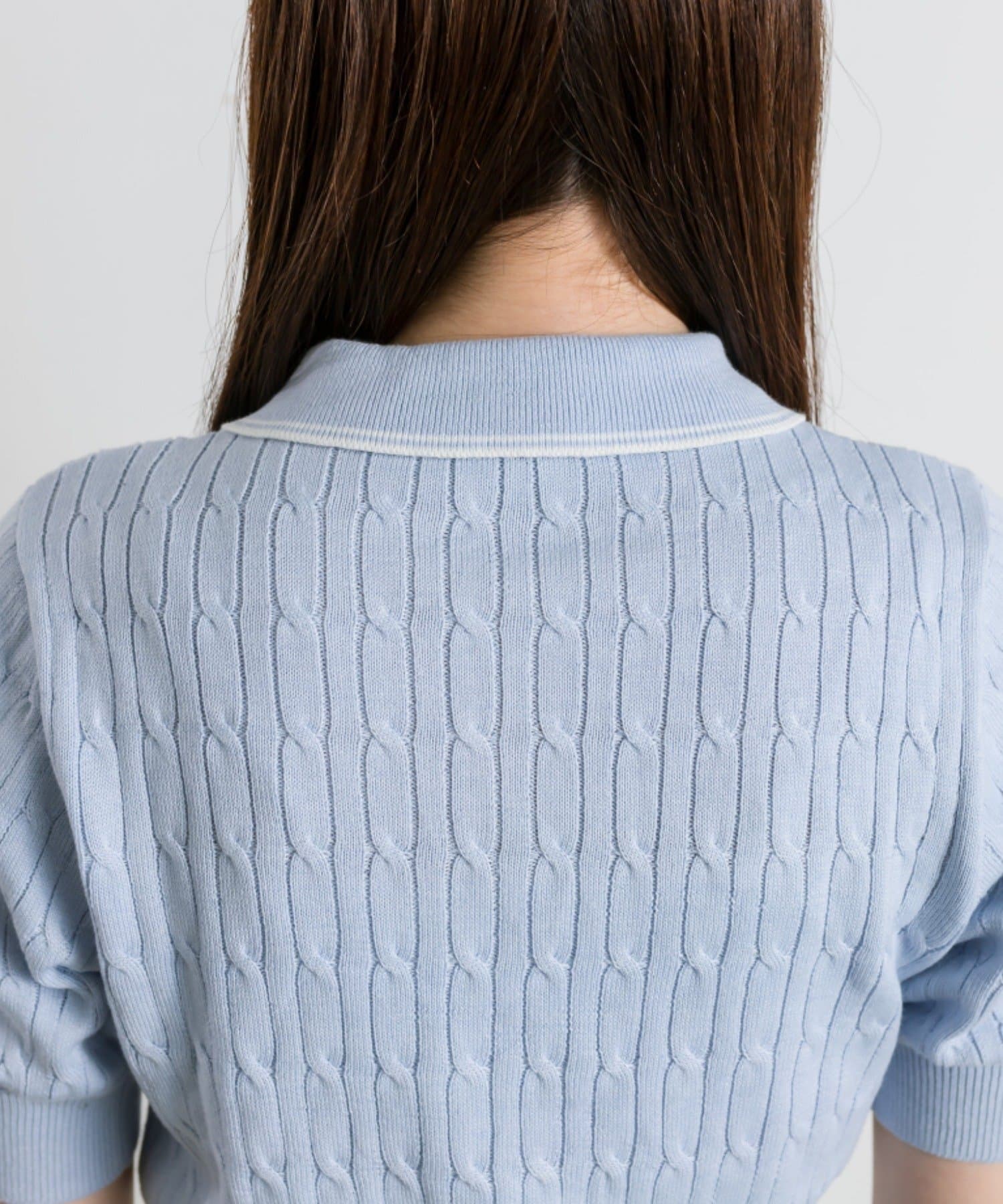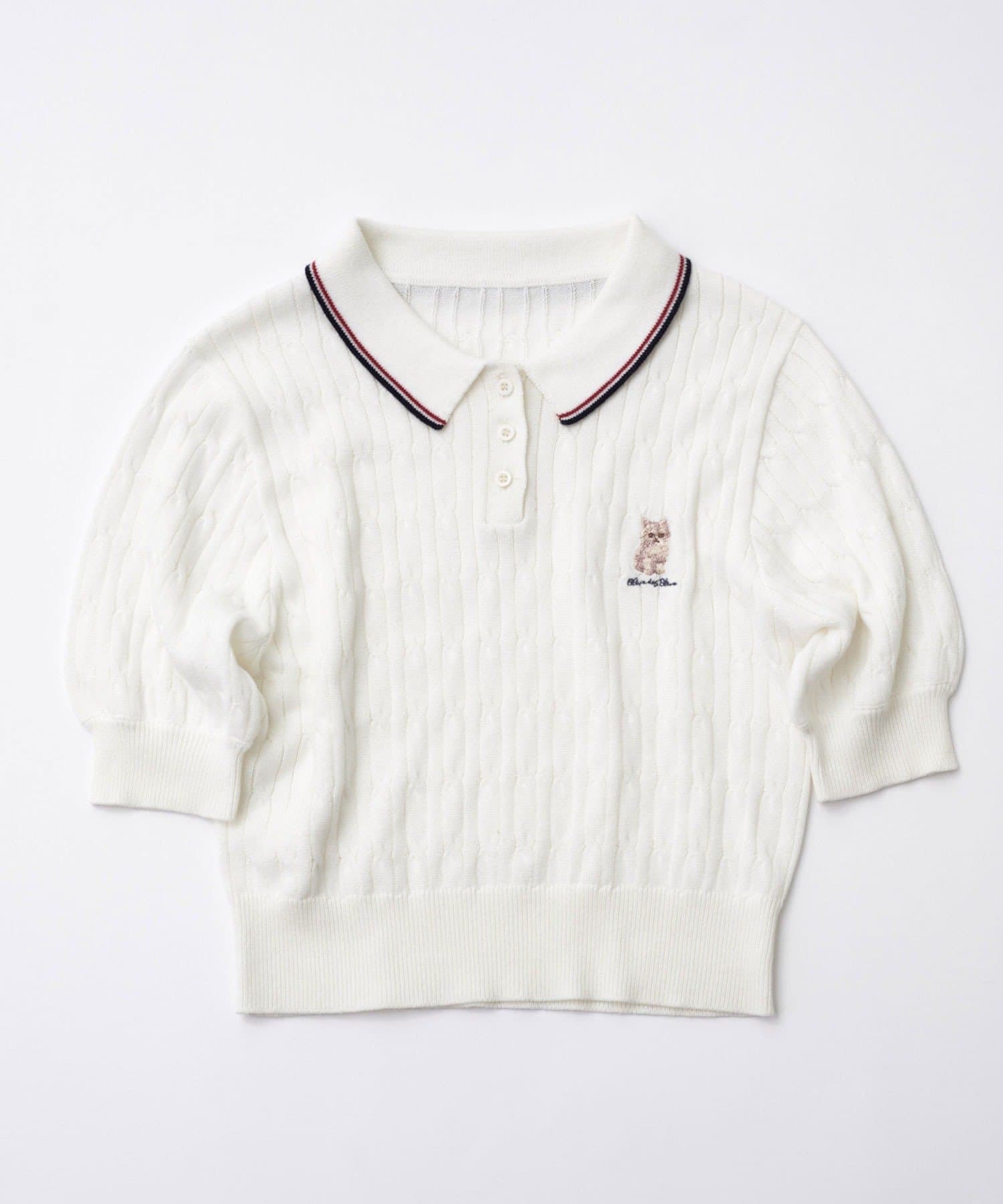 【SNSで話題!】ネコ刺繍ケーブルニットポロ