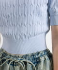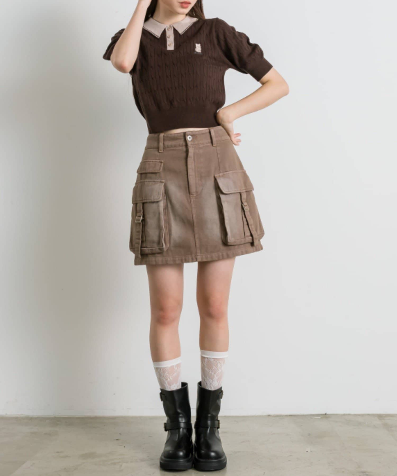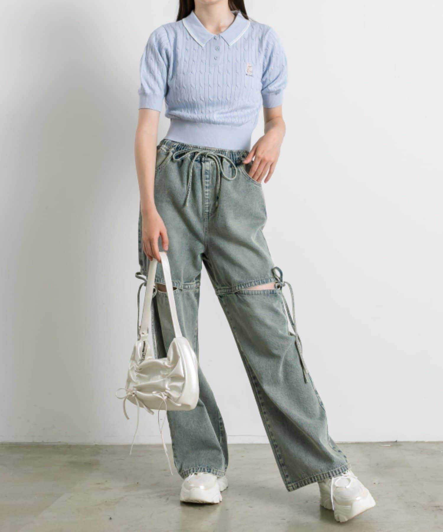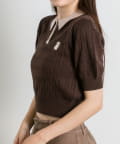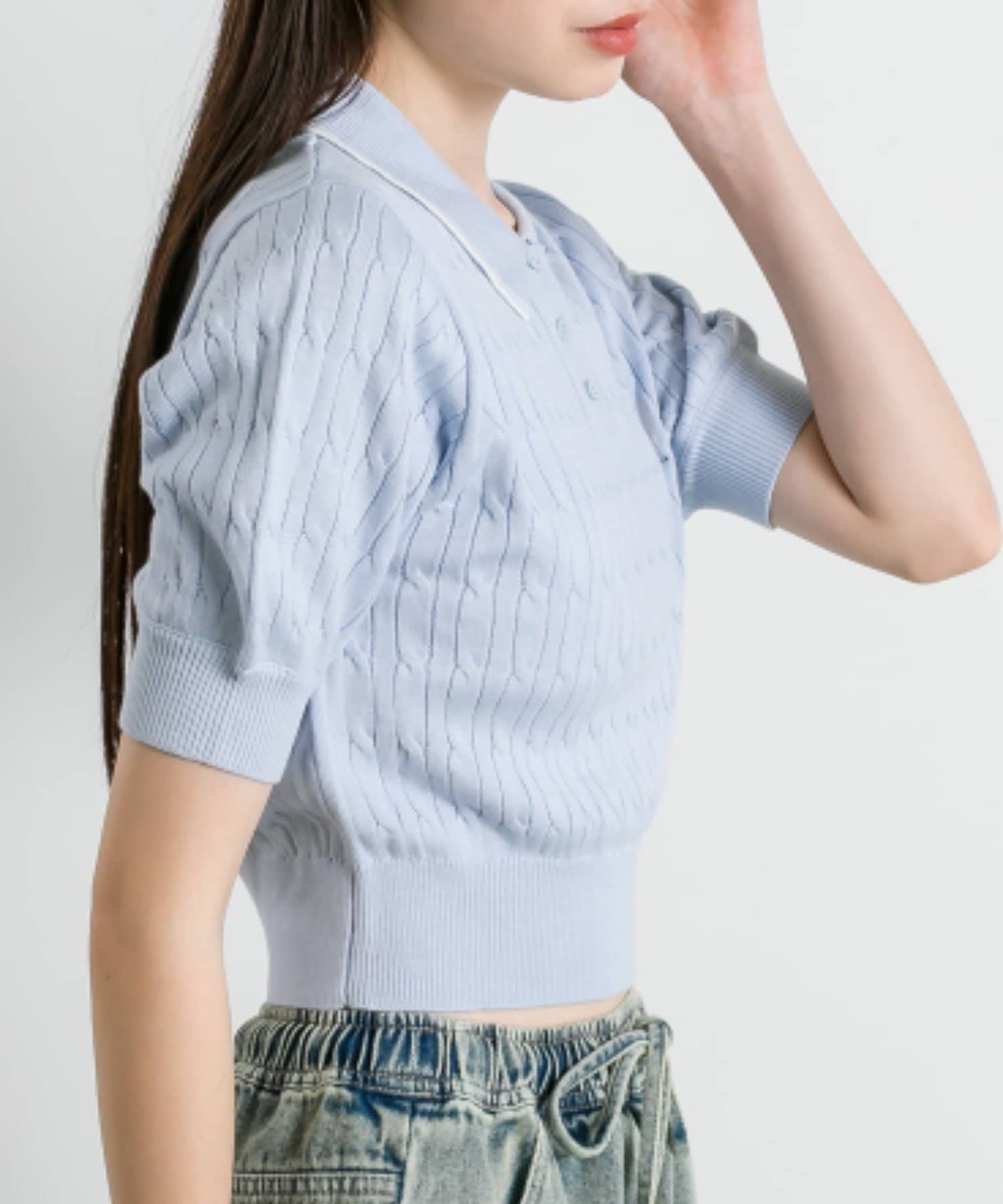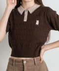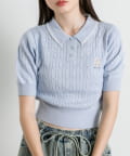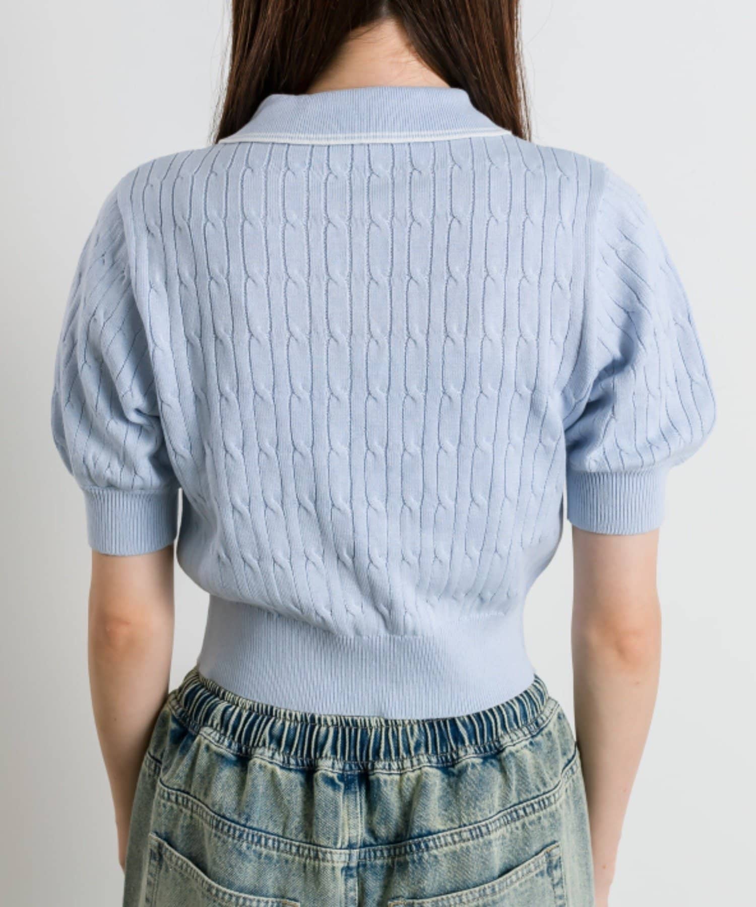 【SNSで話題!】ネコ刺繍ケーブルニットポロ