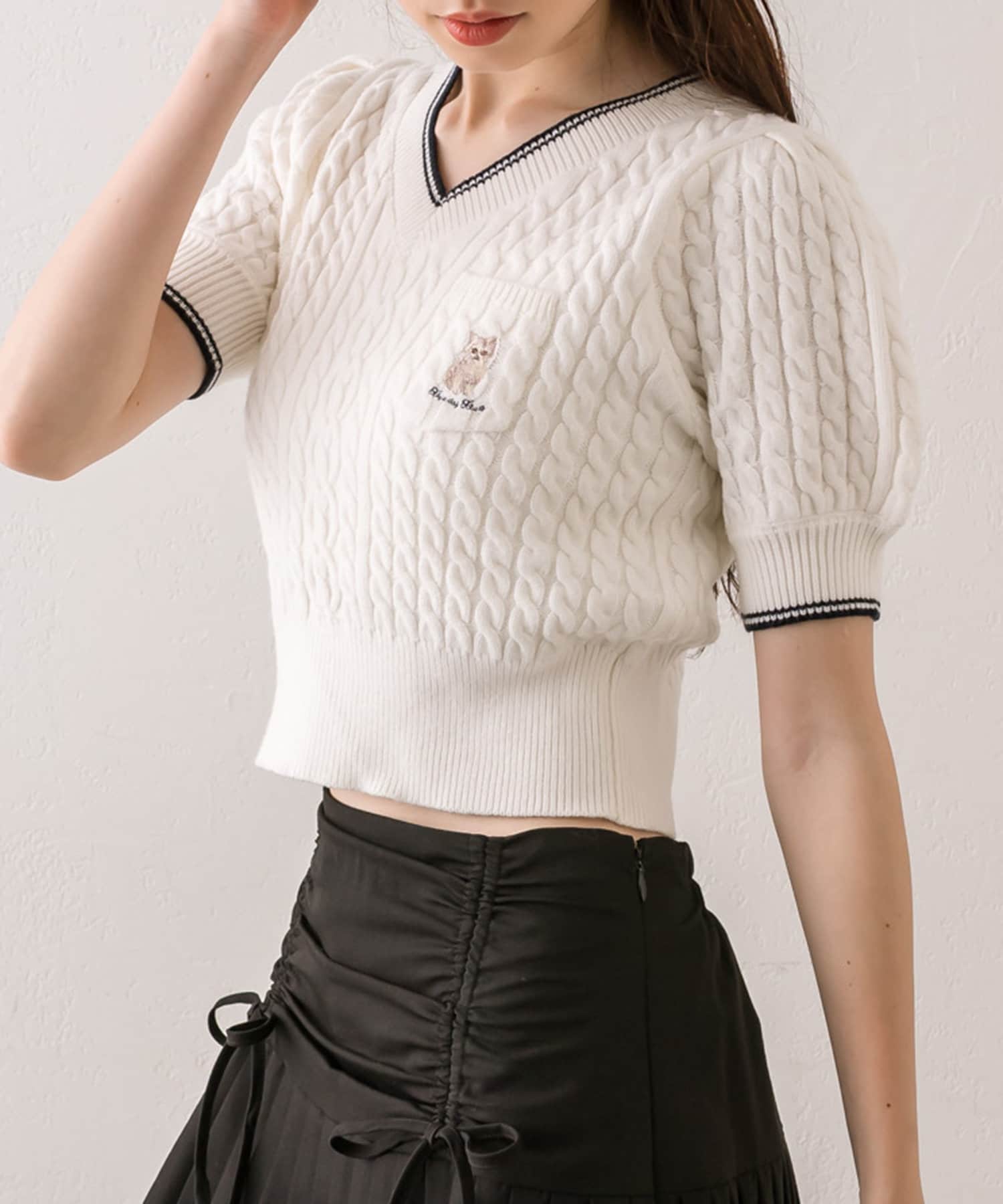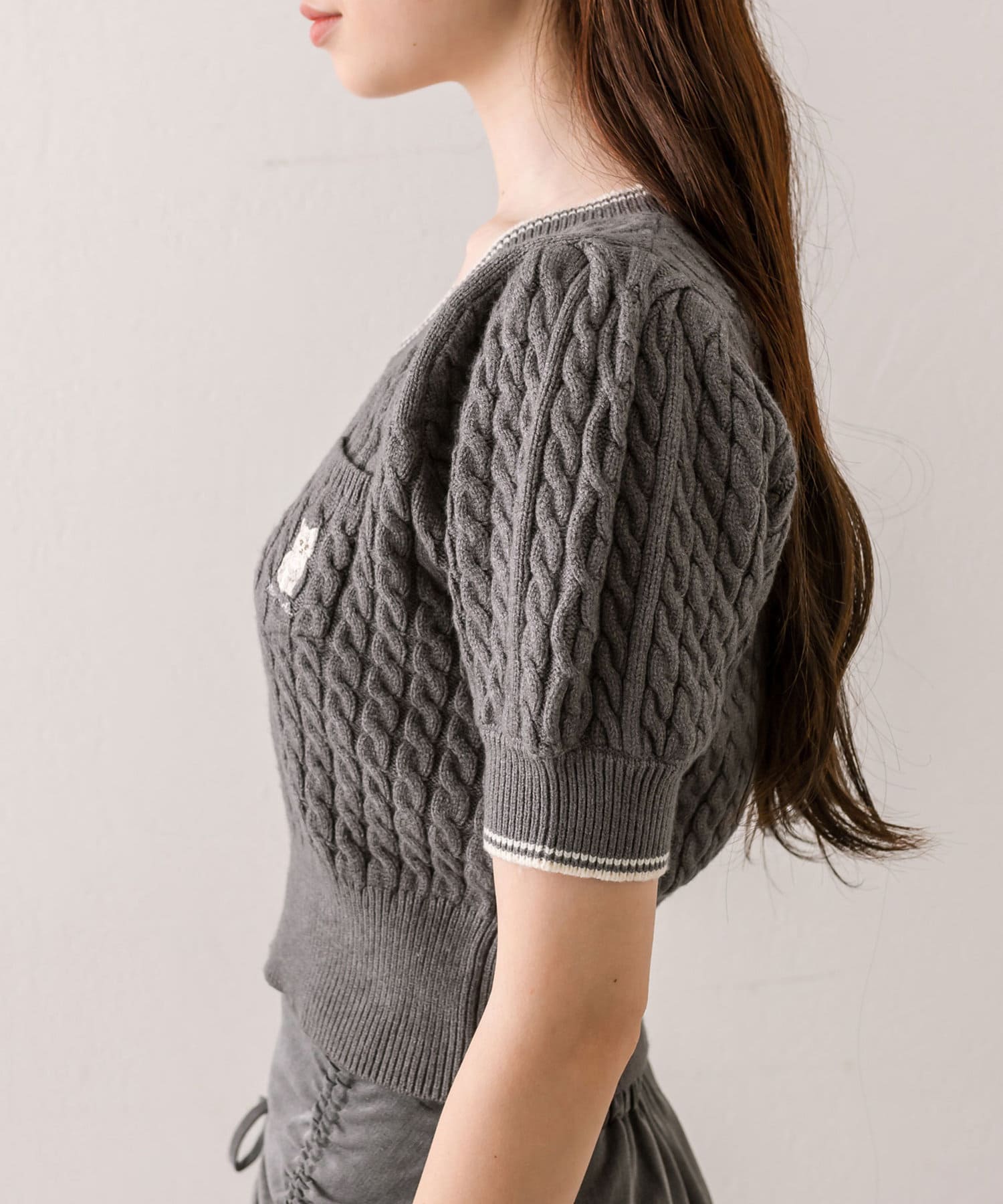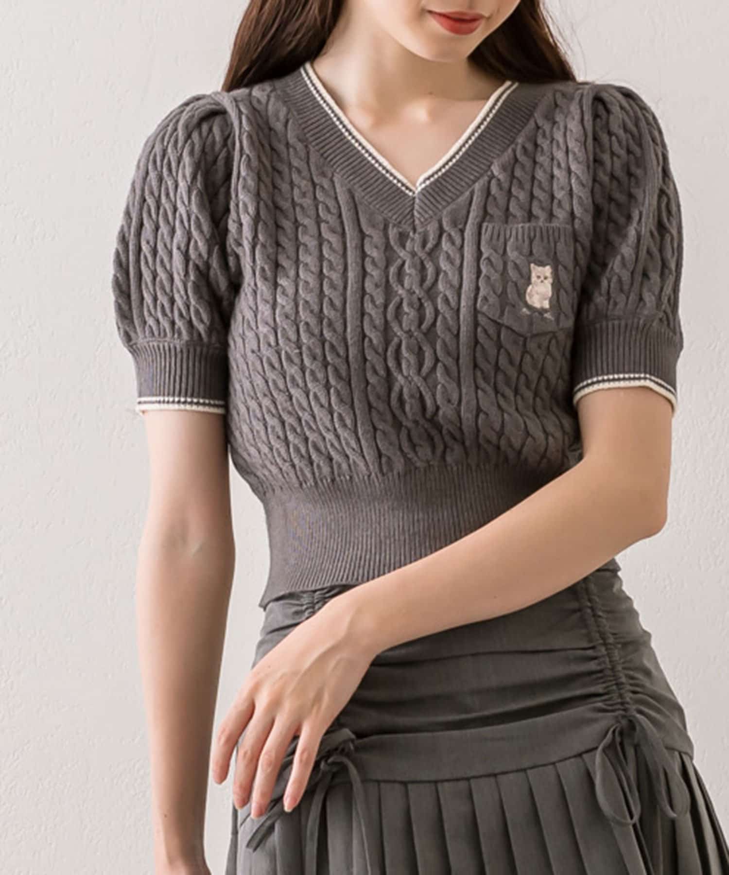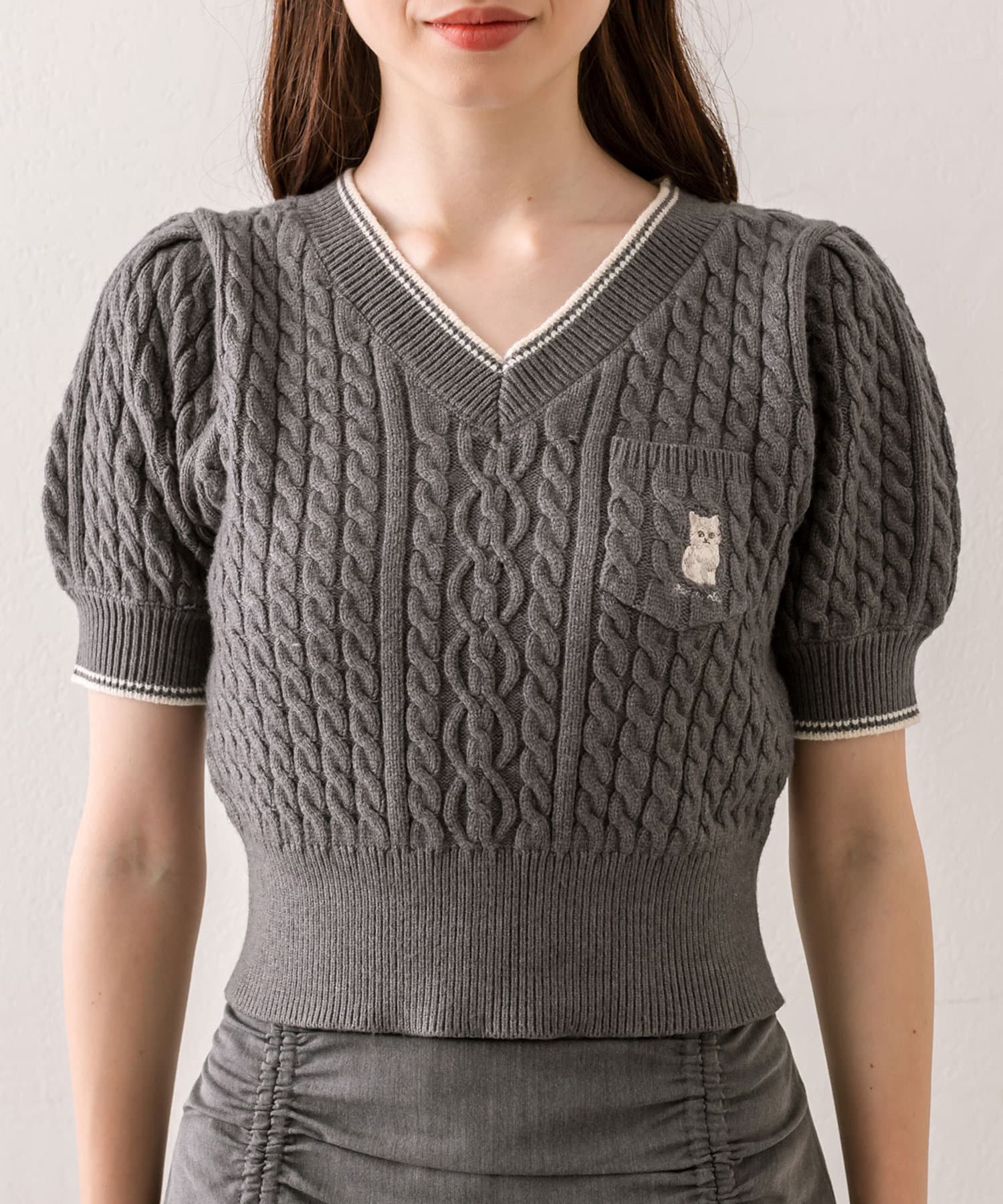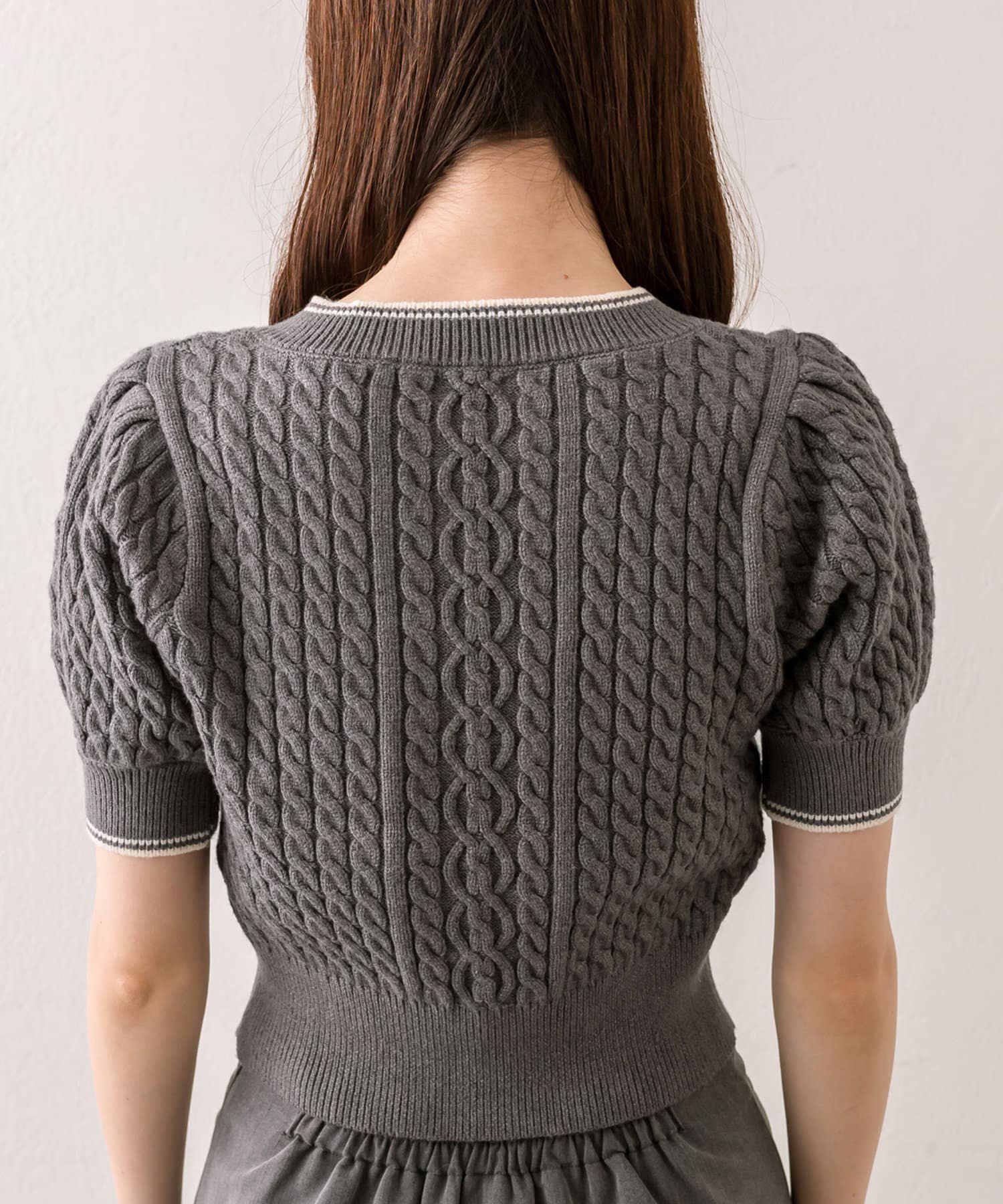 ・ケーブル編みが女の子らしい印象を与えてくれる半袖ニット。