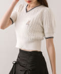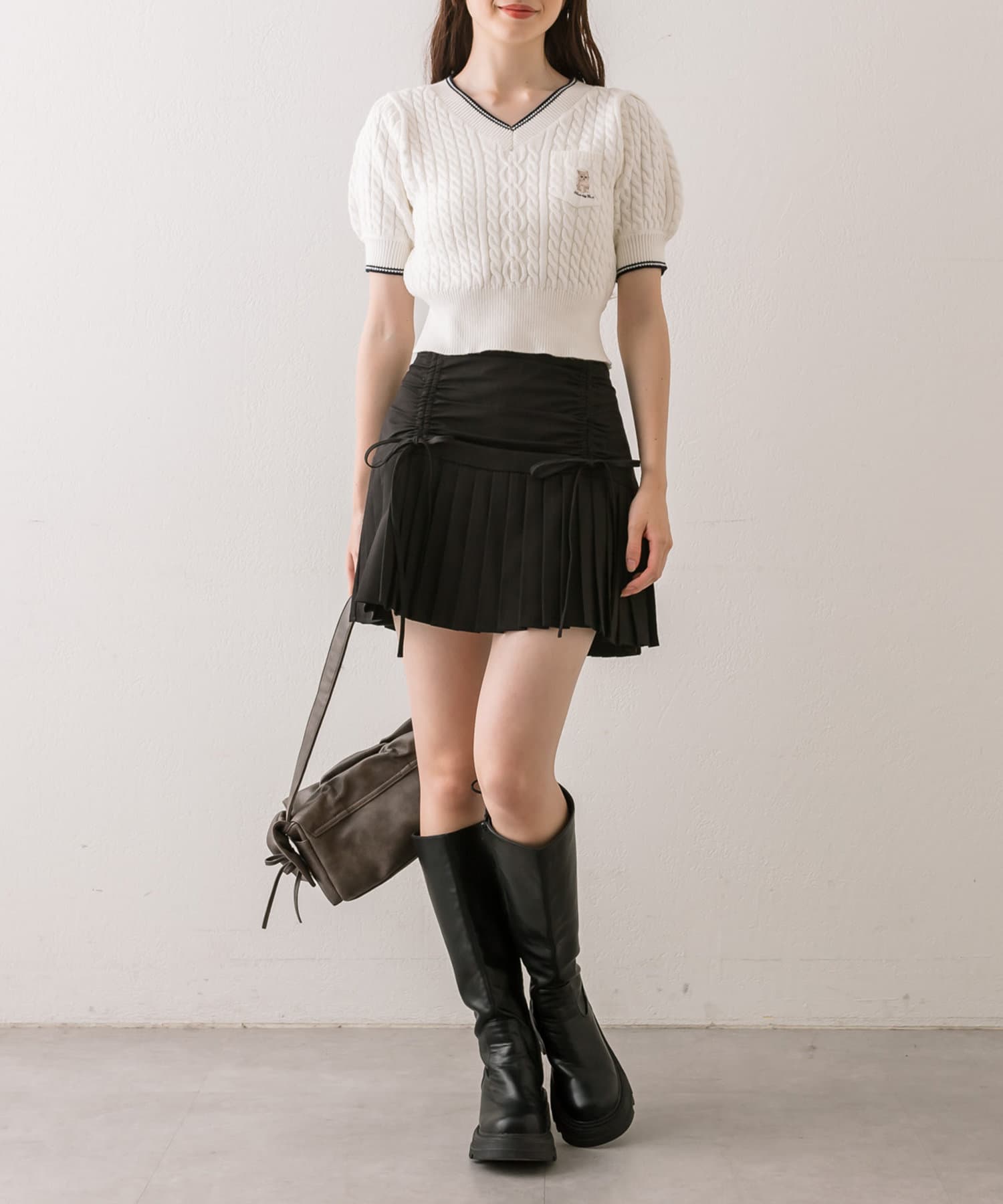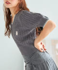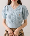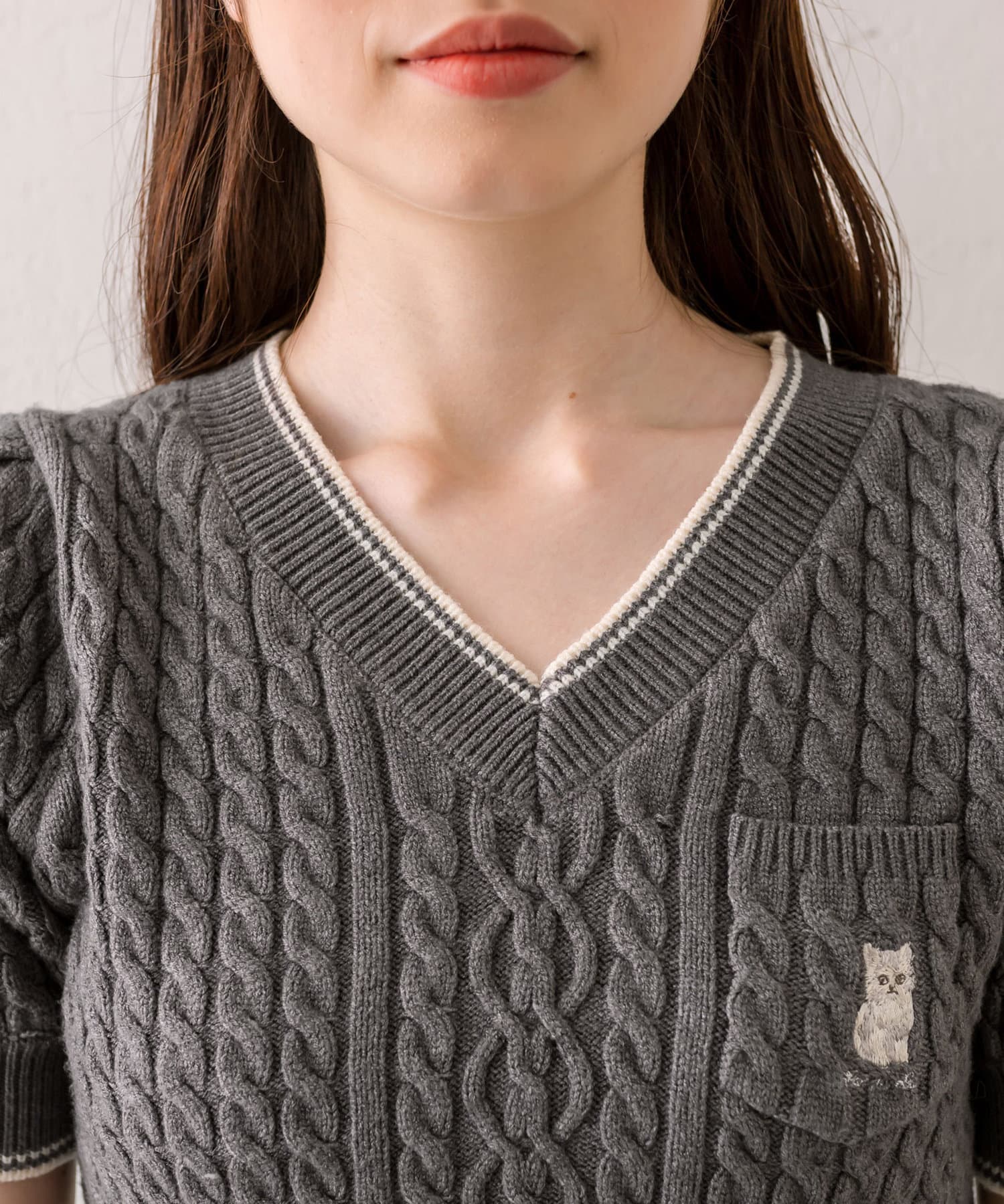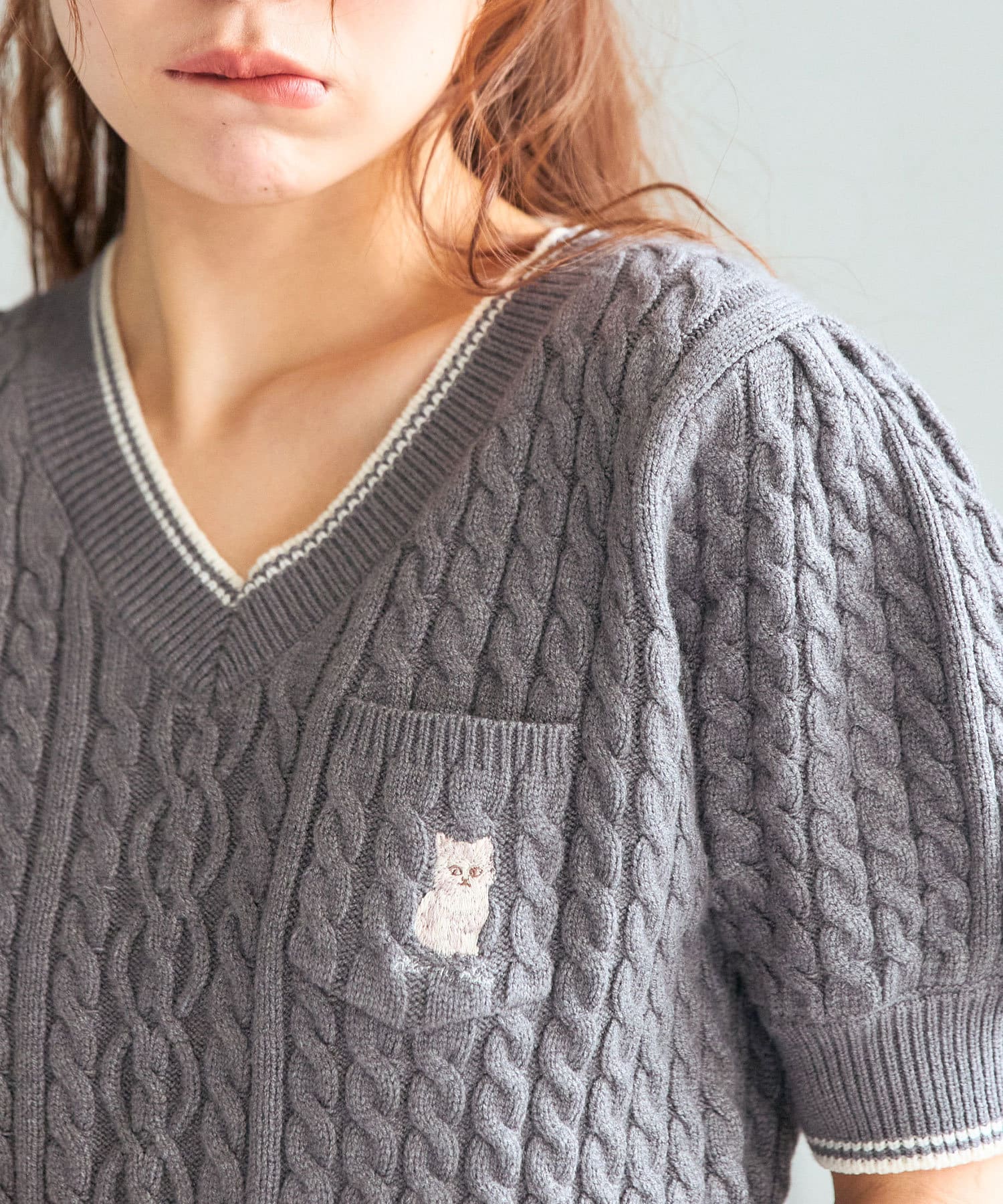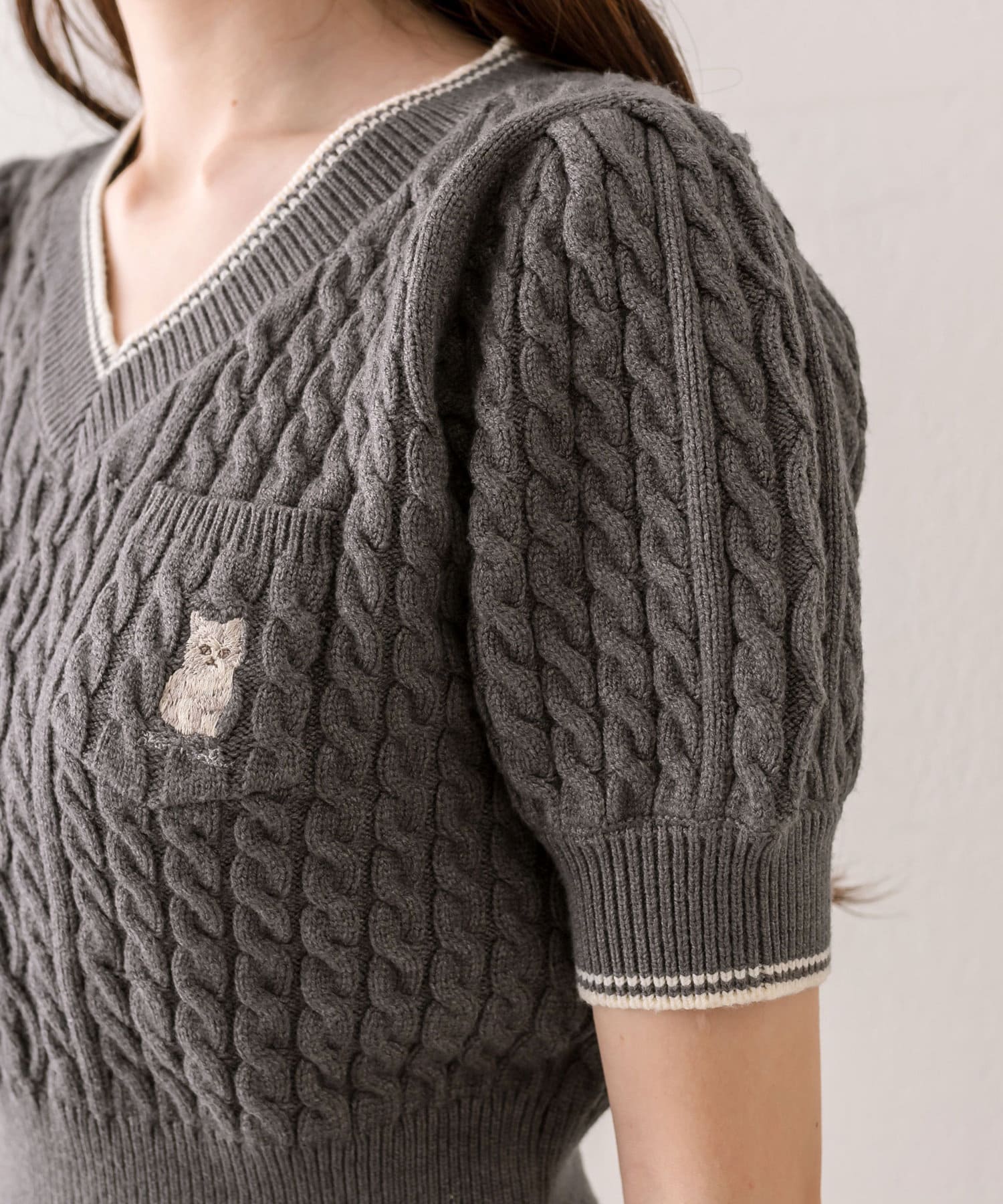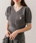 ・ケーブル編みが女の子らしい印象を与えてくれる半袖ニット。