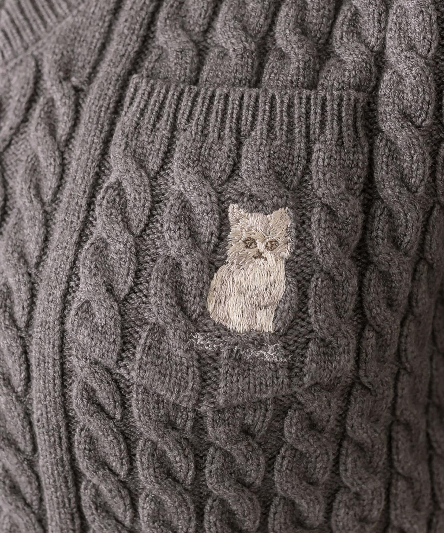 ・ネコ刺繍が施された胸ポケットや配色ラインがあることでシンプル過ぎないデザインに。