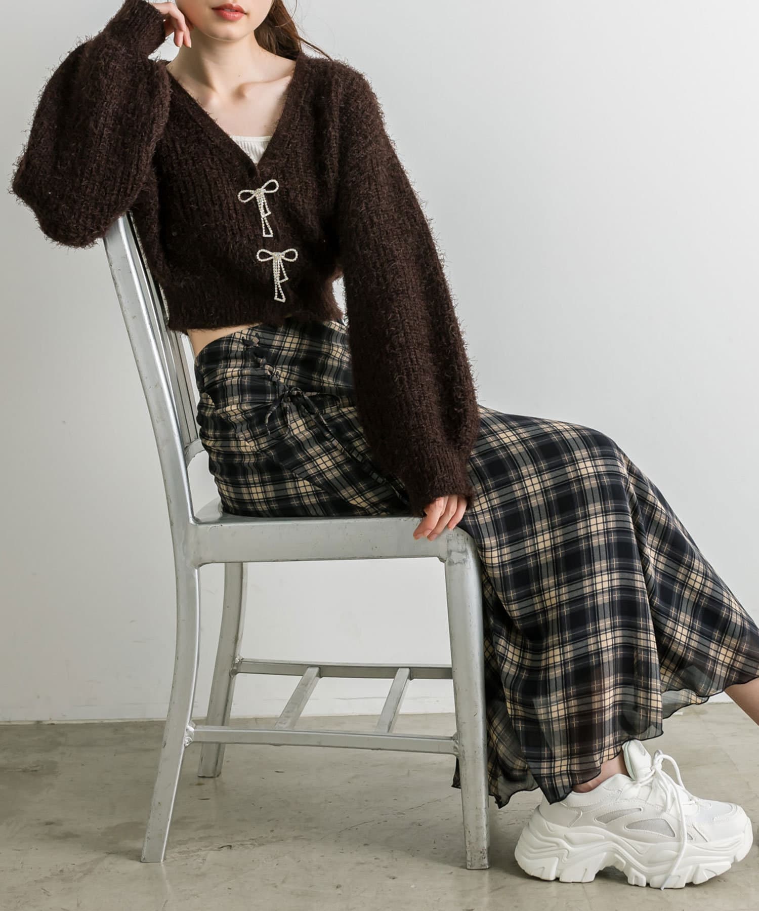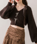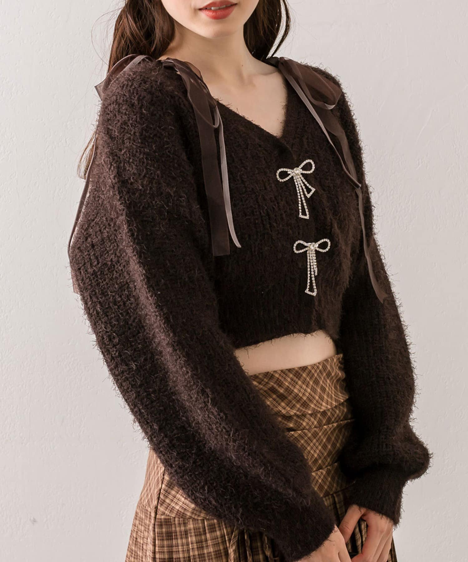 ・トレンドのリボンモチーフのビジューが可愛いカーディガン。
