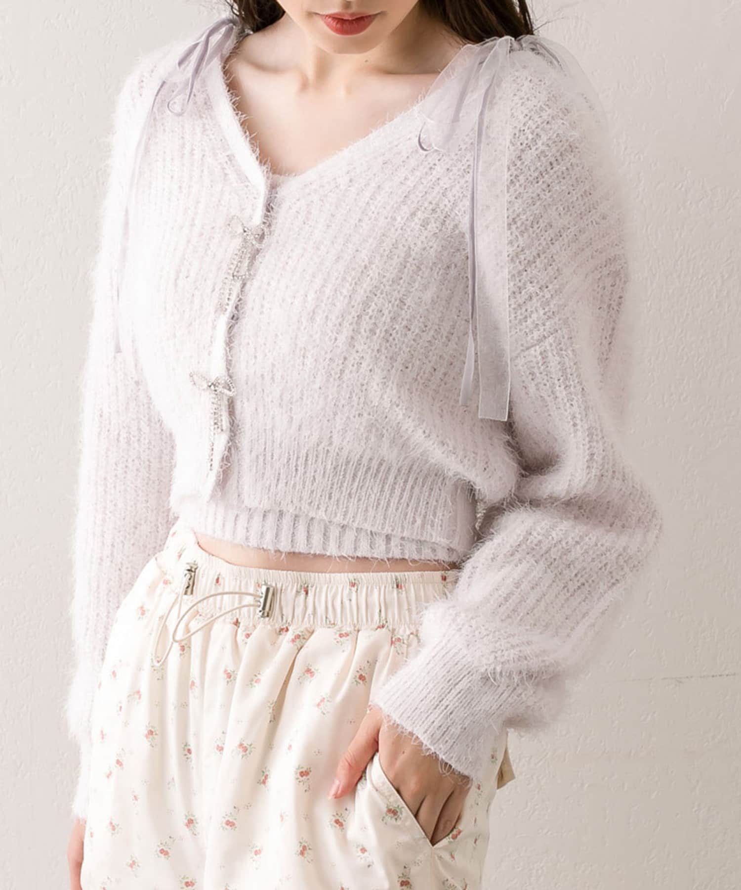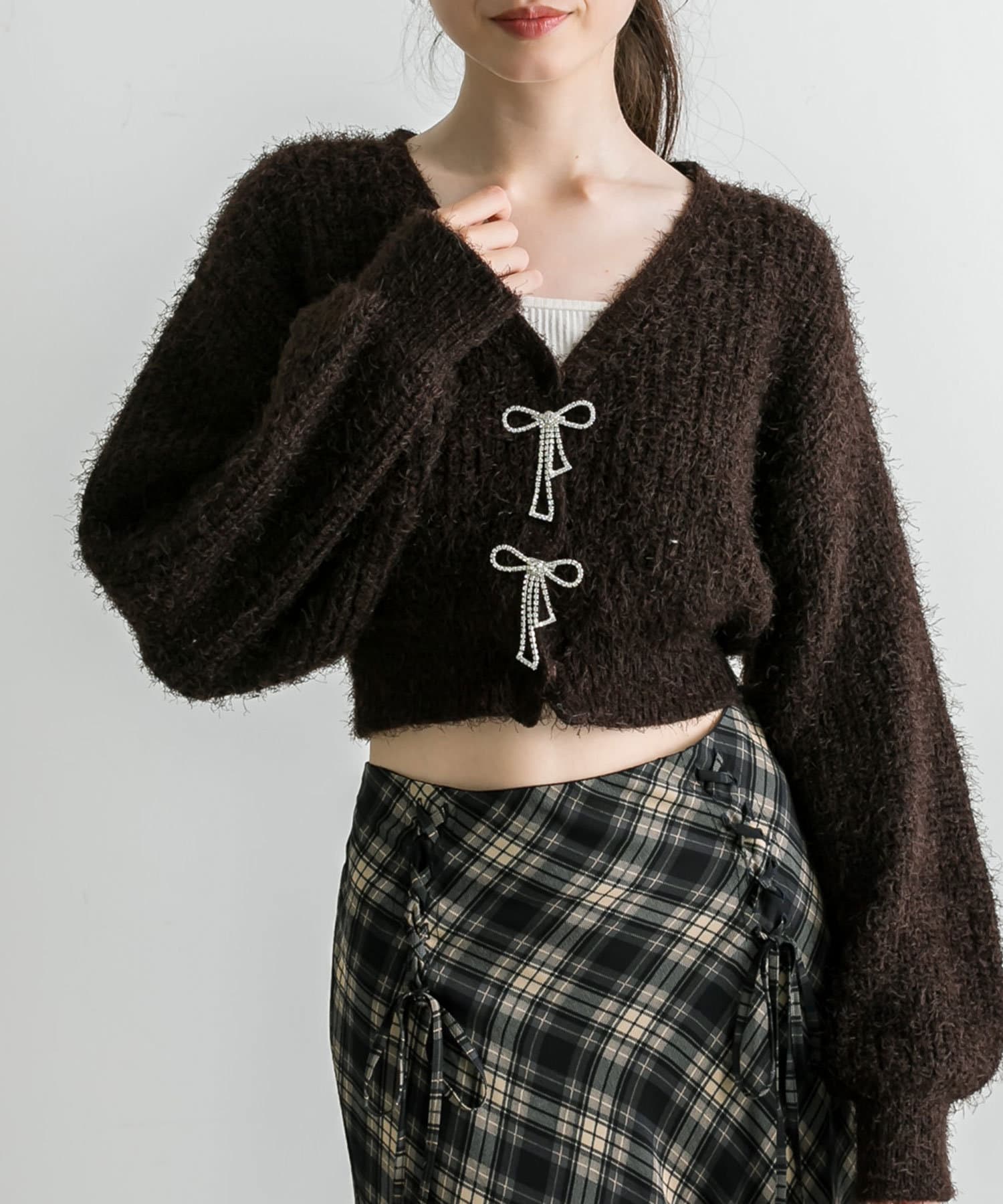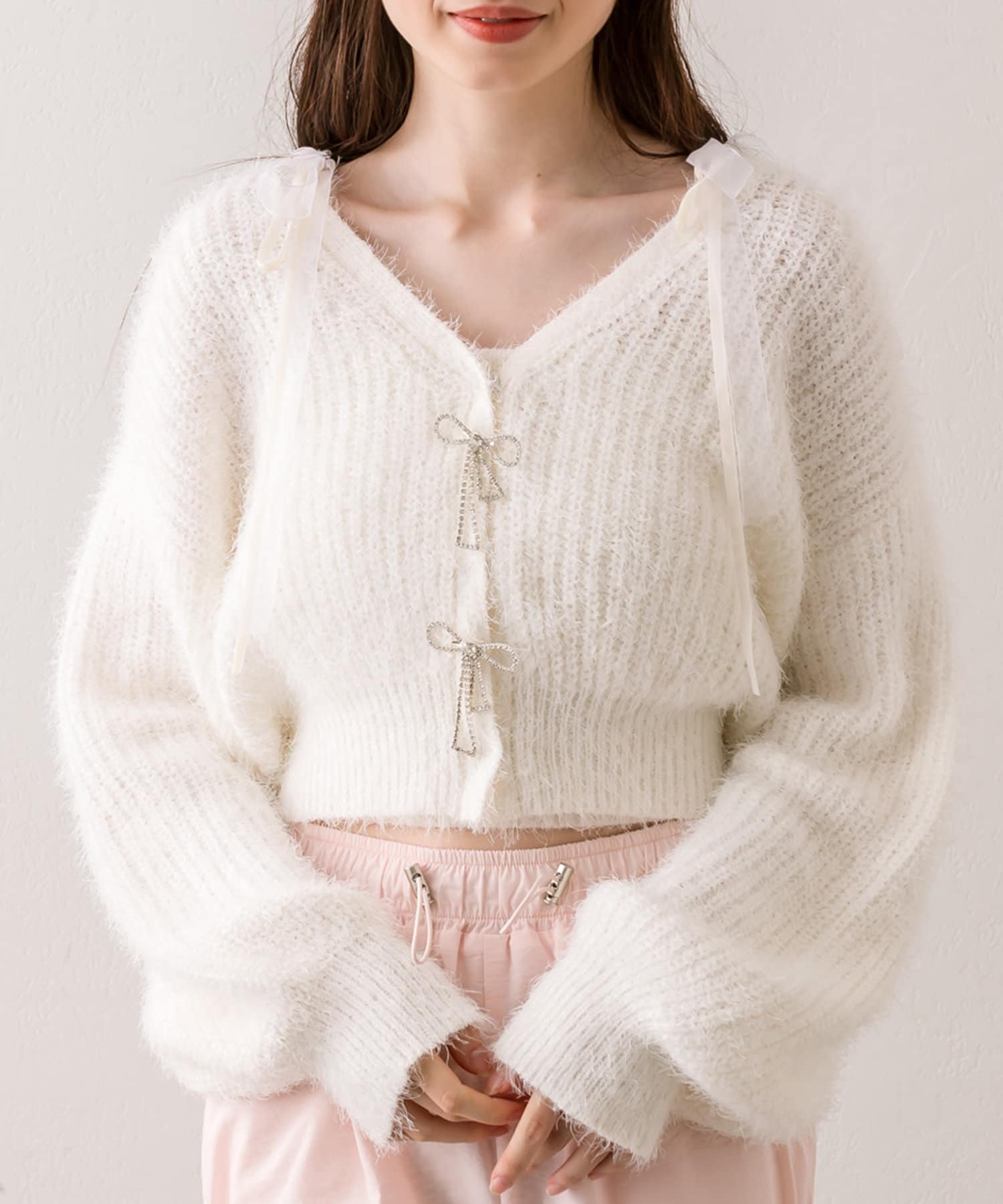 【SNSで話題!】ふわふわリボンビジューカーディガン