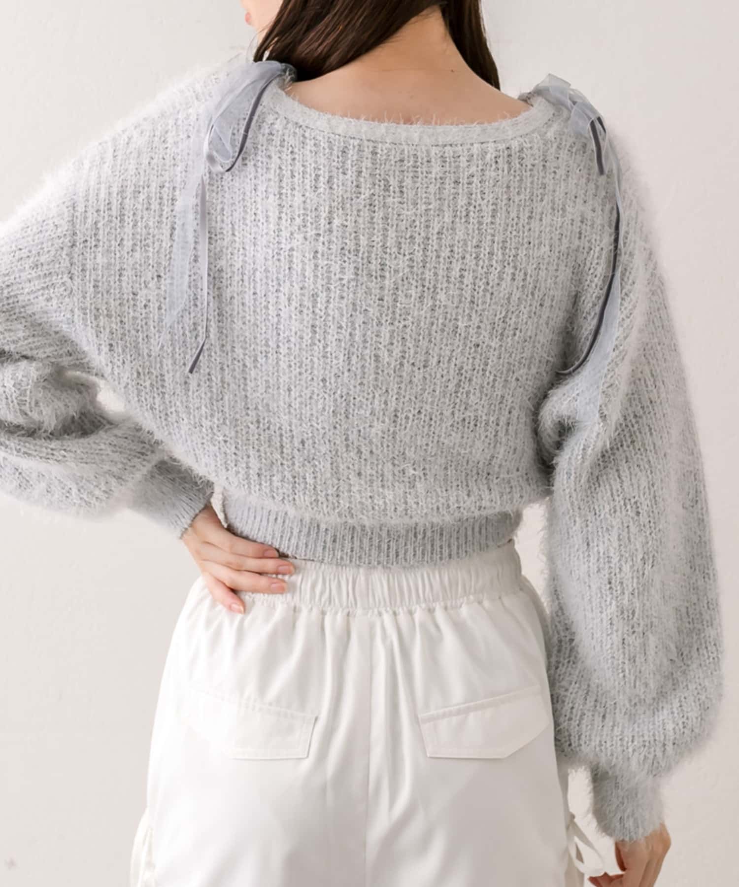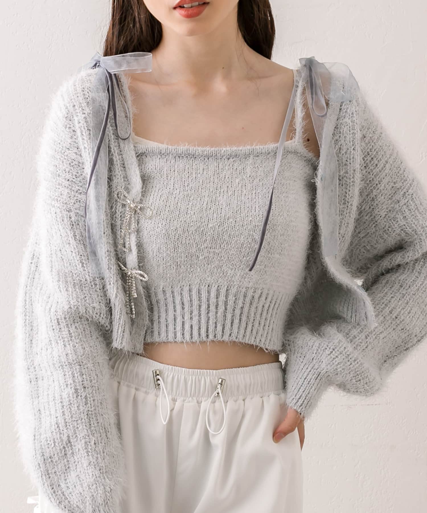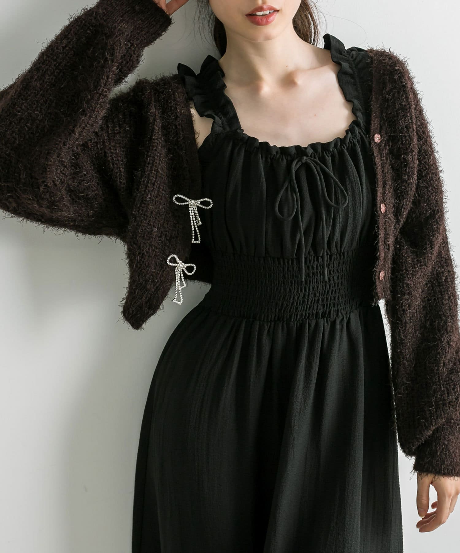 【SNSで話題!】ふわふわリボンビジューカーディガン