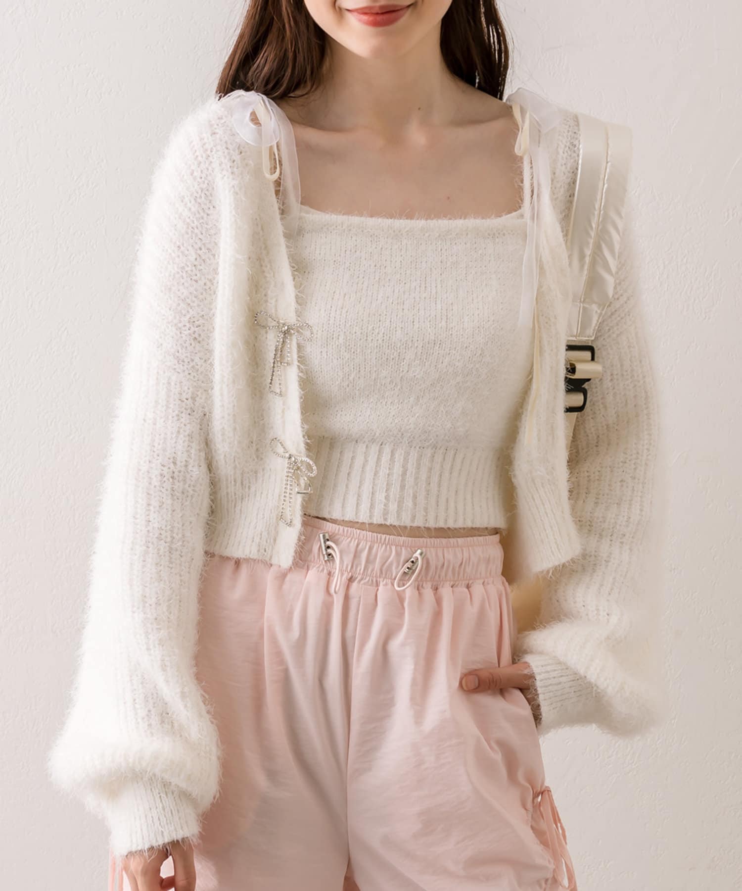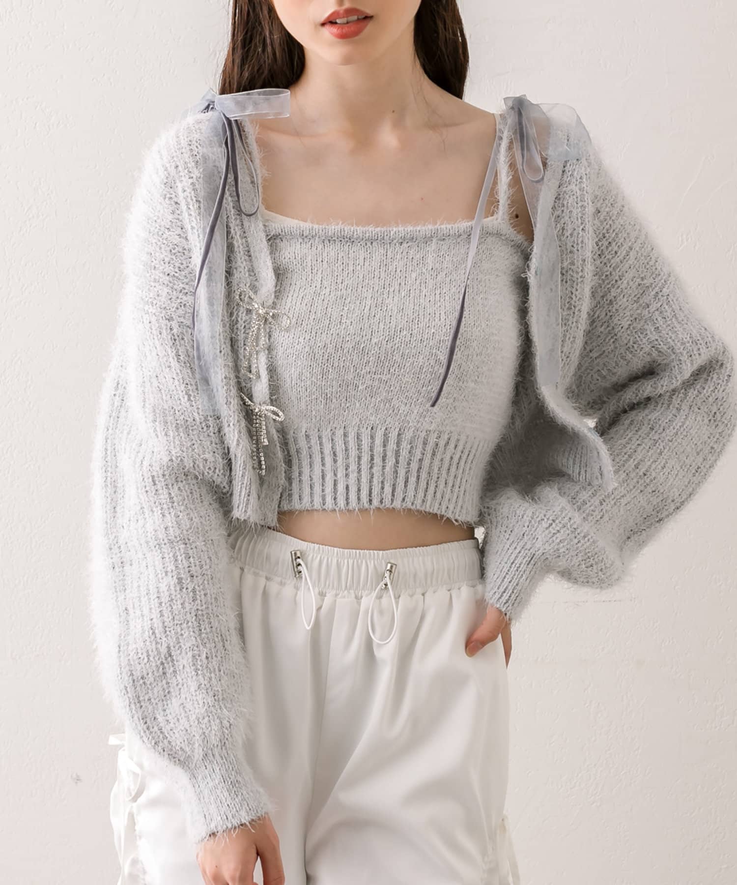 ・ふわふわリボンビジューカーディガン(品番:1042050080)と合わせてアンサンブルで着るのがおすすめ。