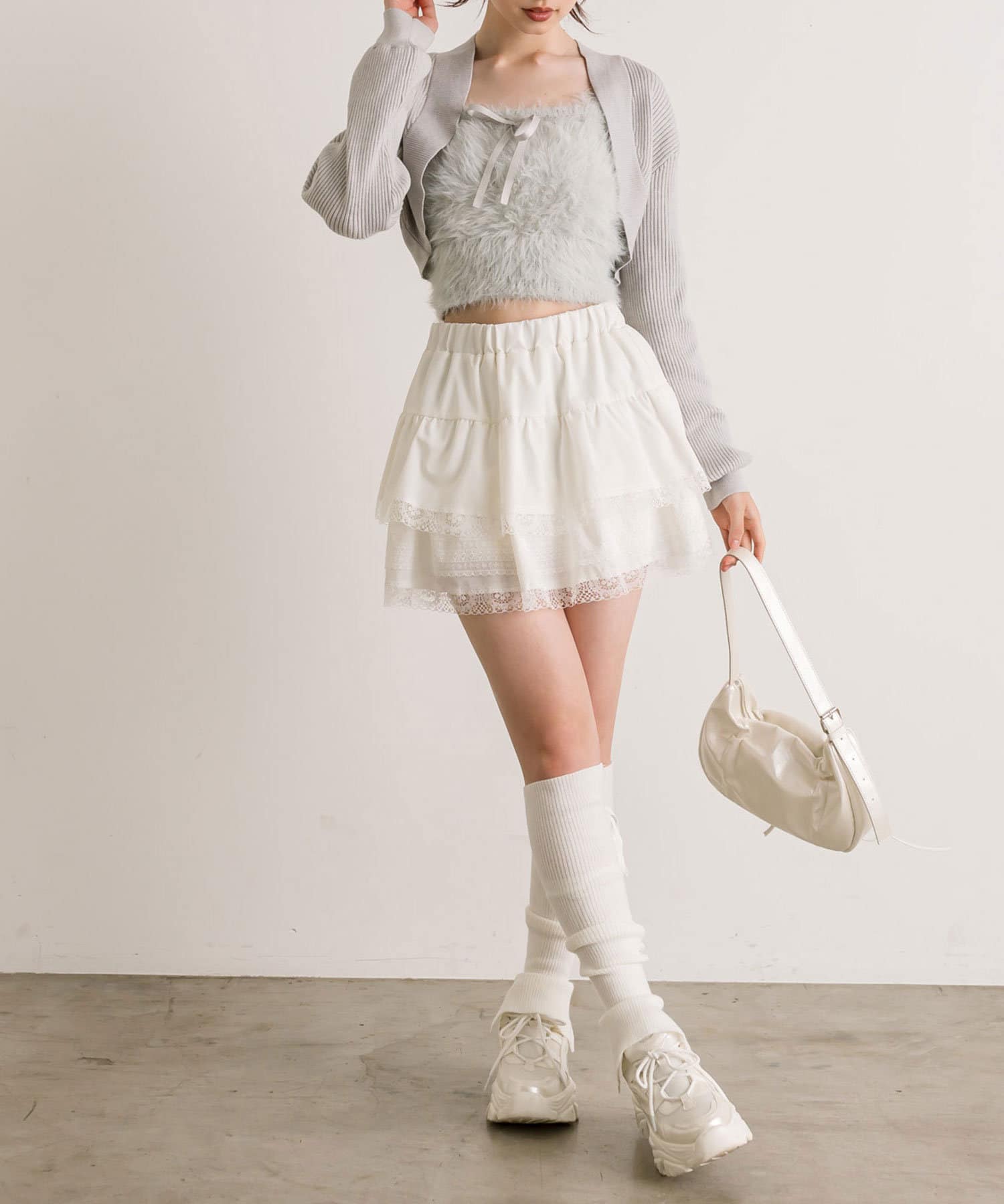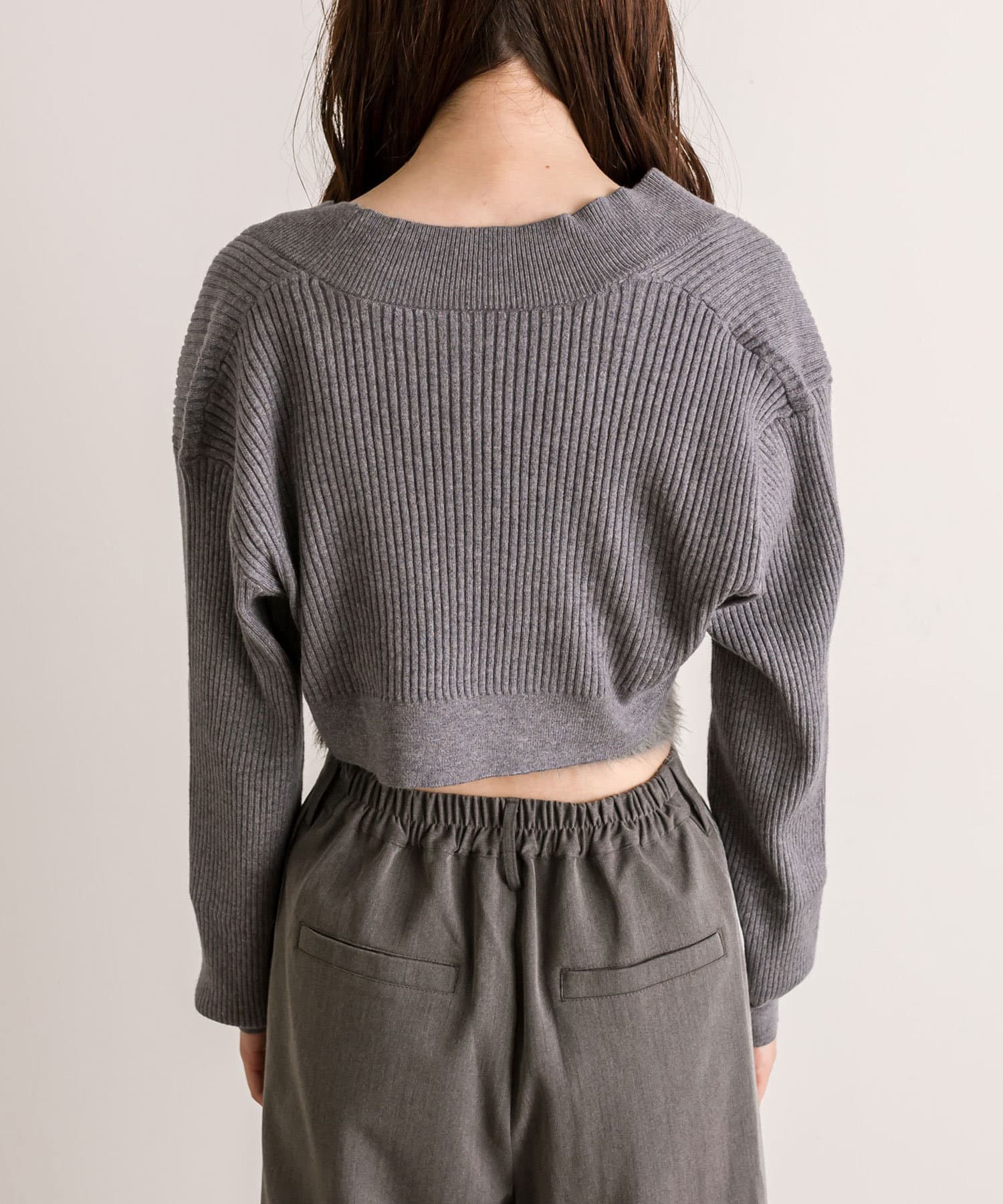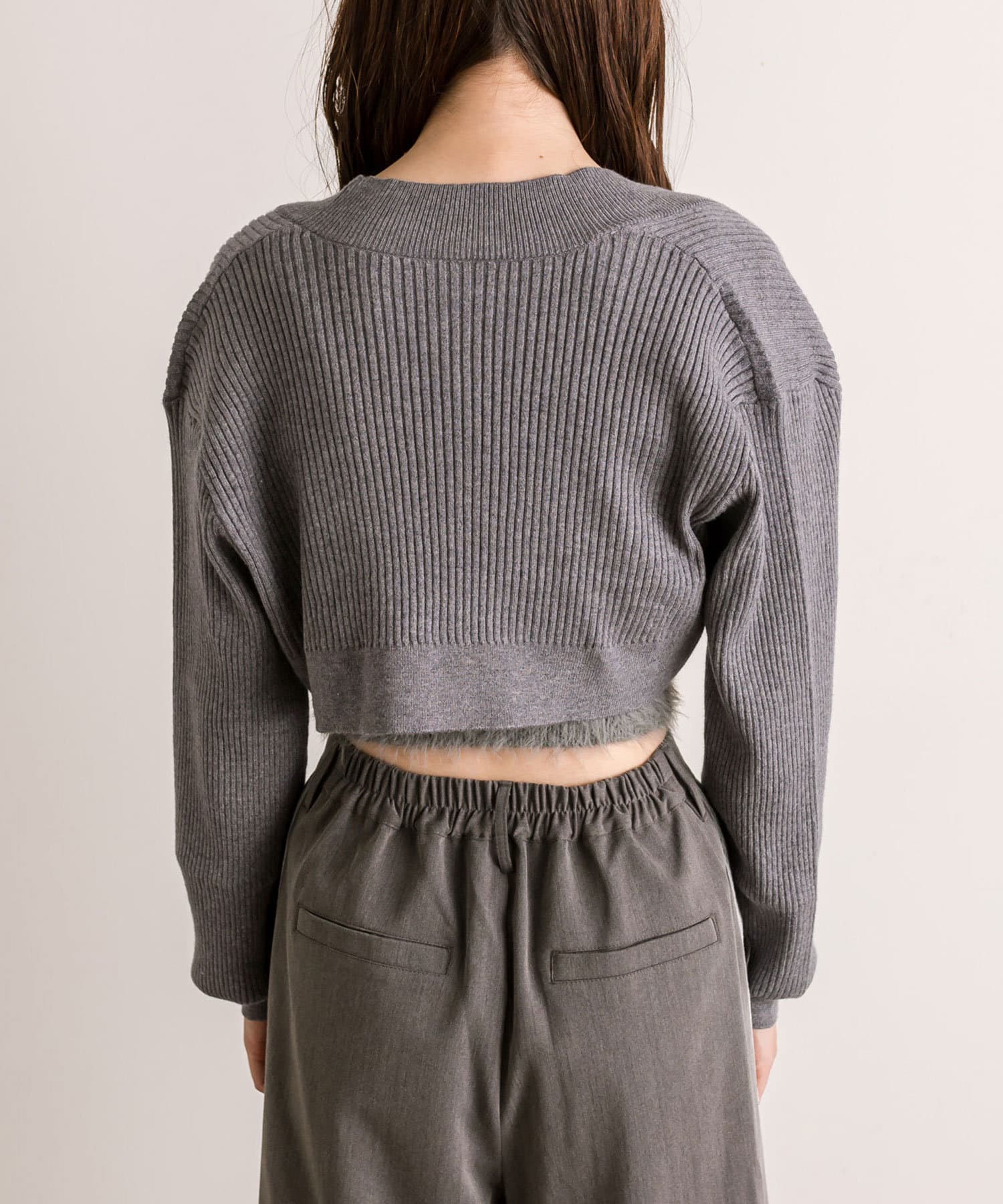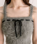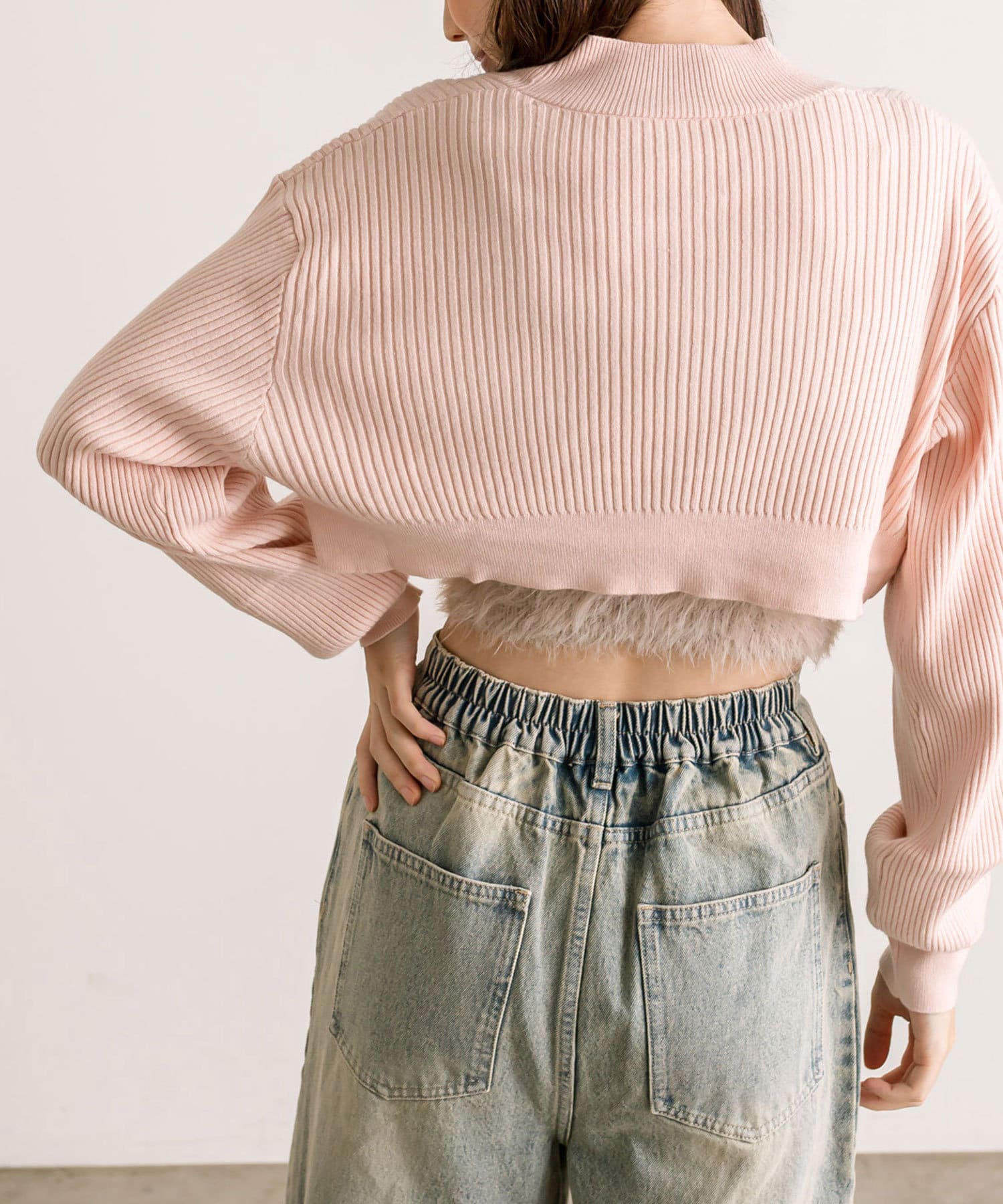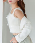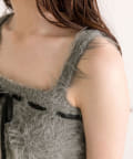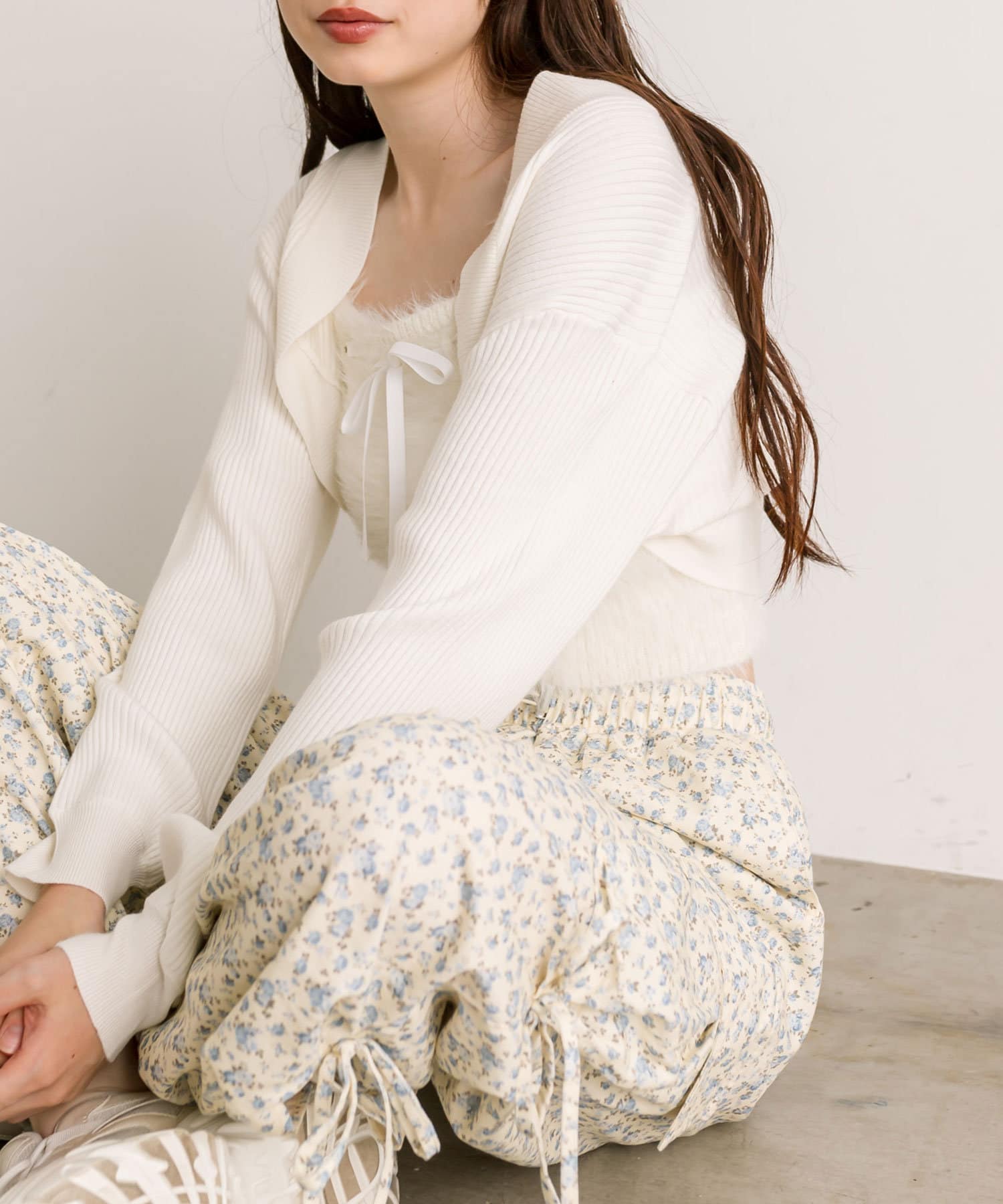 ・リボンがポイントのふわふわビスチェとシンプルで着回ししやすいリブ素材のボレロの異素材セットアイテム。