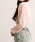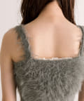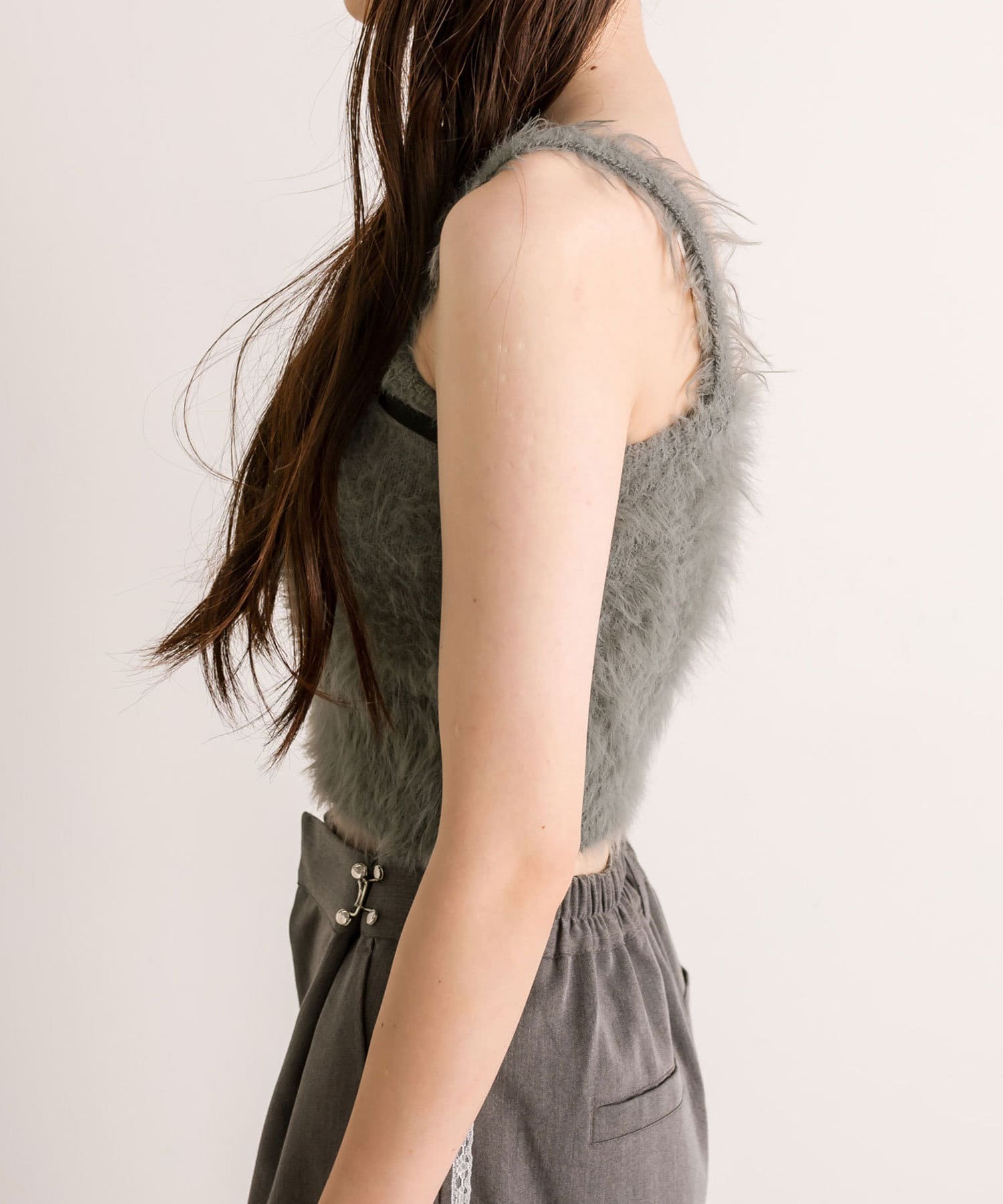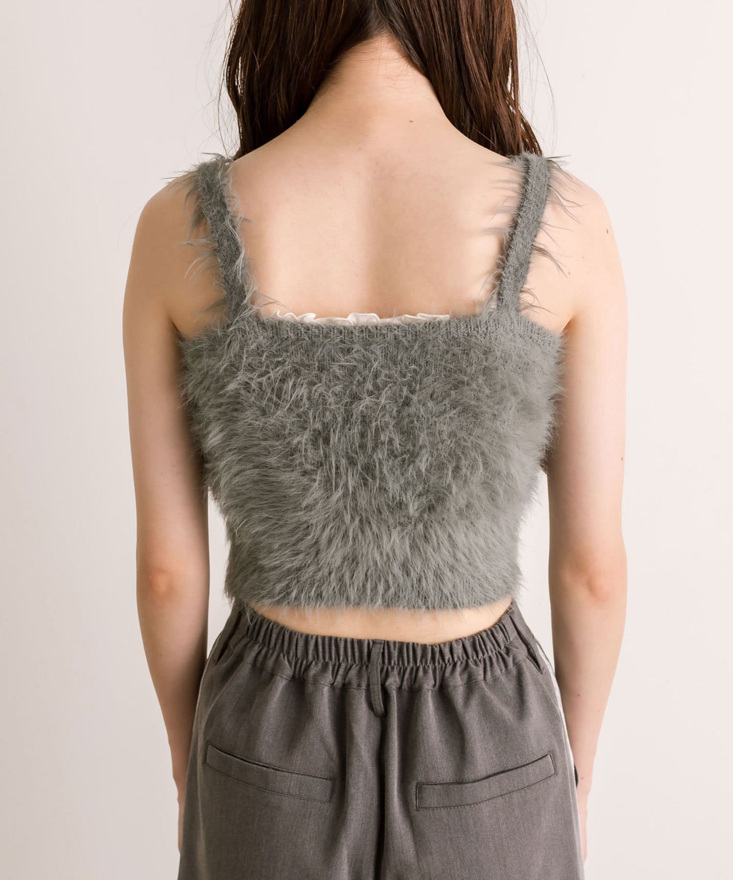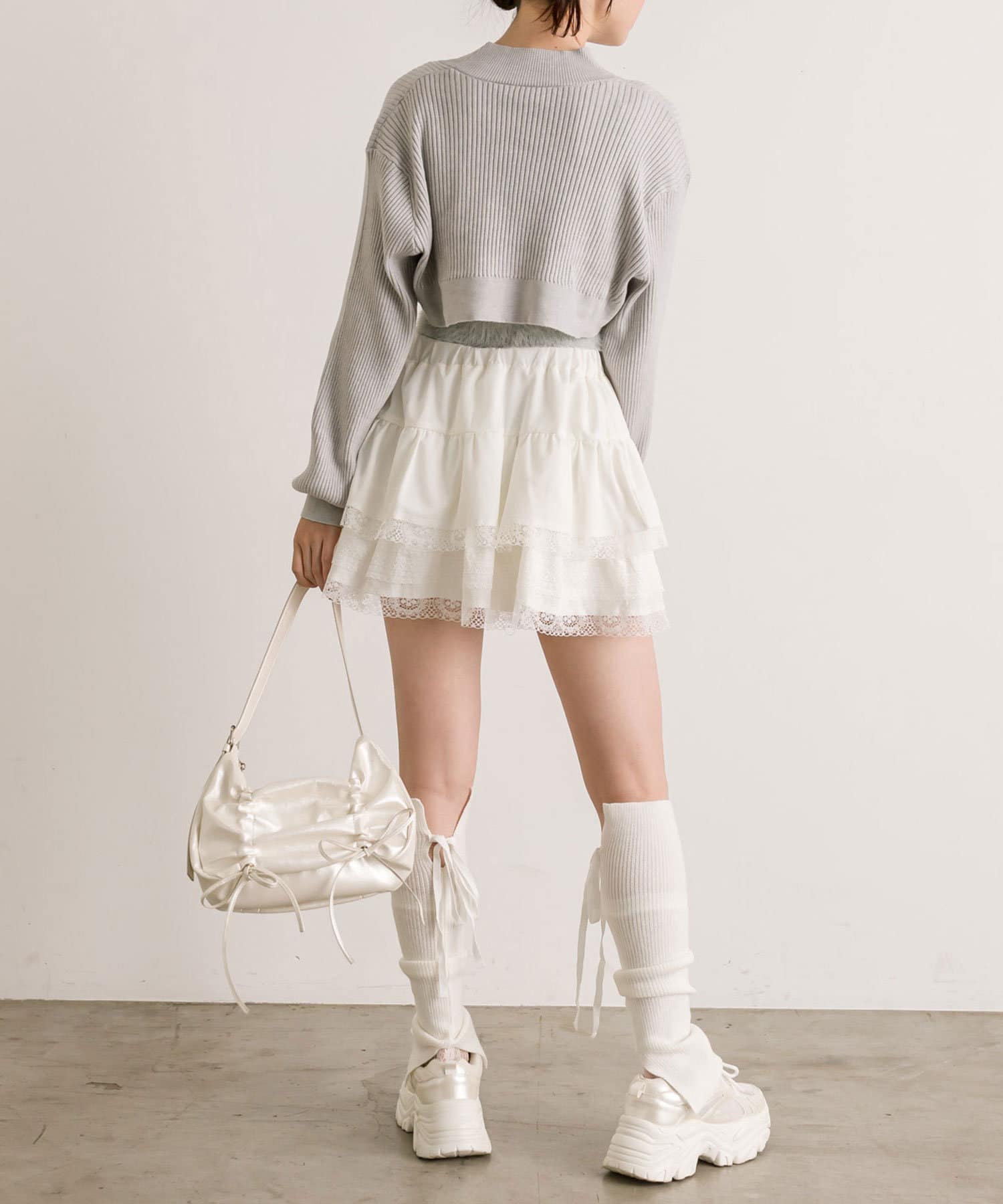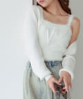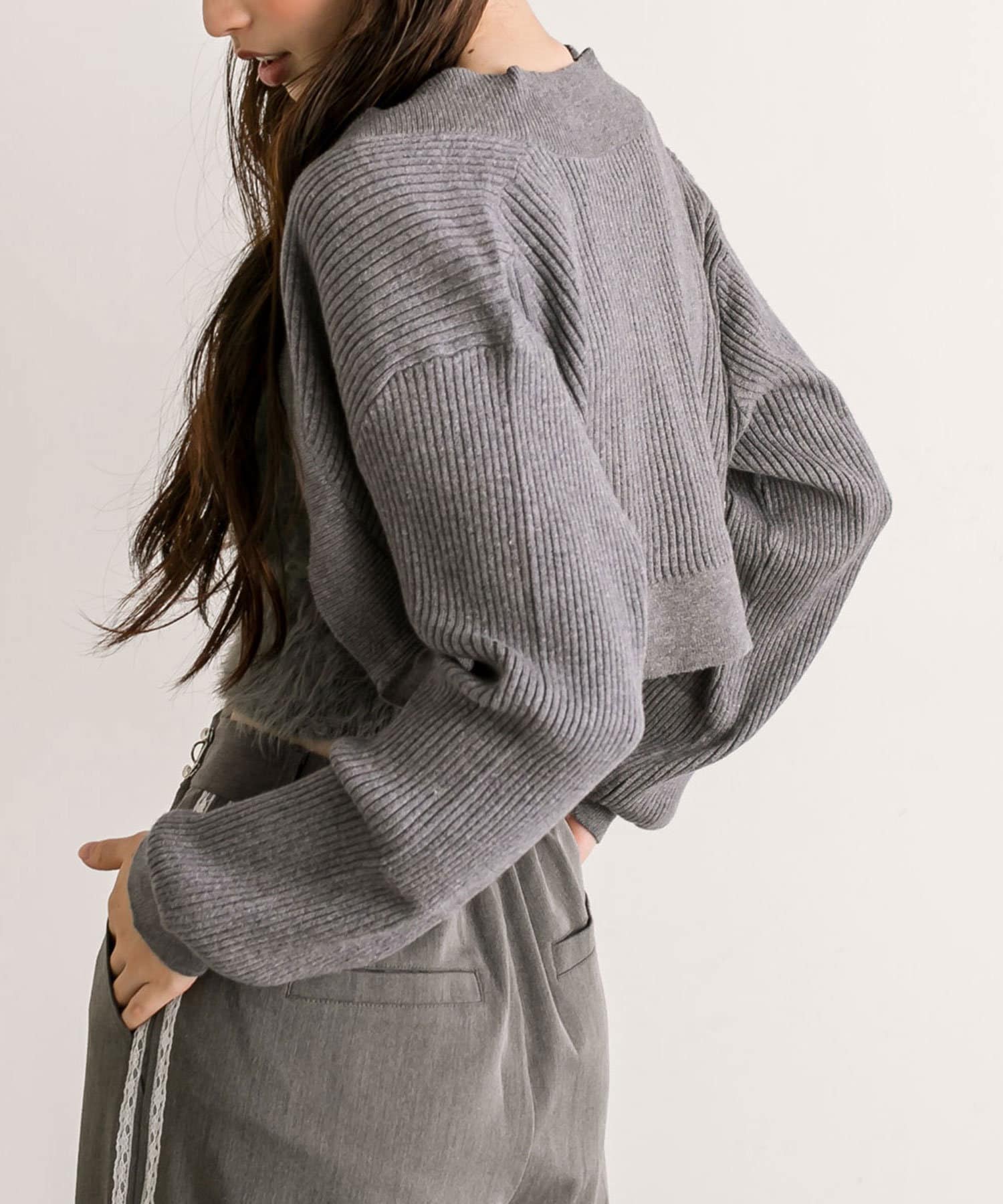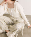 ・リボンがポイントのふわふわビスチェとシンプルで着回ししやすいリブ素材のボレロの異素材セットアイテム。