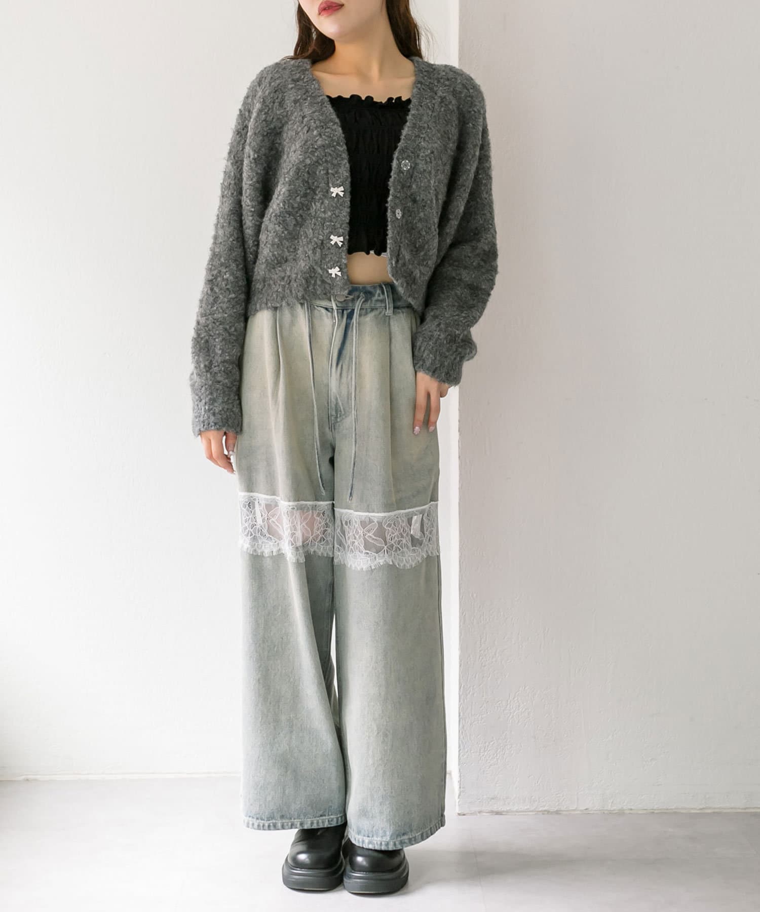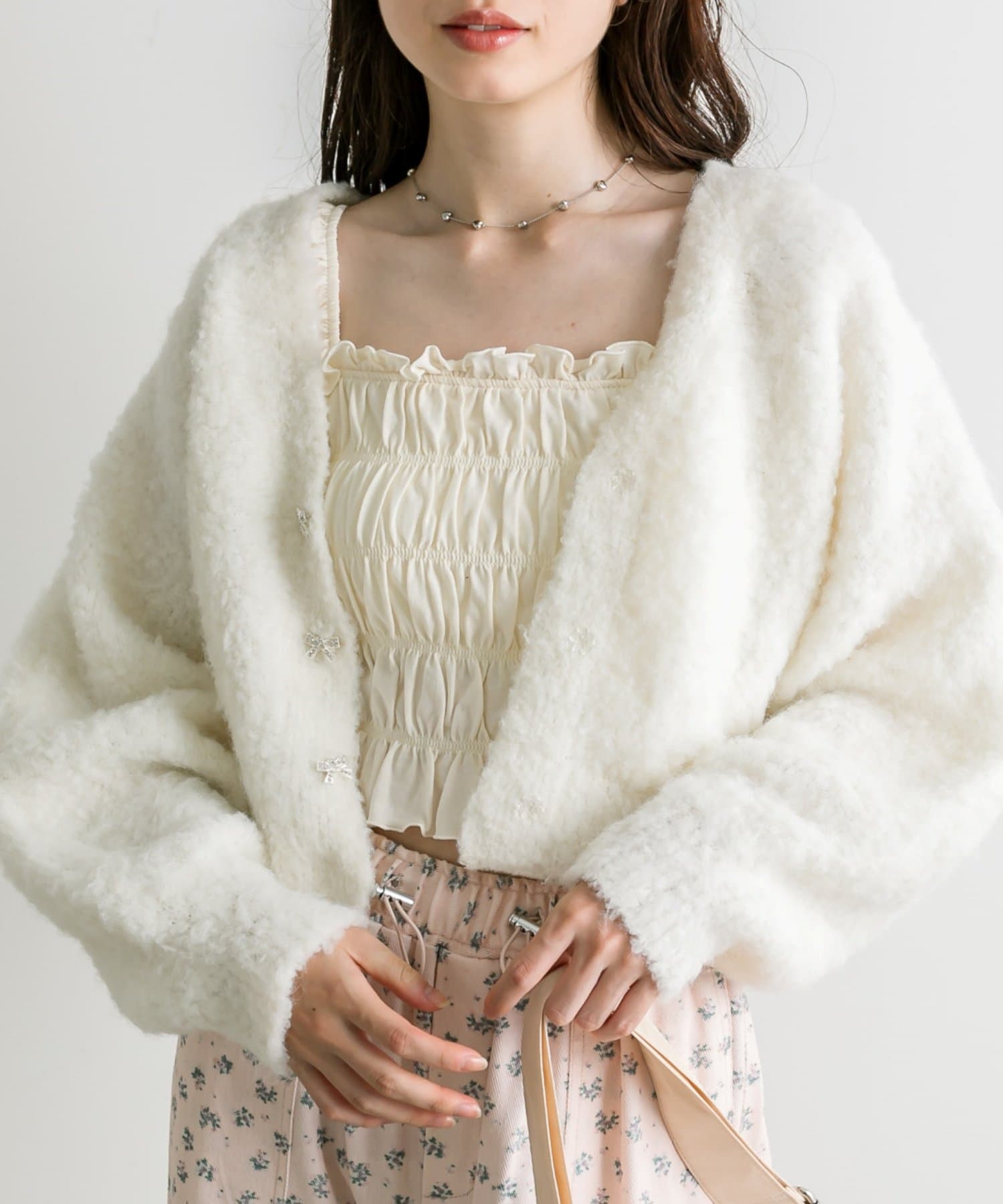 ブークレ起毛ショートカーデ