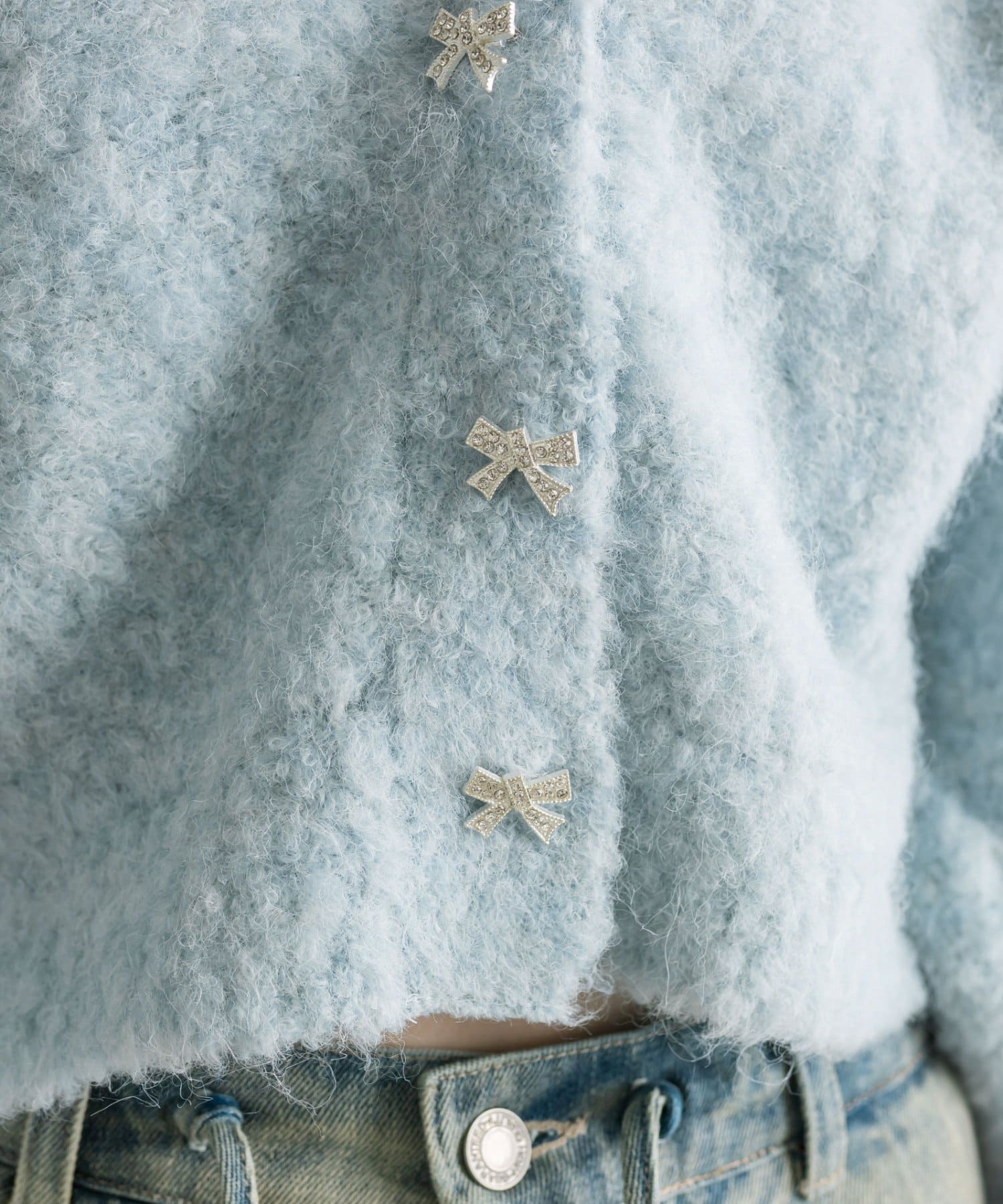 きらきらのリボンビジューがポイントのカーディガン