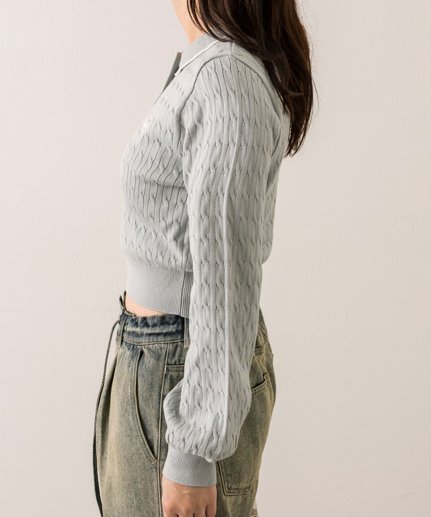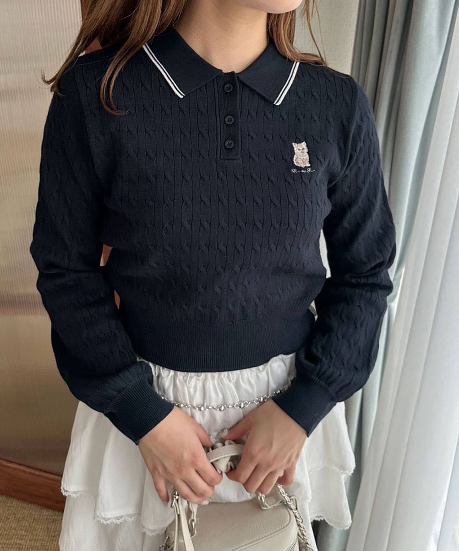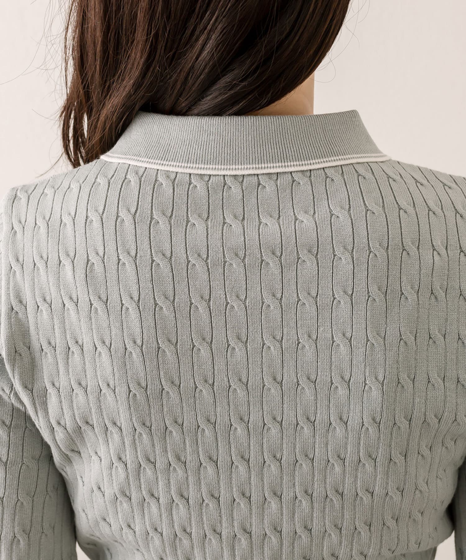 【WEB限定】長袖ケーブルポロニット