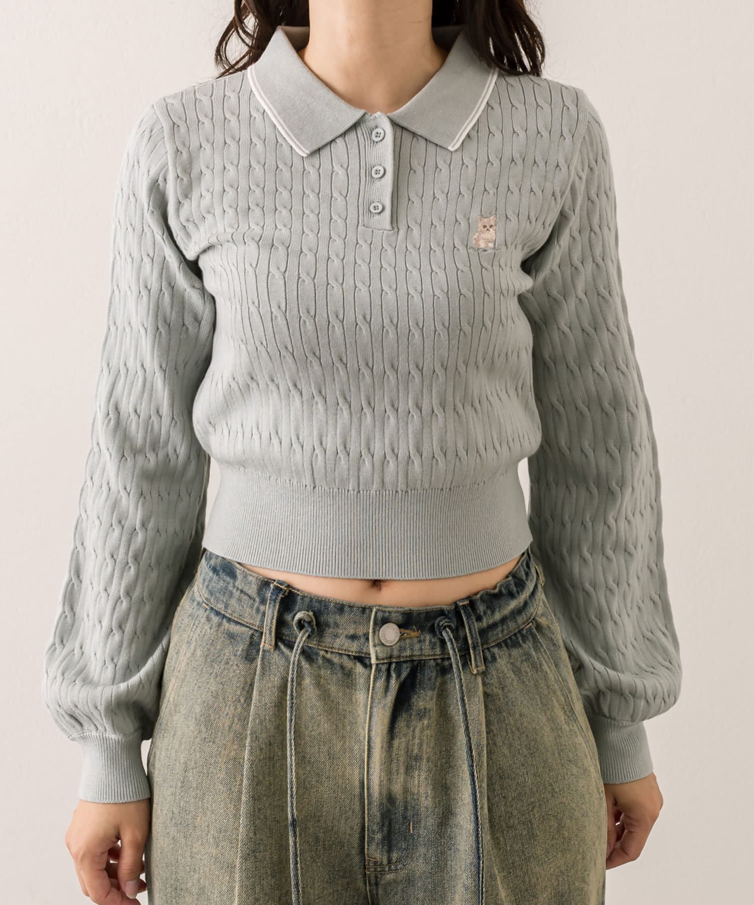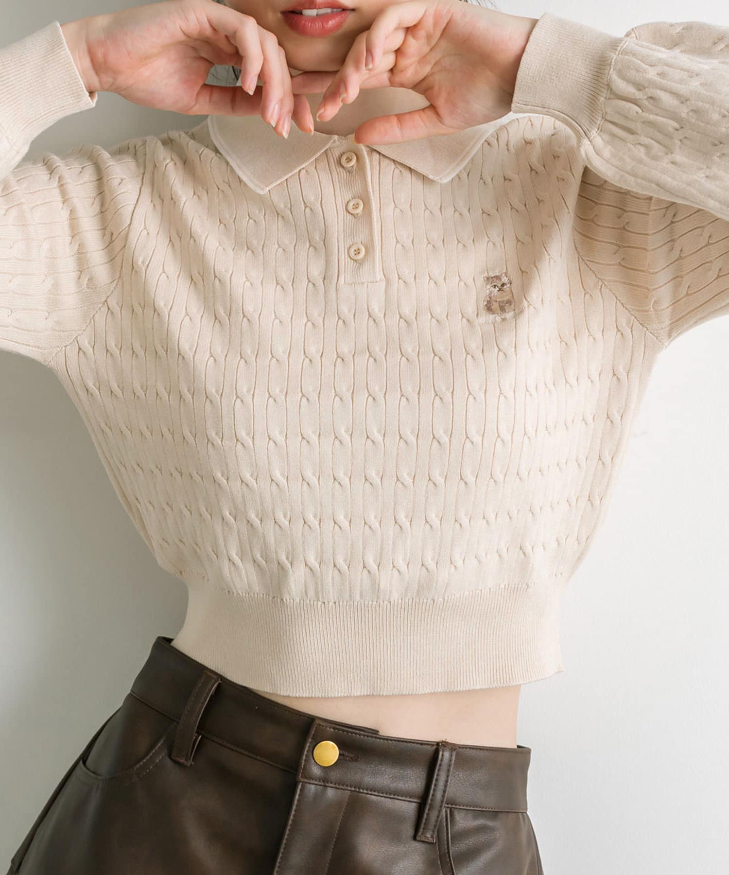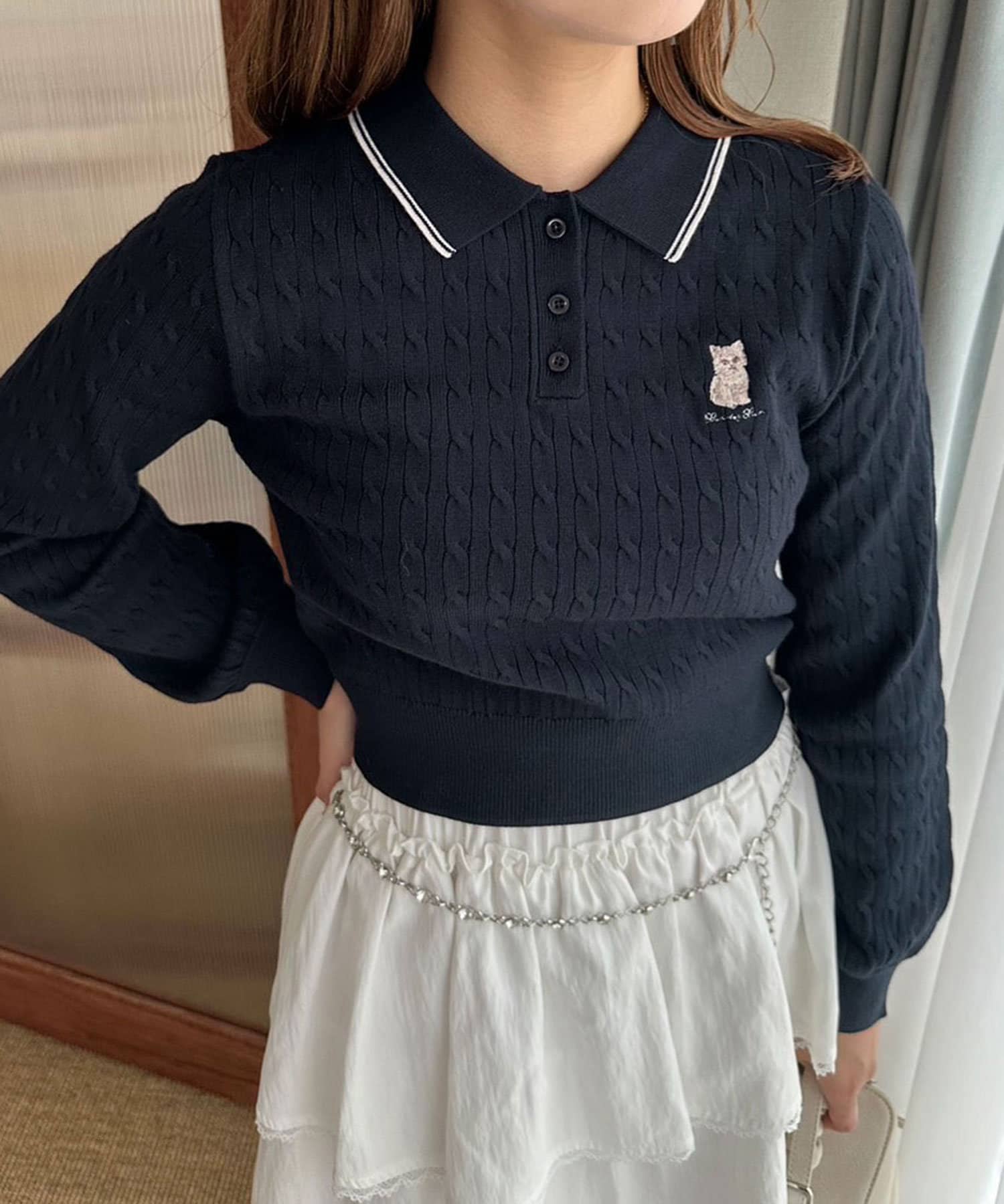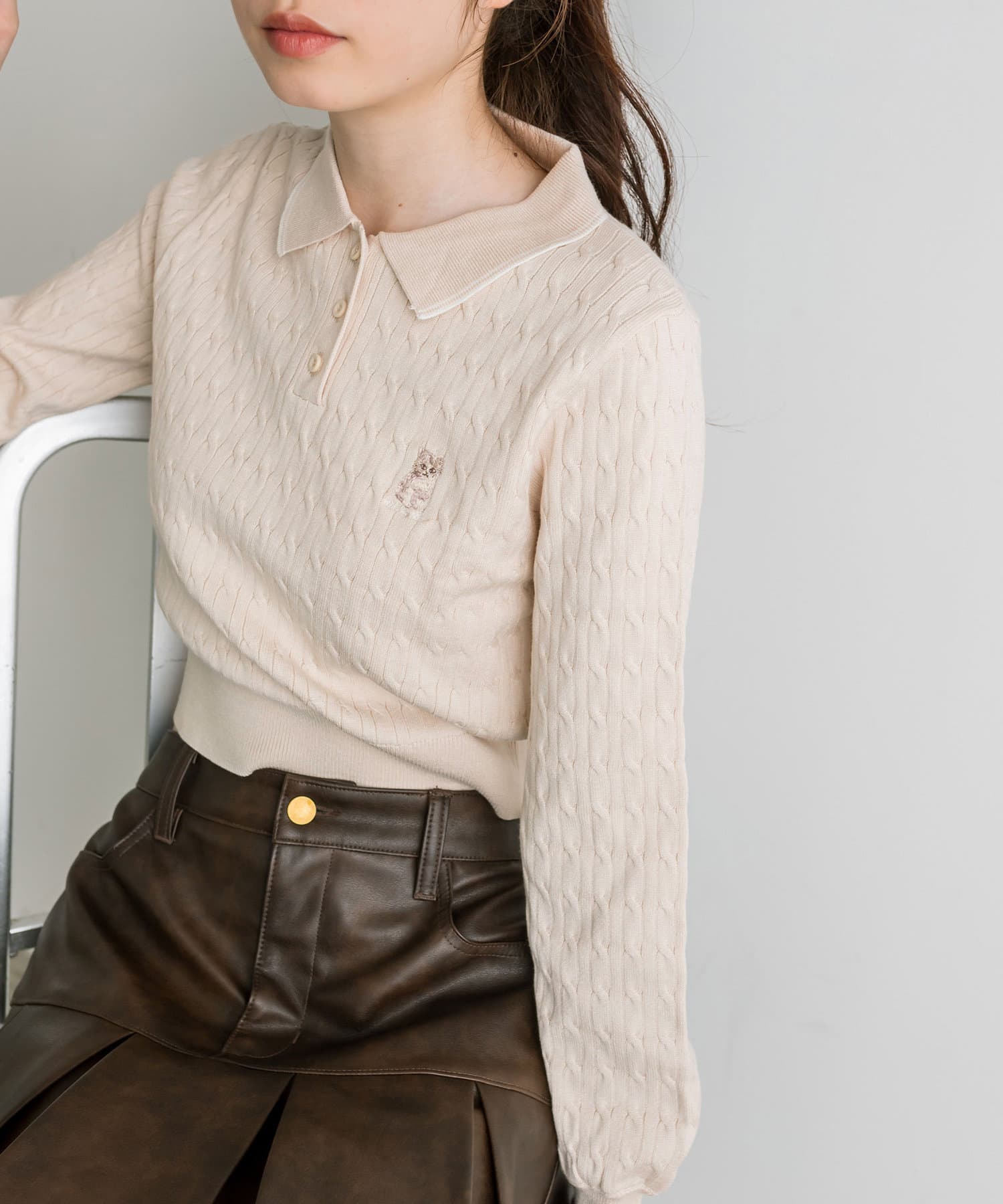 【WEB限定】長袖ケーブルポロニット