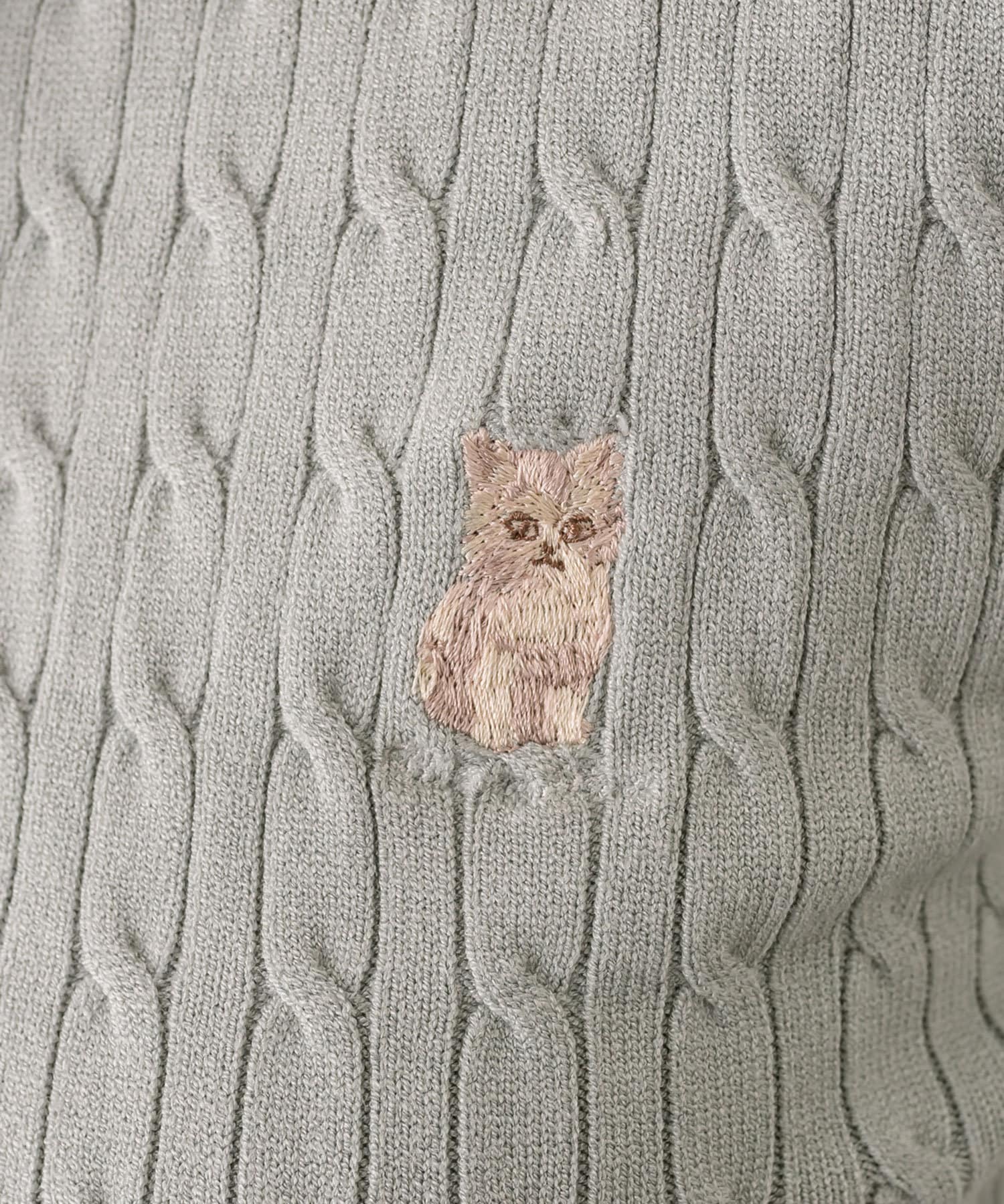 ・ネコ刺繍と衿の配色カラーが目を惹くポイント。