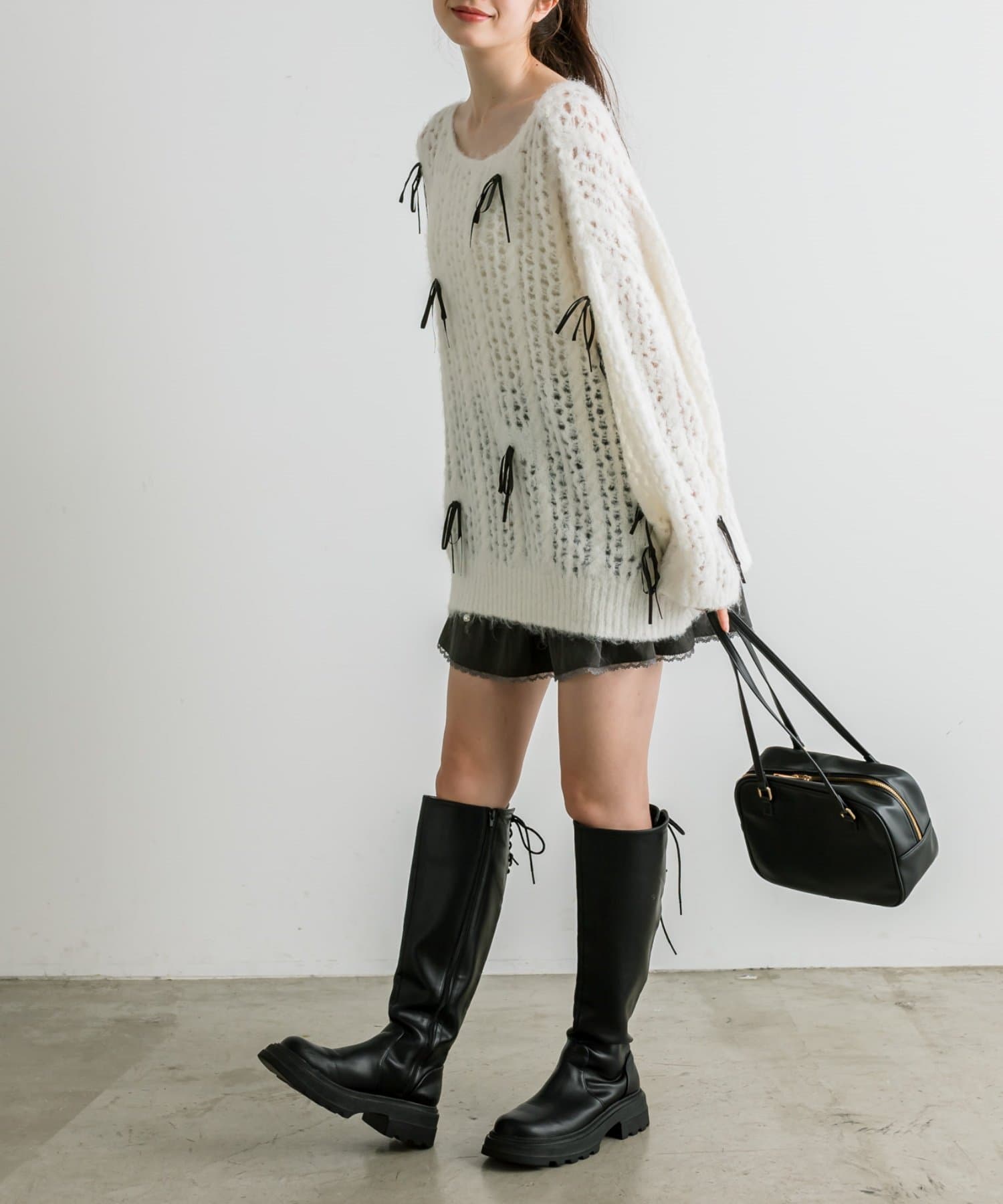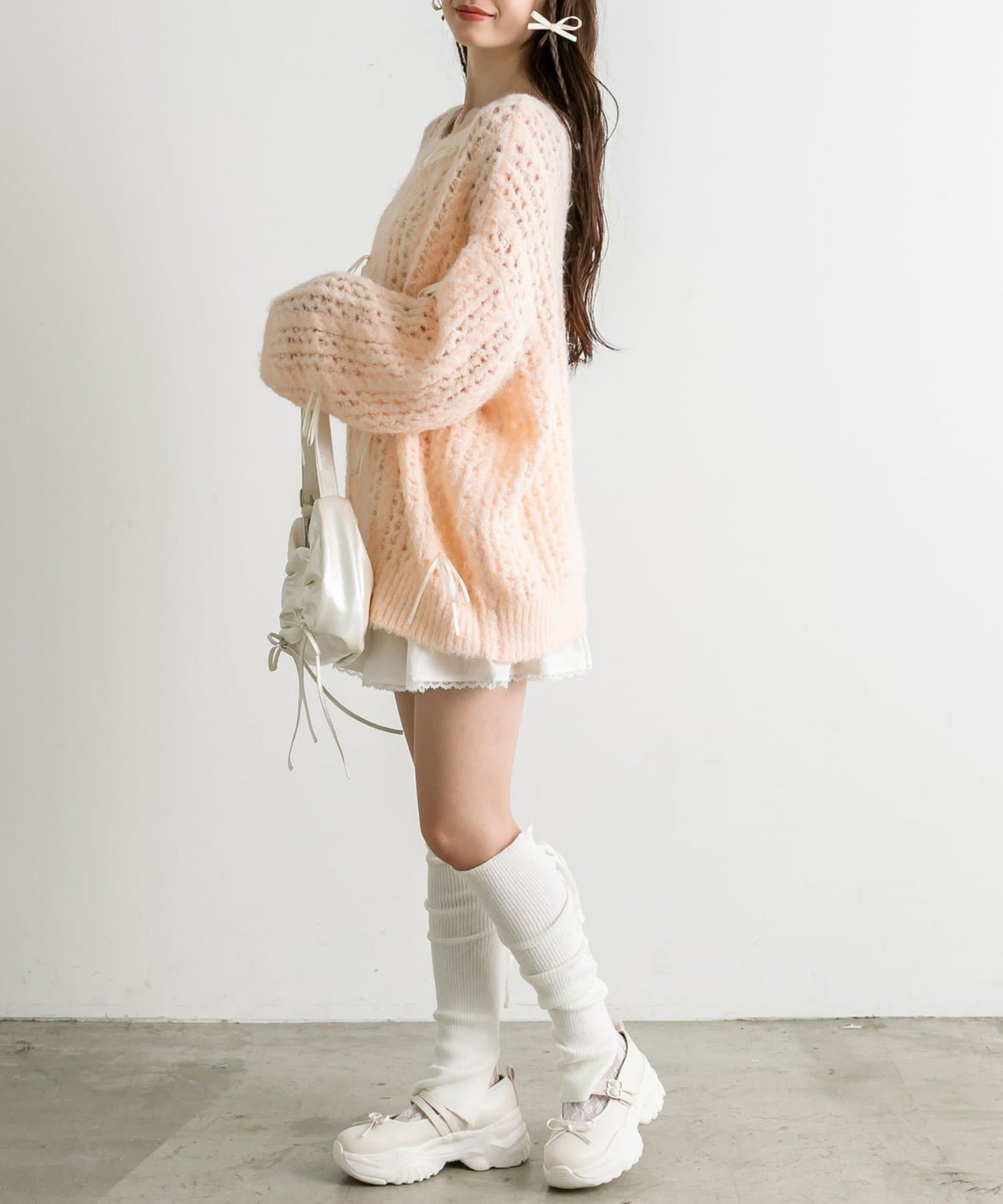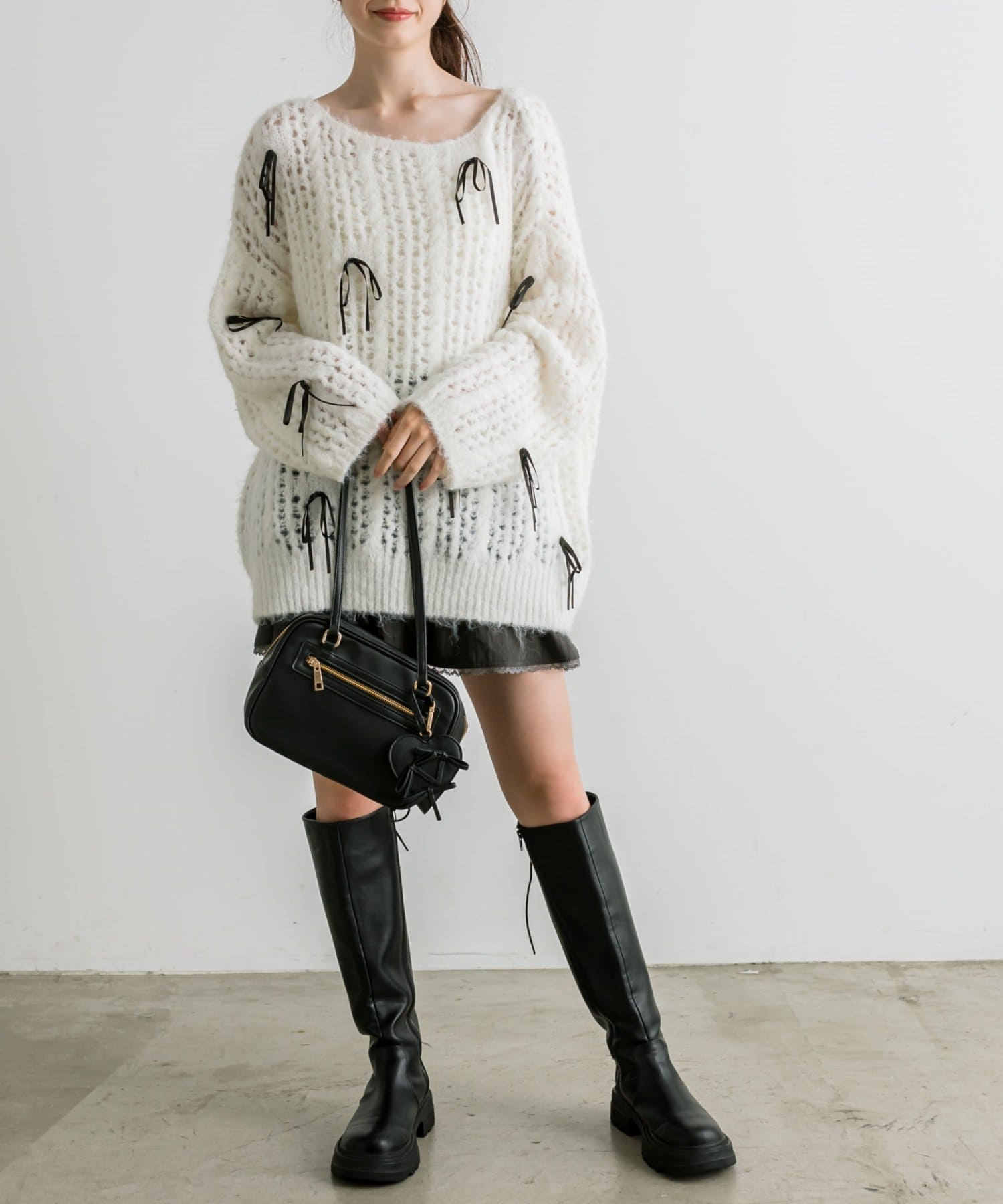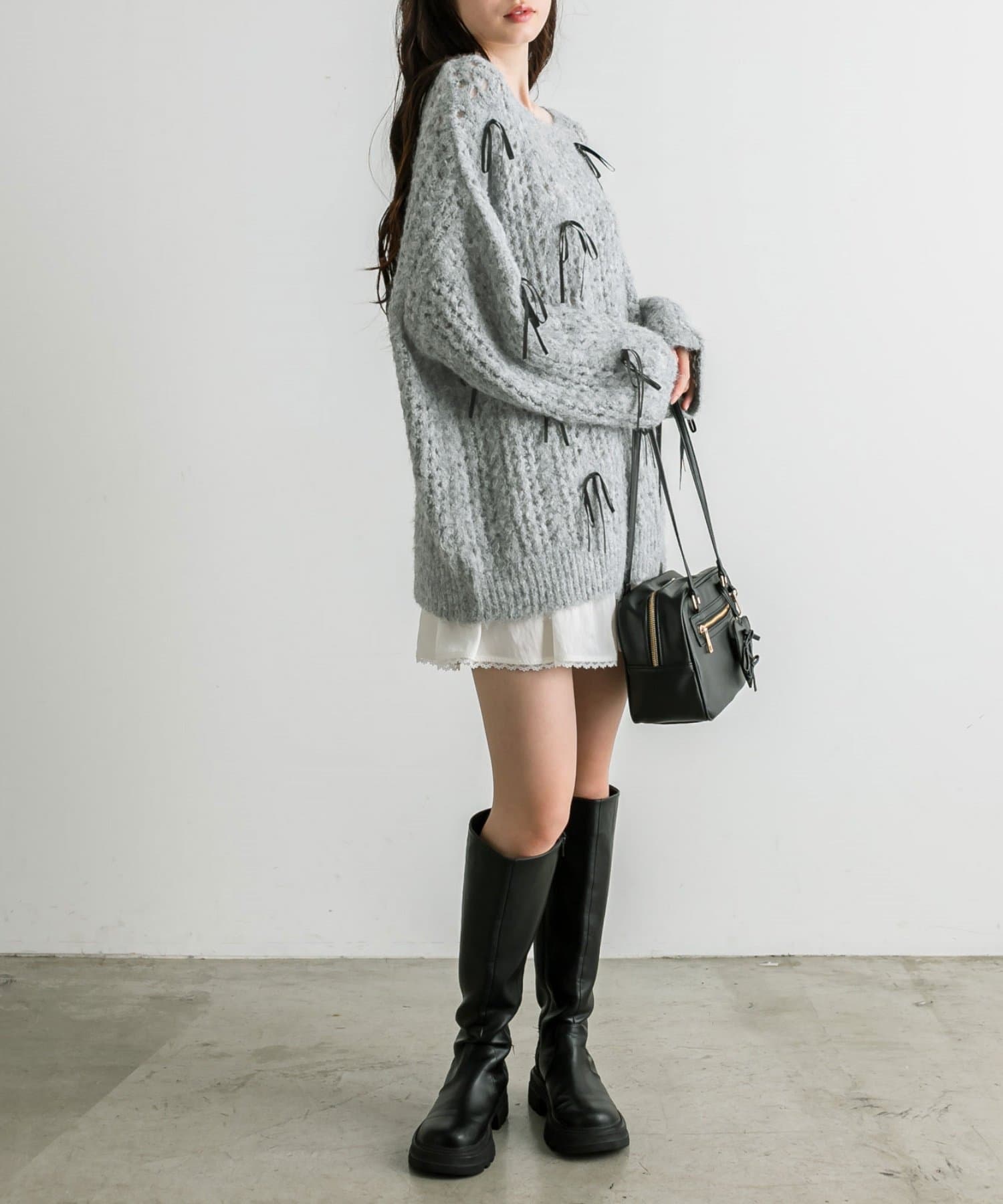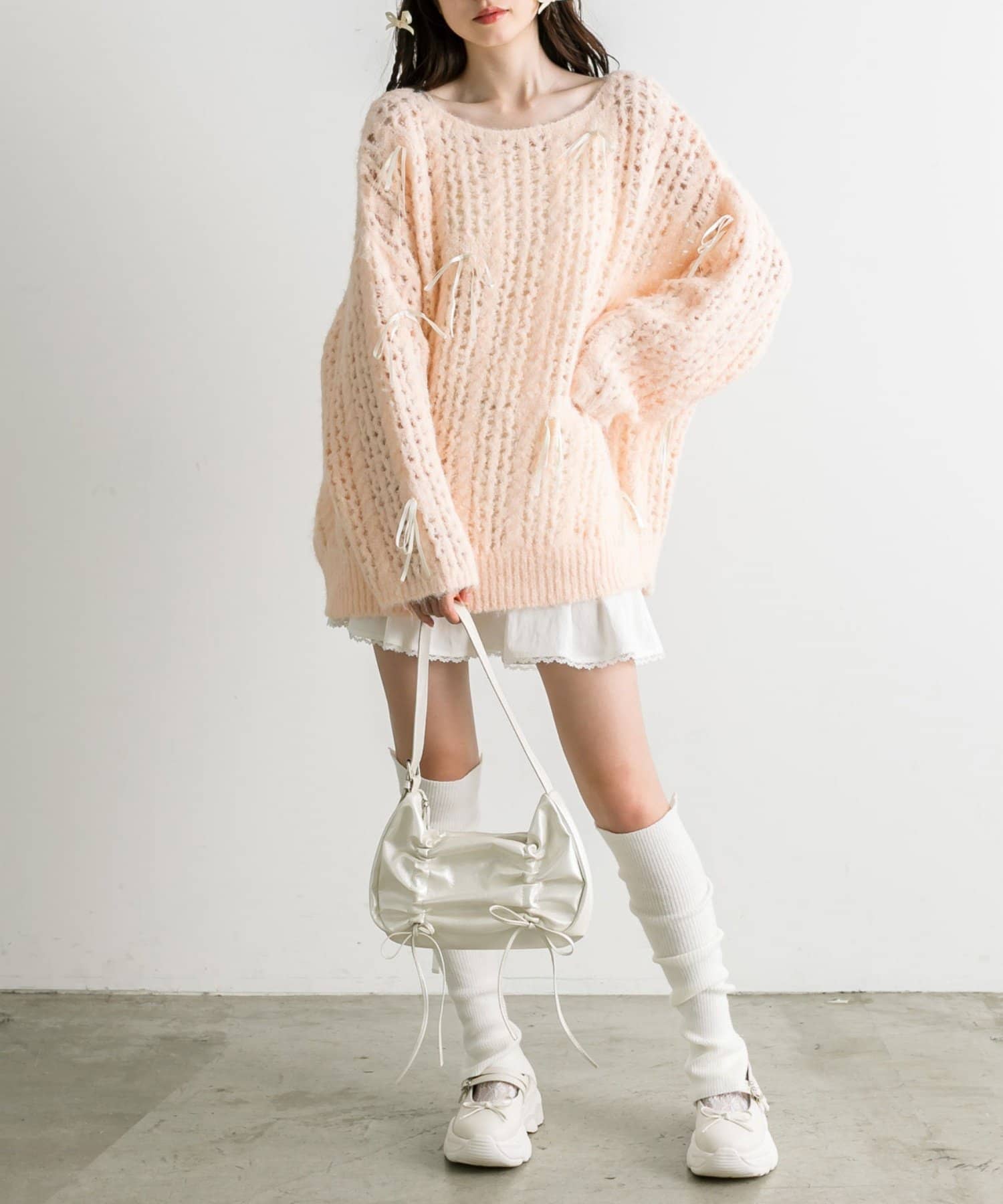 ・リボンがたくさんついたデザインで、カジュアルにもガーリーにも合わせやすいです。