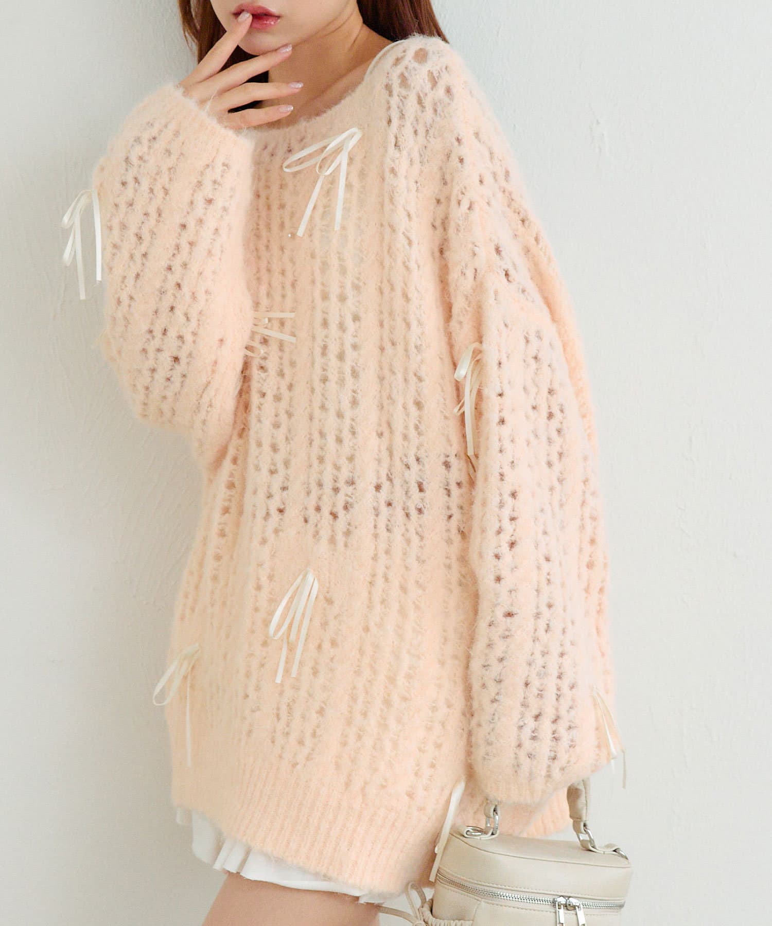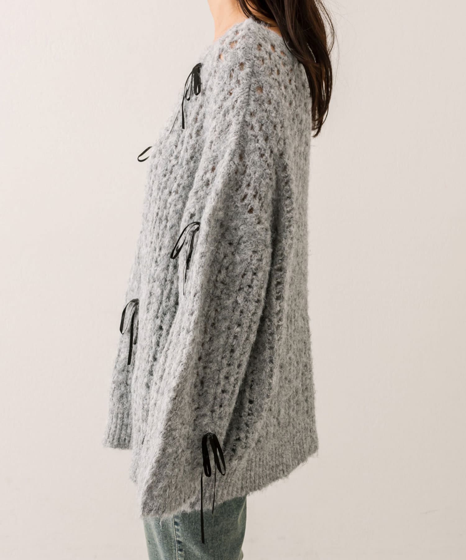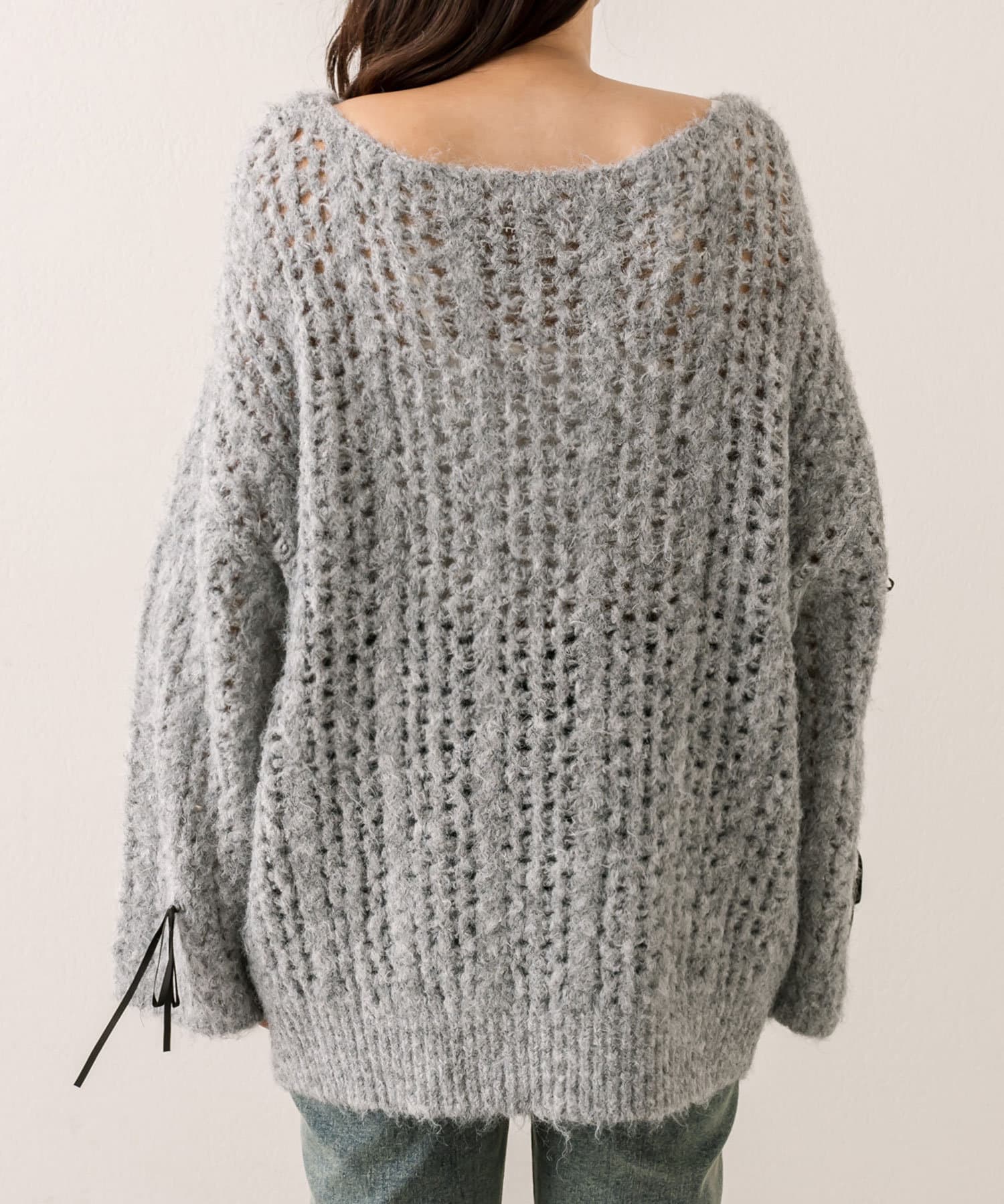 ・ざっくりとした網目の程よい透け感がコーデに抜け感を与えてくれます。