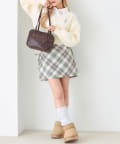 ・足元はハイソックスに厚底スニーカーやムートンブーツを合わせると今っぽい着こなしに。