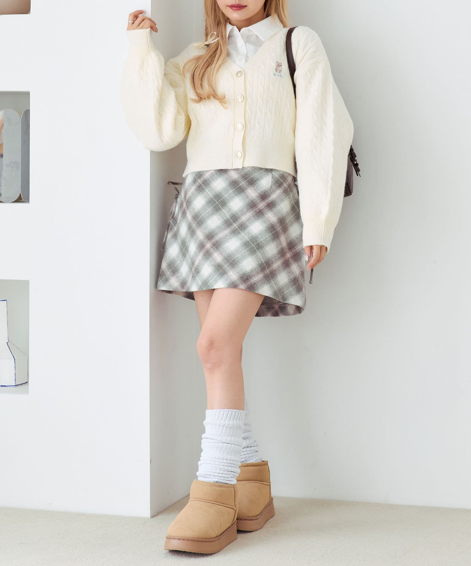 ・ミニスカートを合わせて韓国ガーリーなコーデがおすすめ。