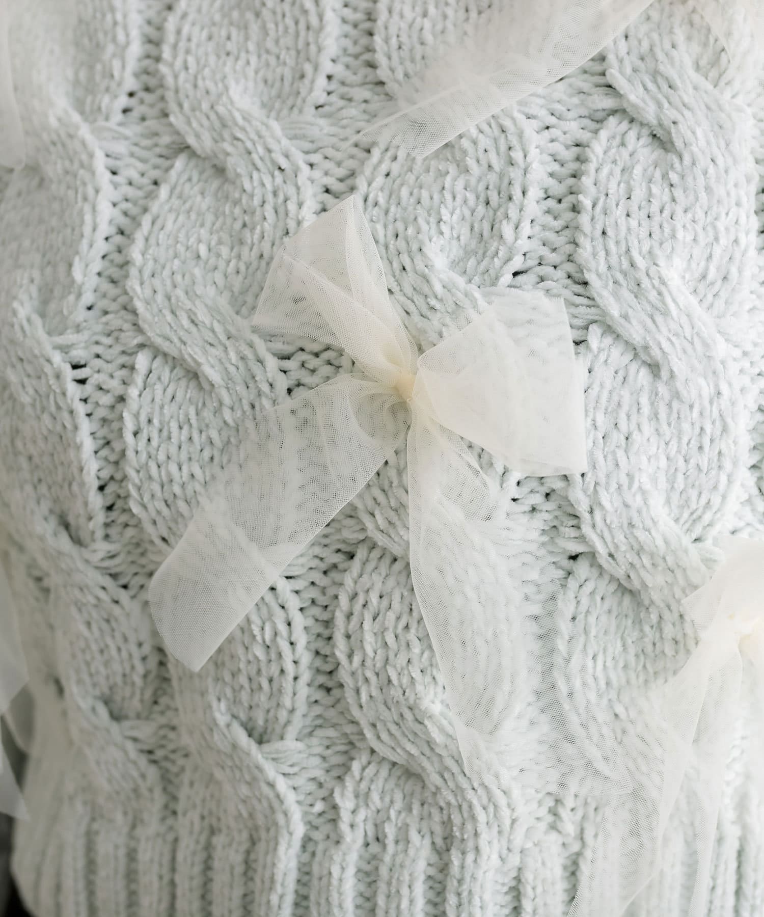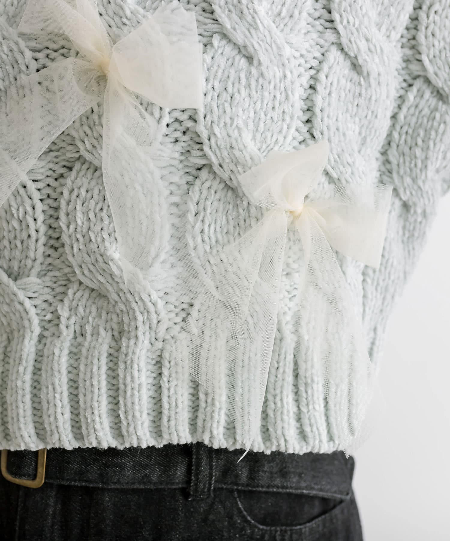 ・チュールのリボンがポイントで、女性らしい雰囲気を演出します。