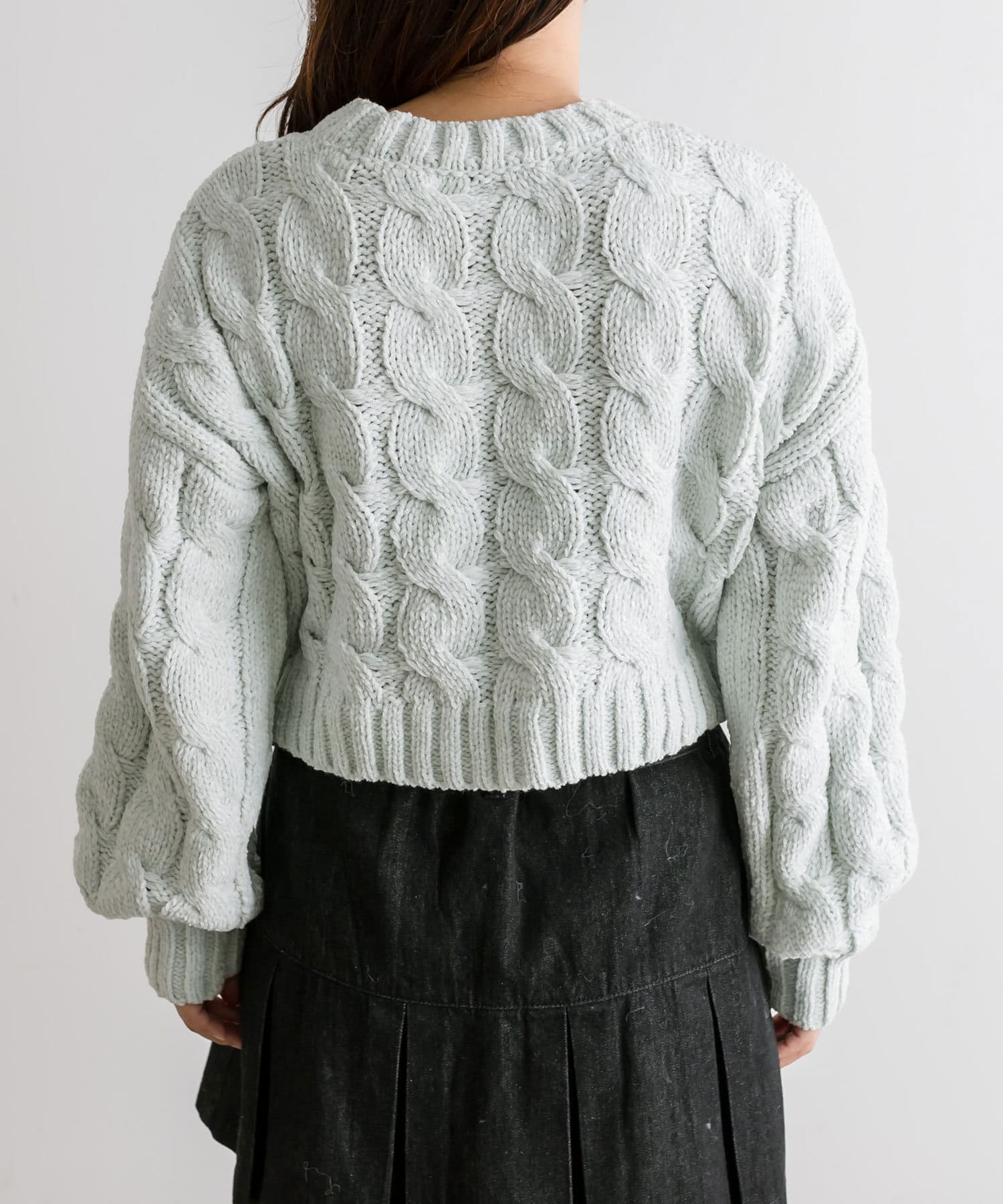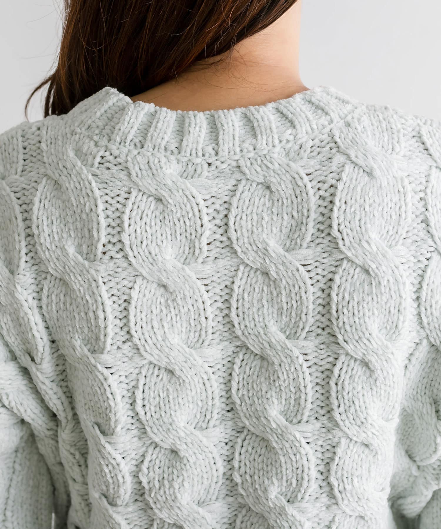 ・暖かみのあるケーブル編みで、もちもちとした触り心地です。