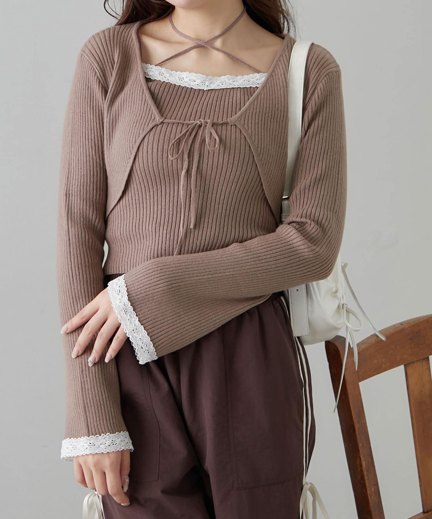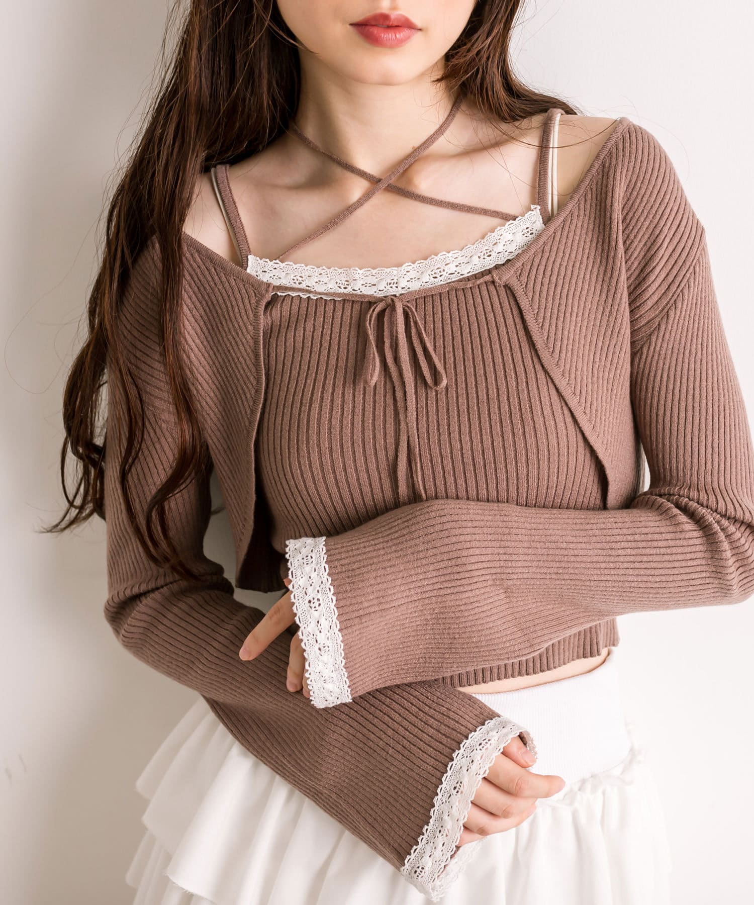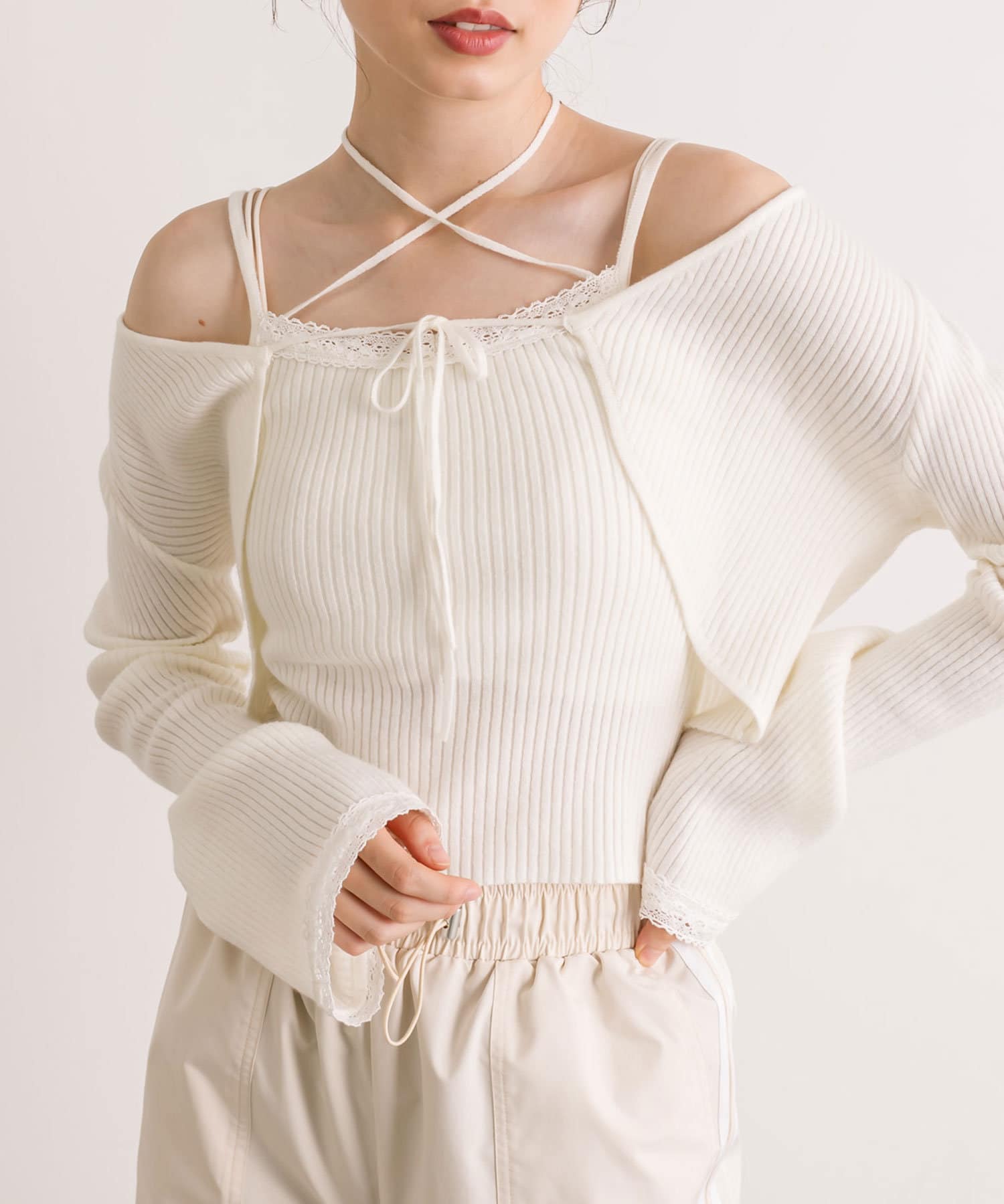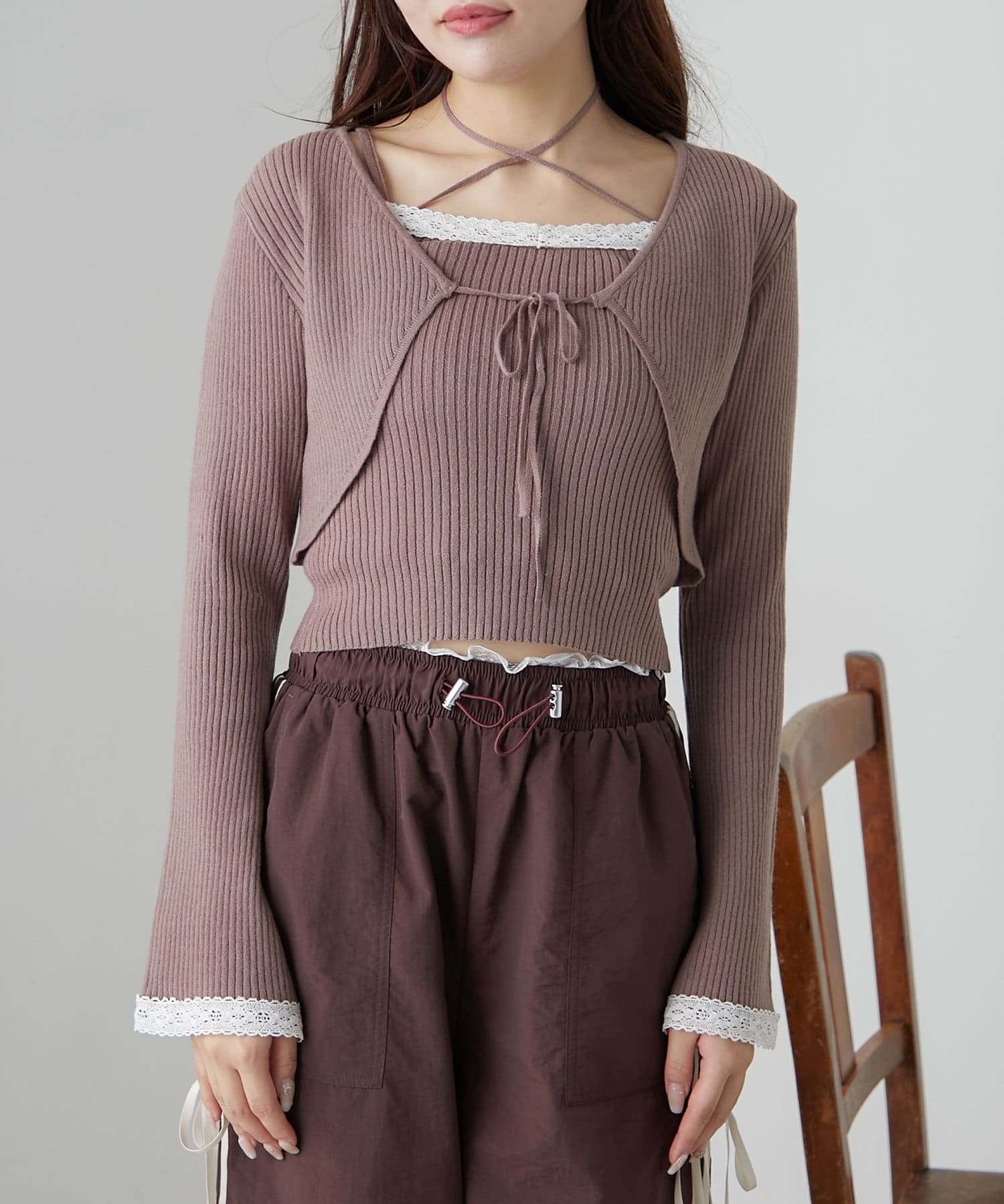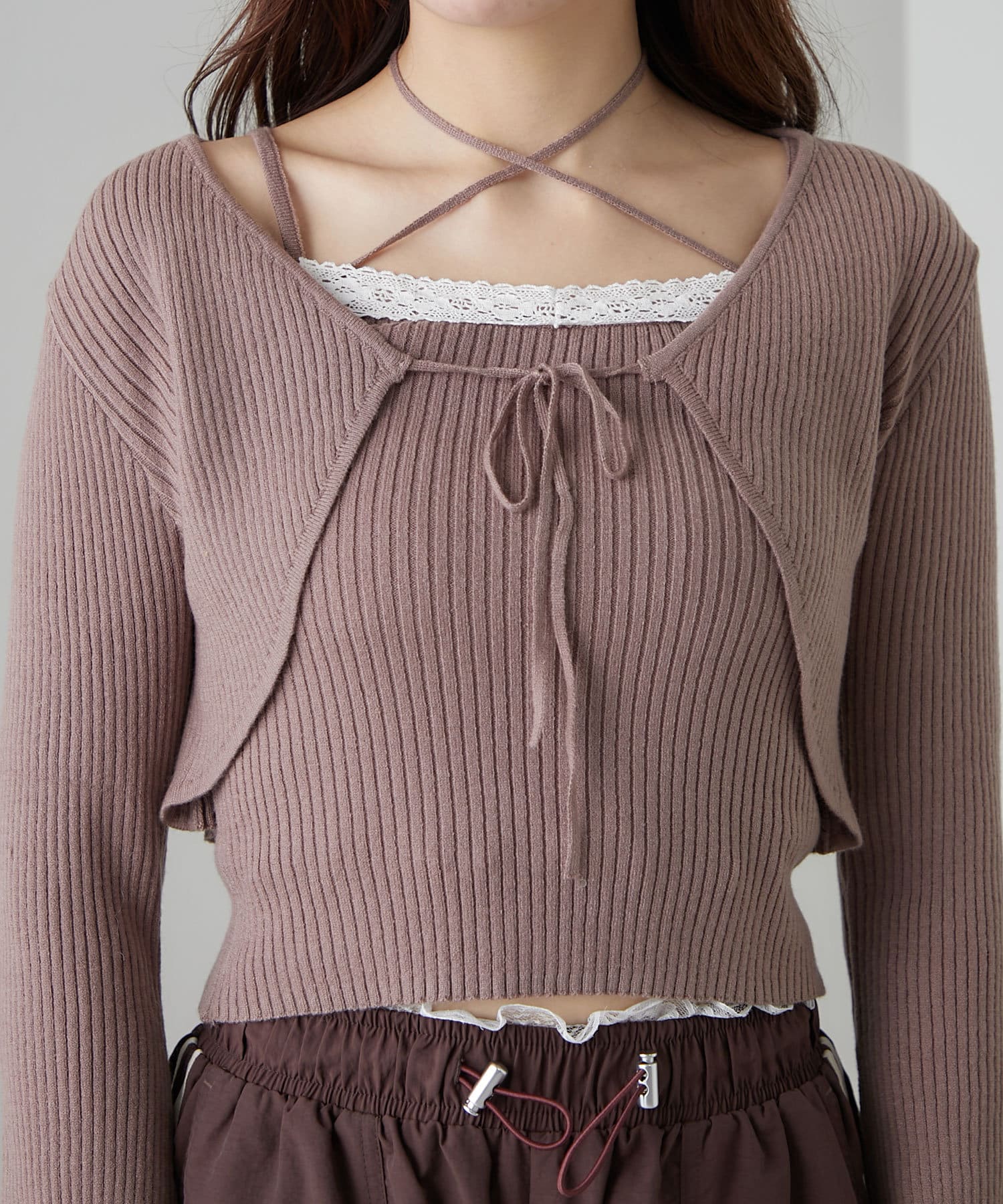 ・レースがポイントのボレロとキャミインナーがセットになったアイテム。