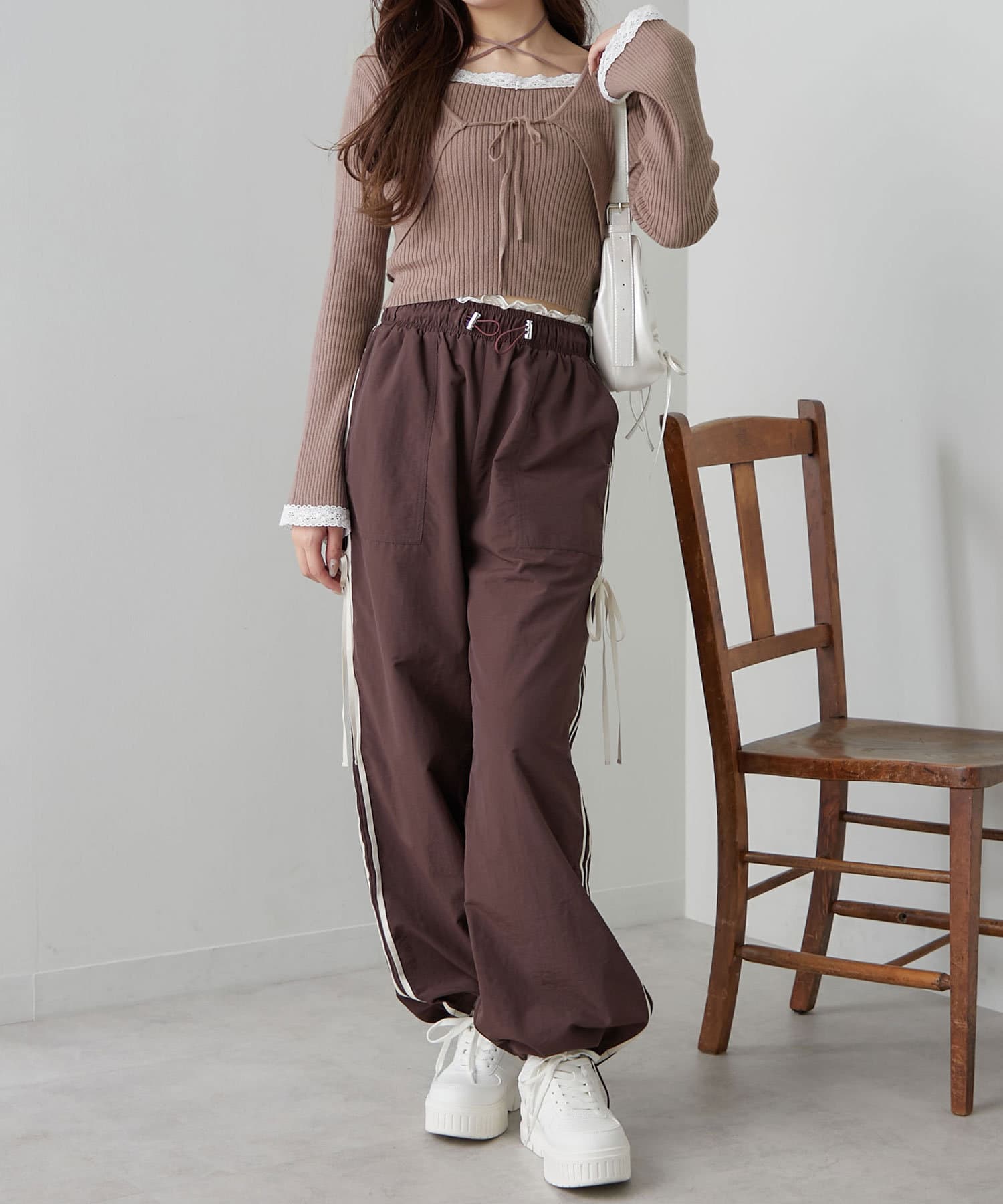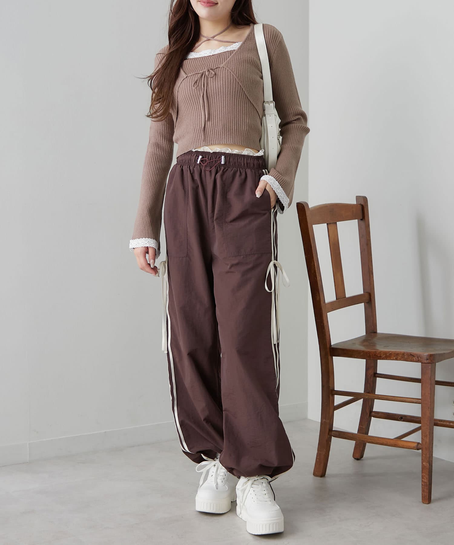 ・スウェットパンツやカーゴパンツを合わせると韓国っぽカジュアルガーリーな今っぽい着こなしに。