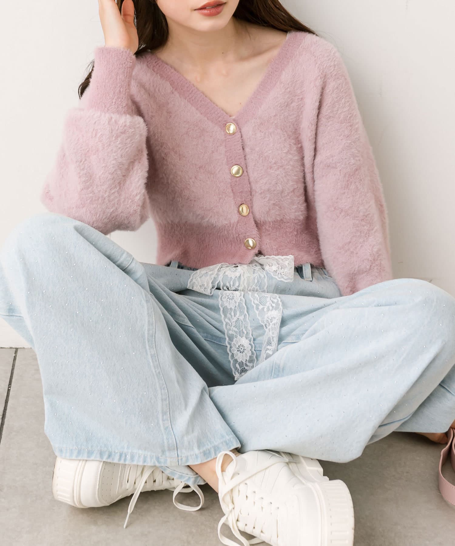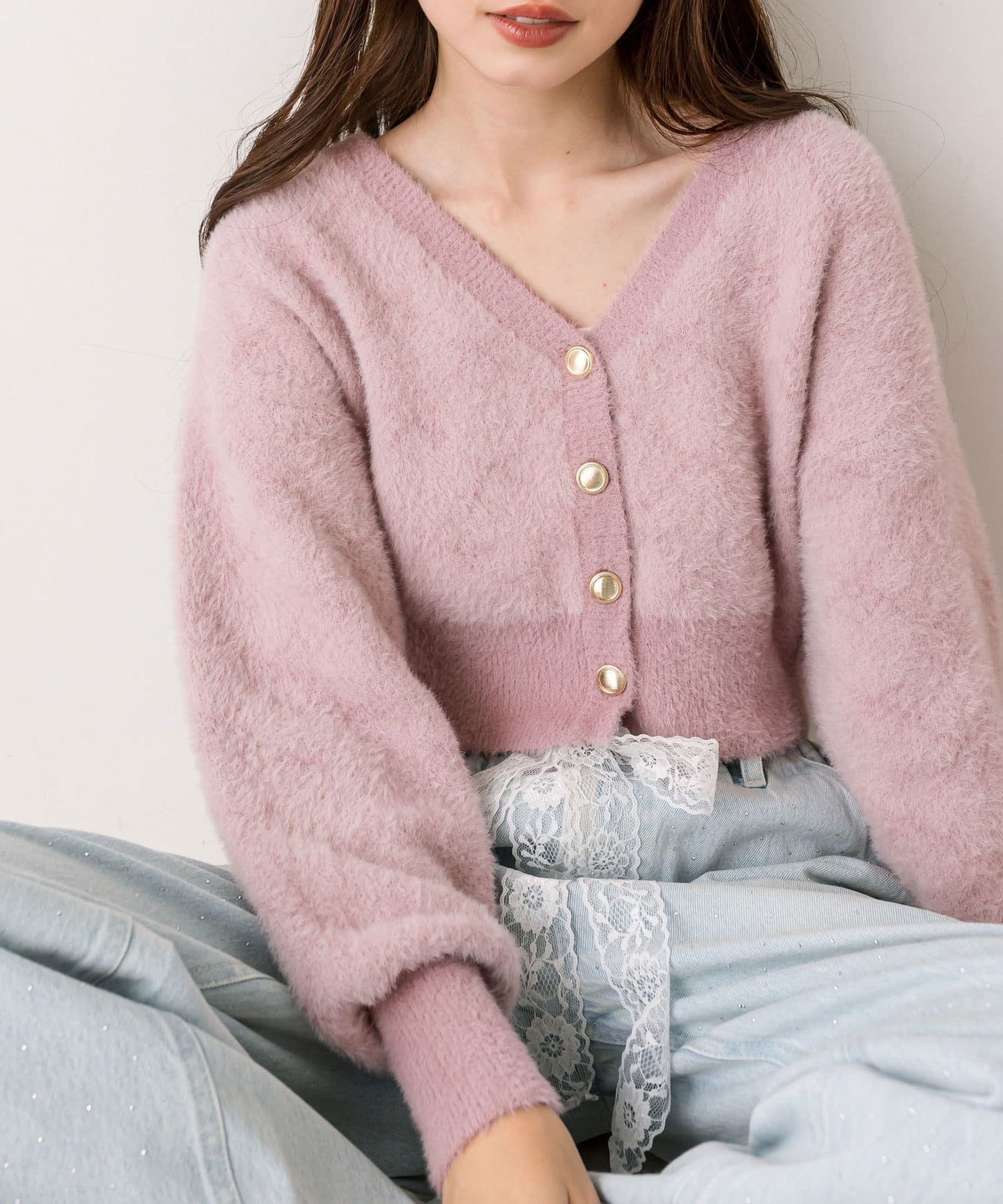 ・柔らかく肌触りのいいニットで、女性らしい印象のカーディガン。