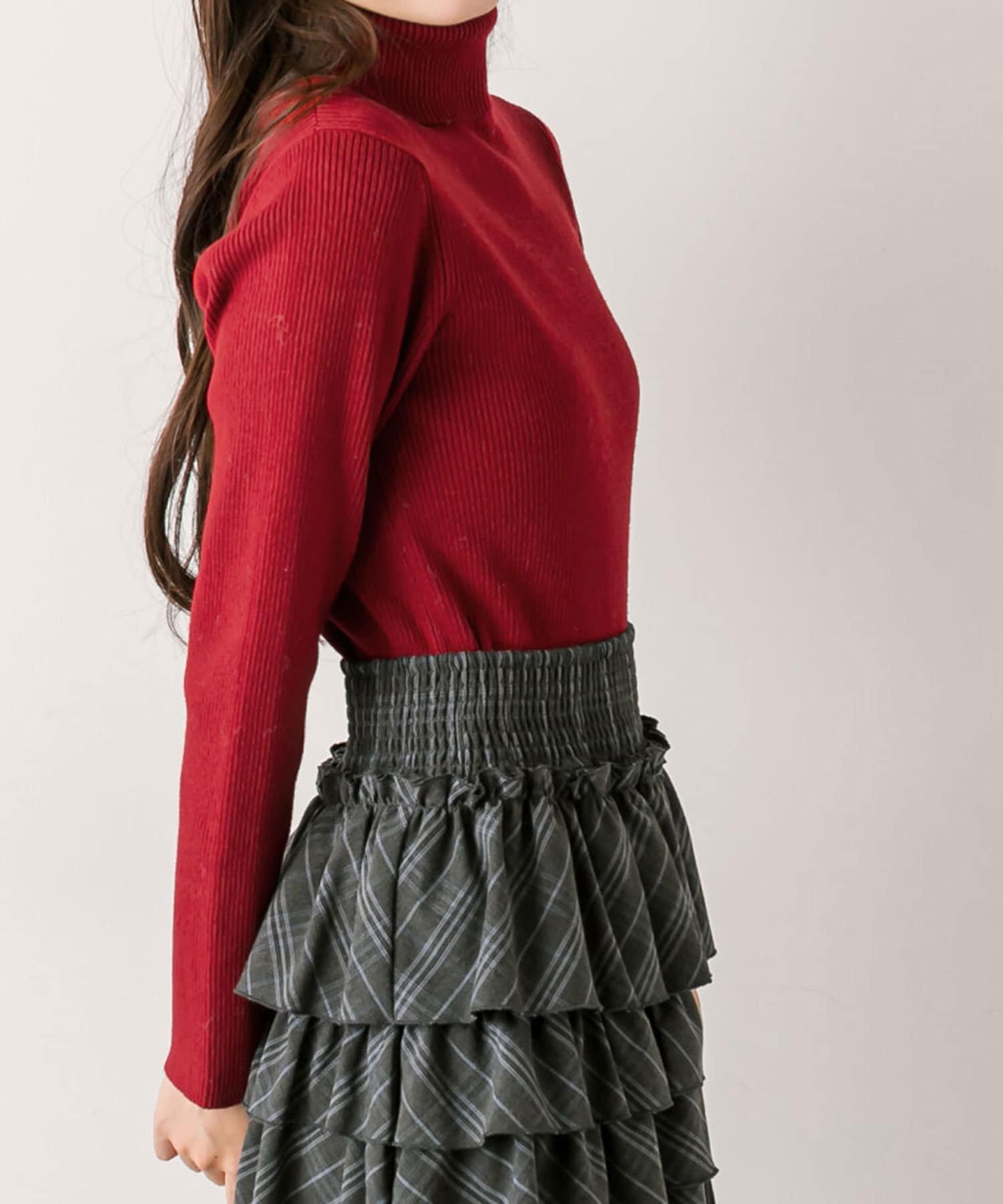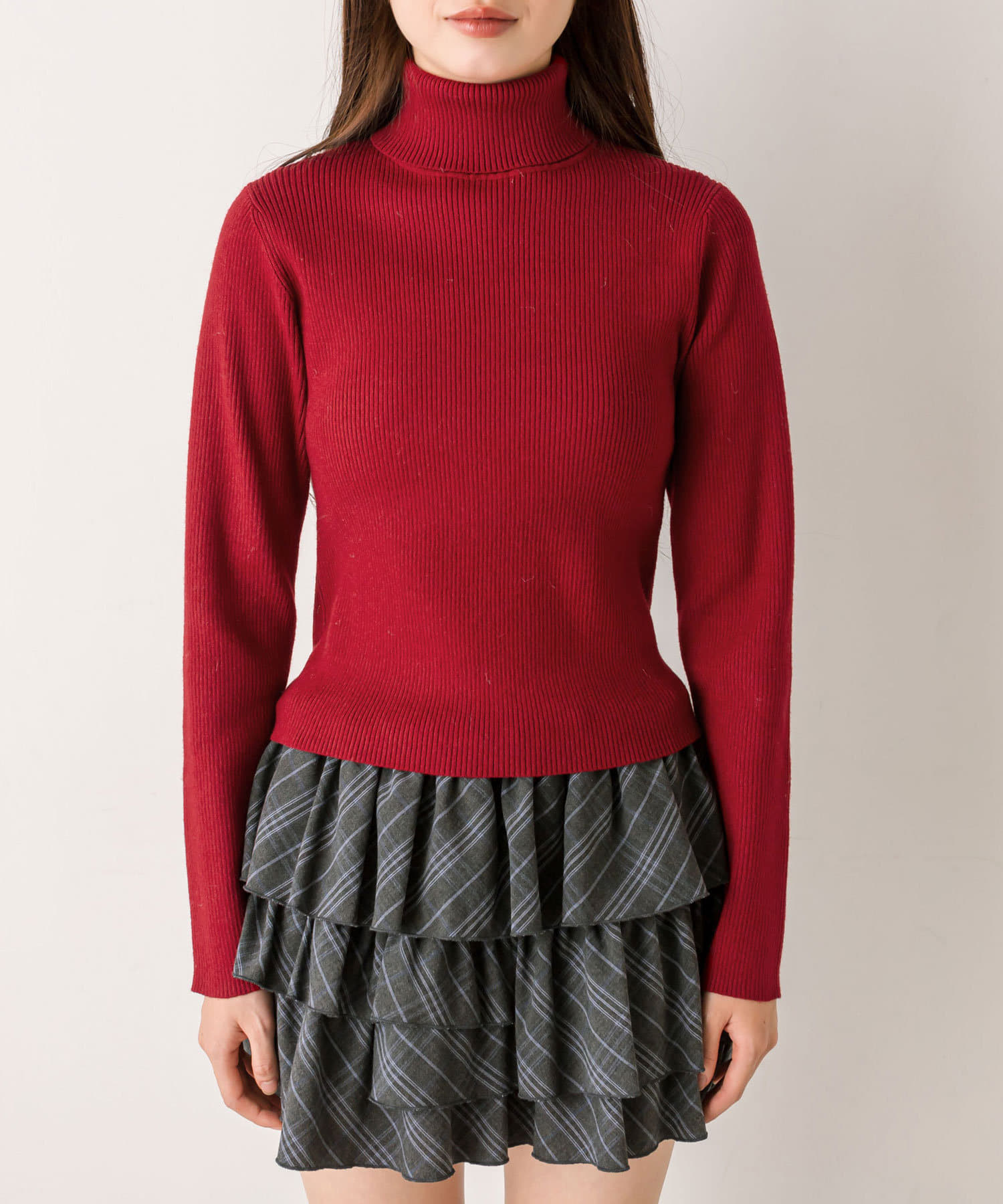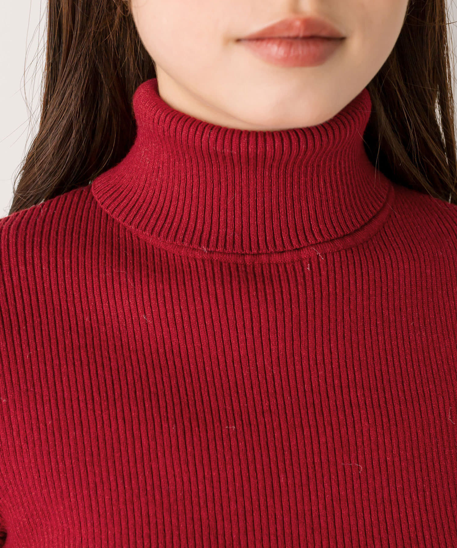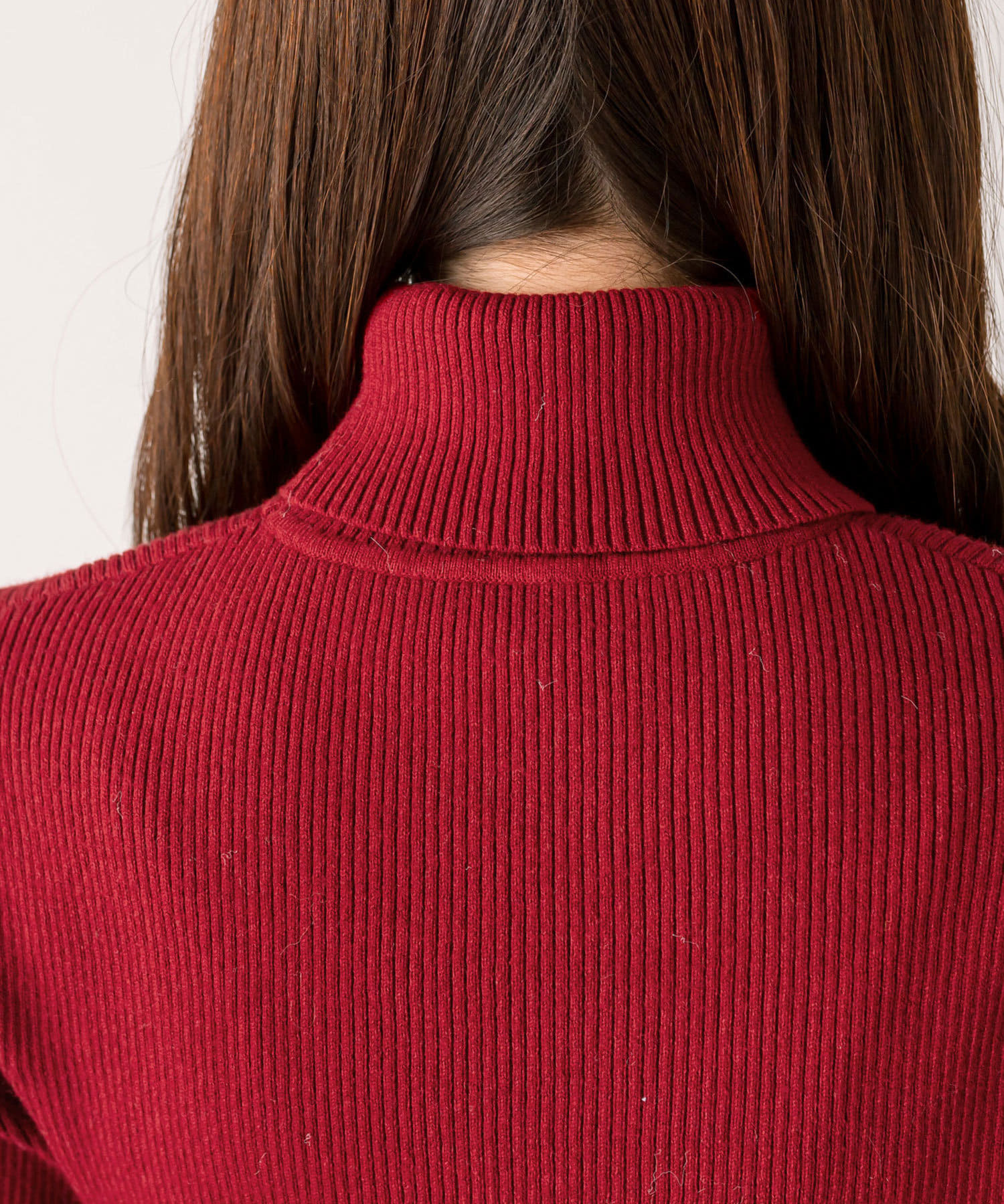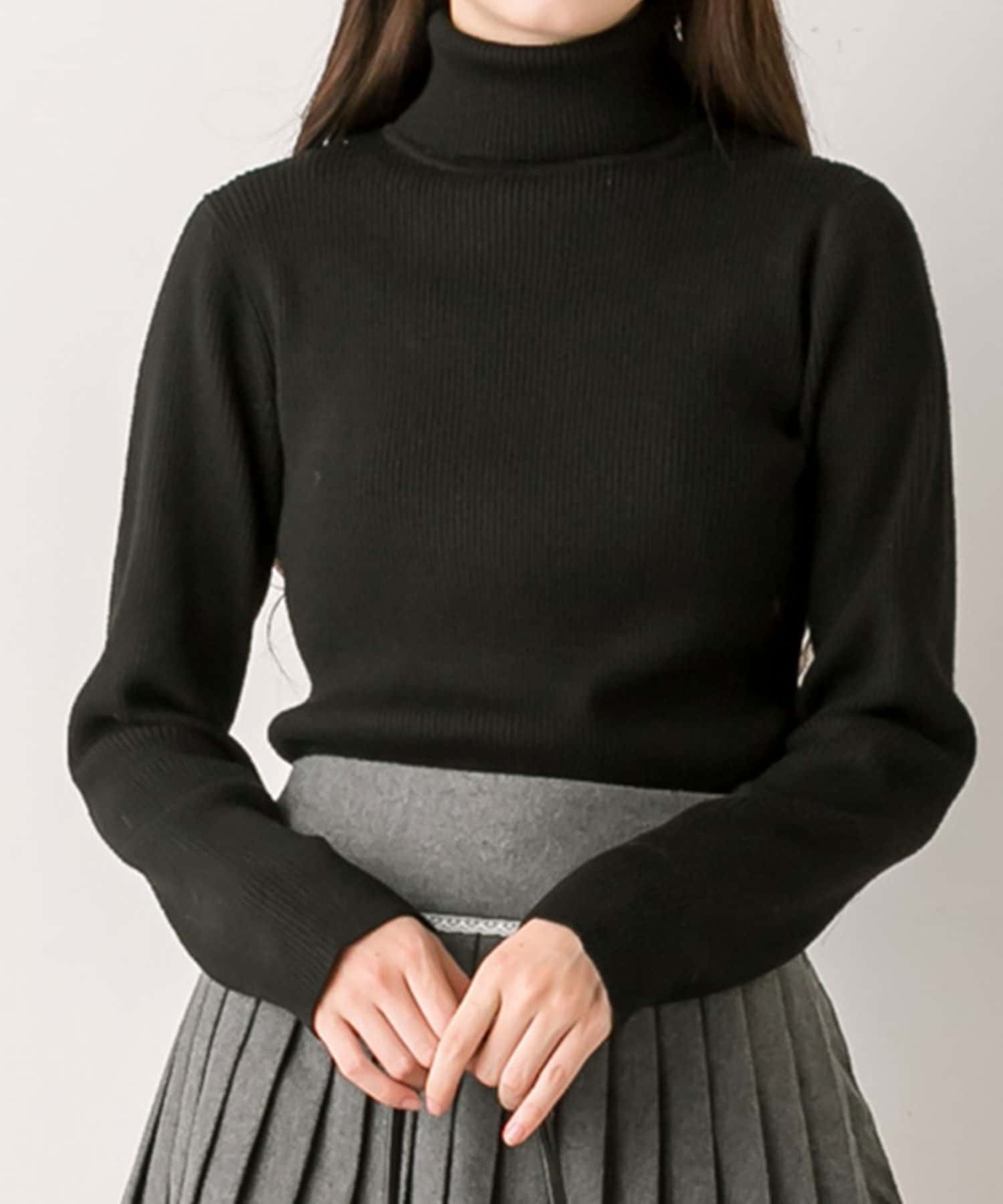 ・シンプルなリブタートルで幅広いコーデに活躍するニット。