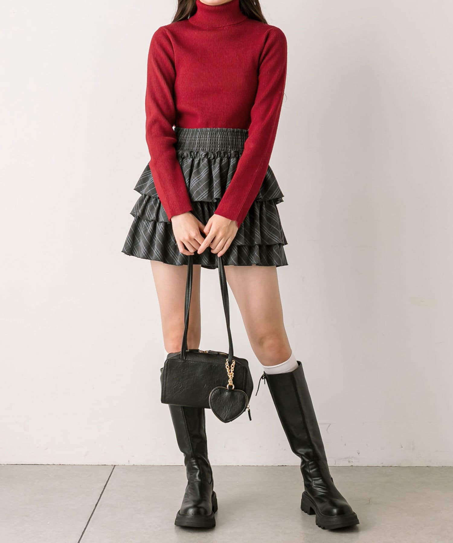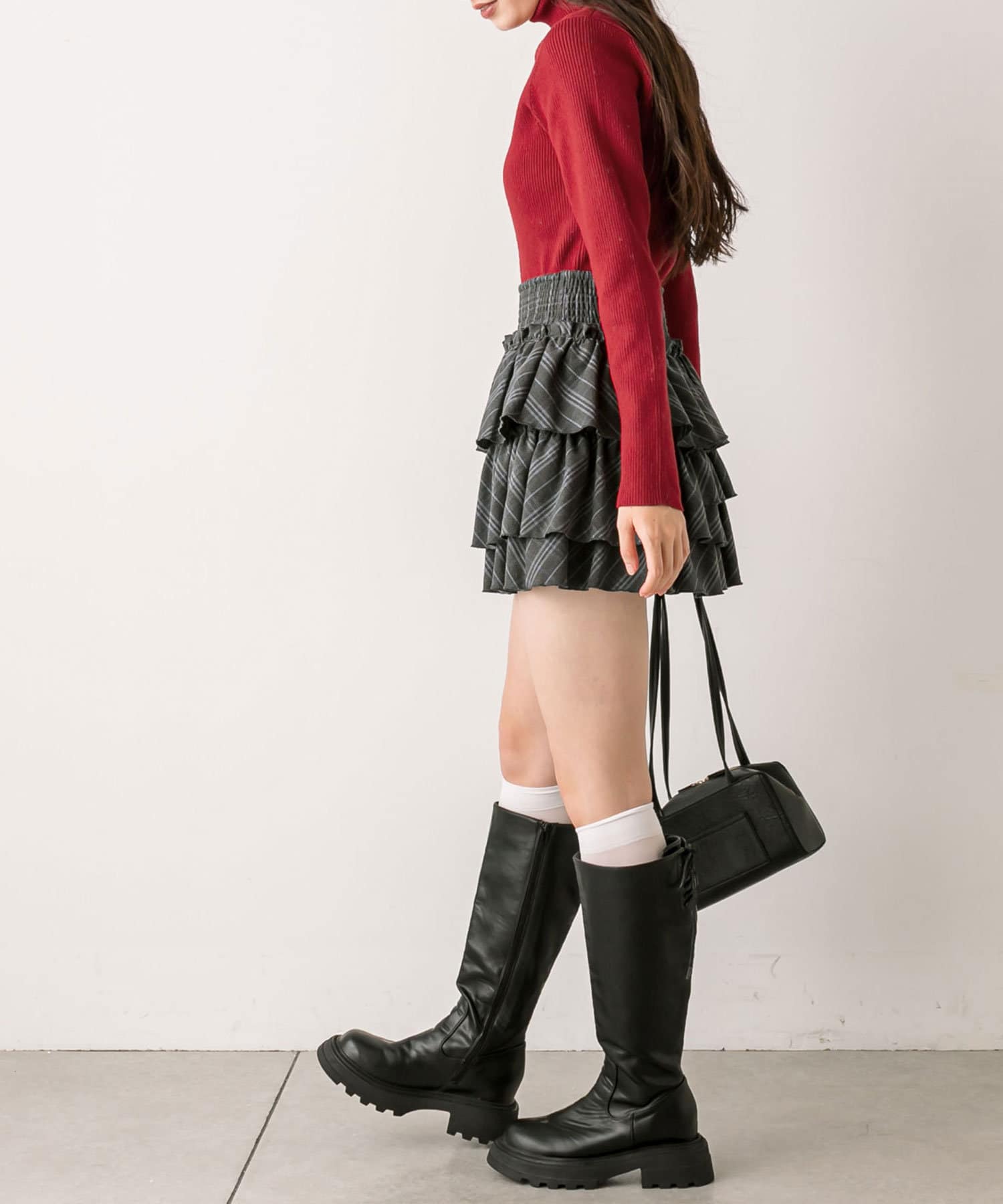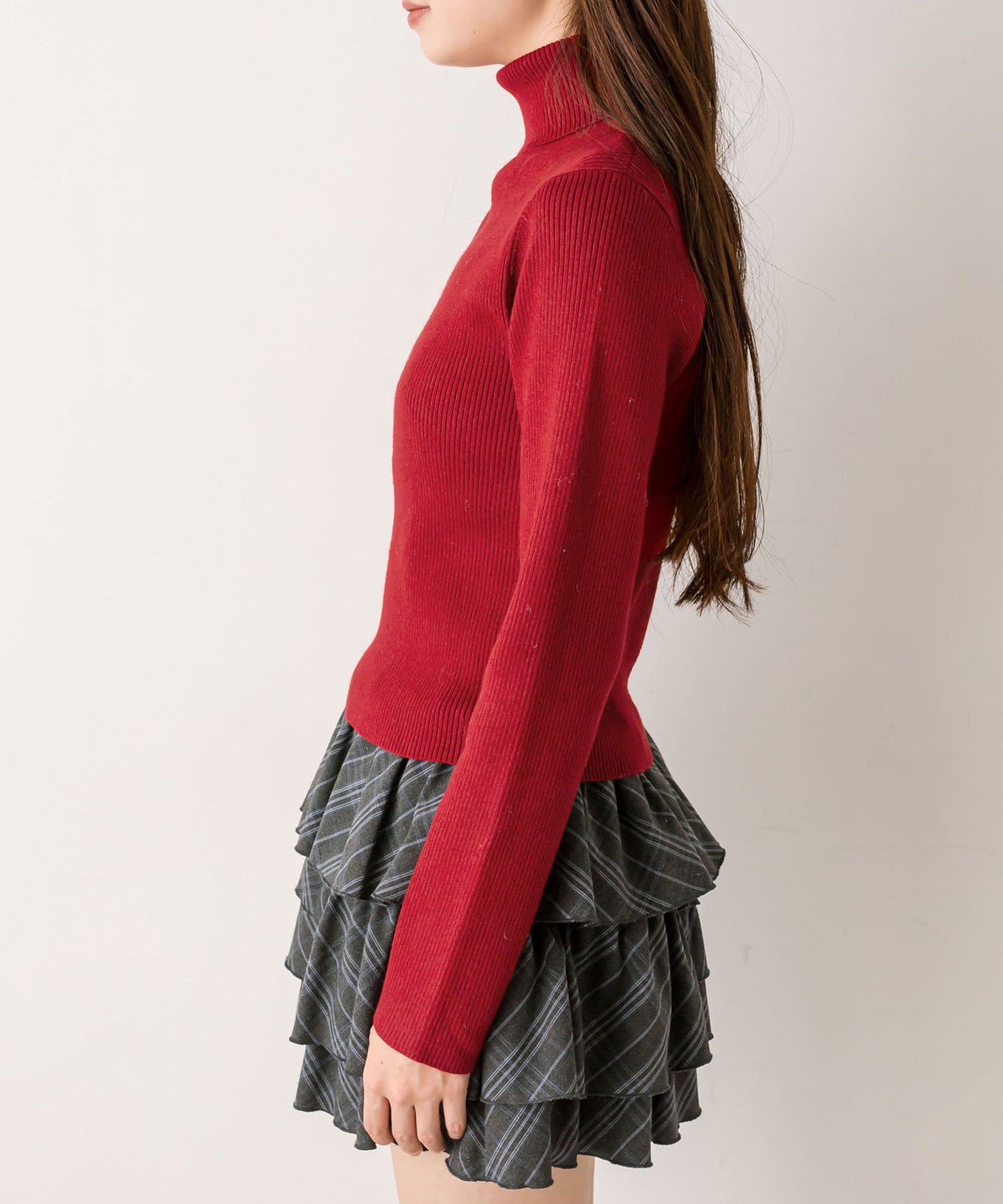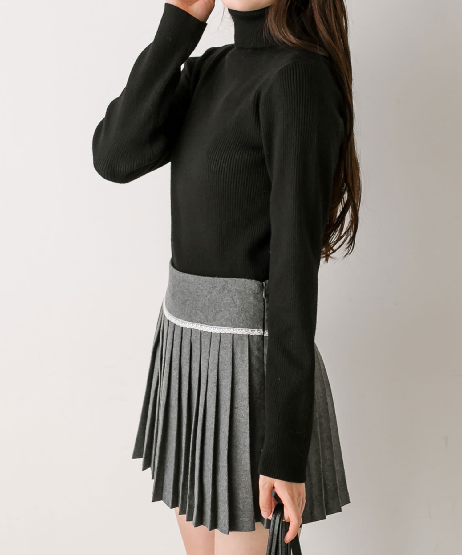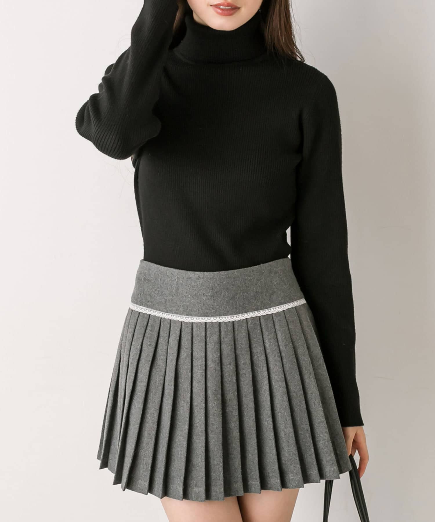 ・シンプルなリブタートルで幅広いコーデに活躍するニット。
