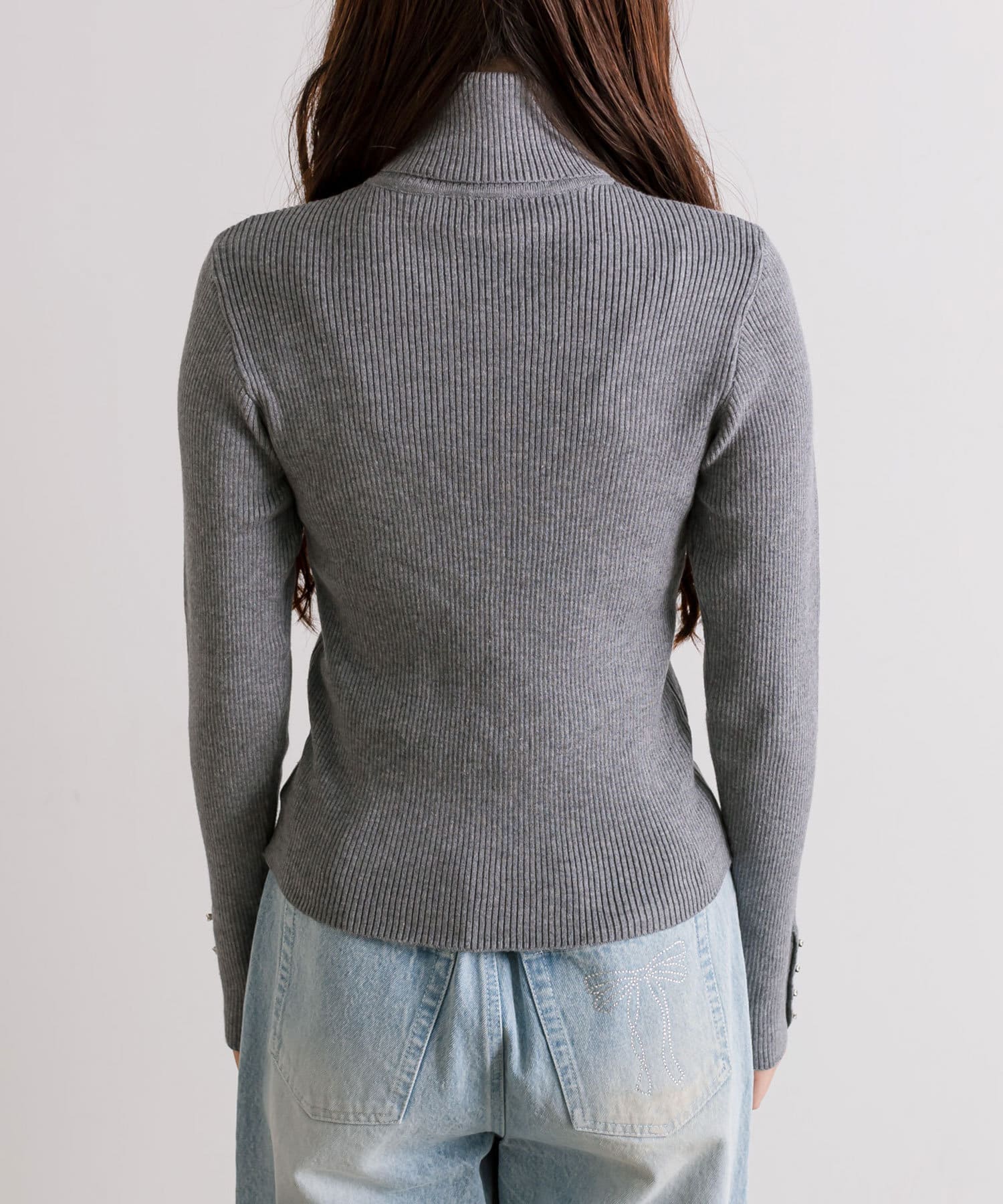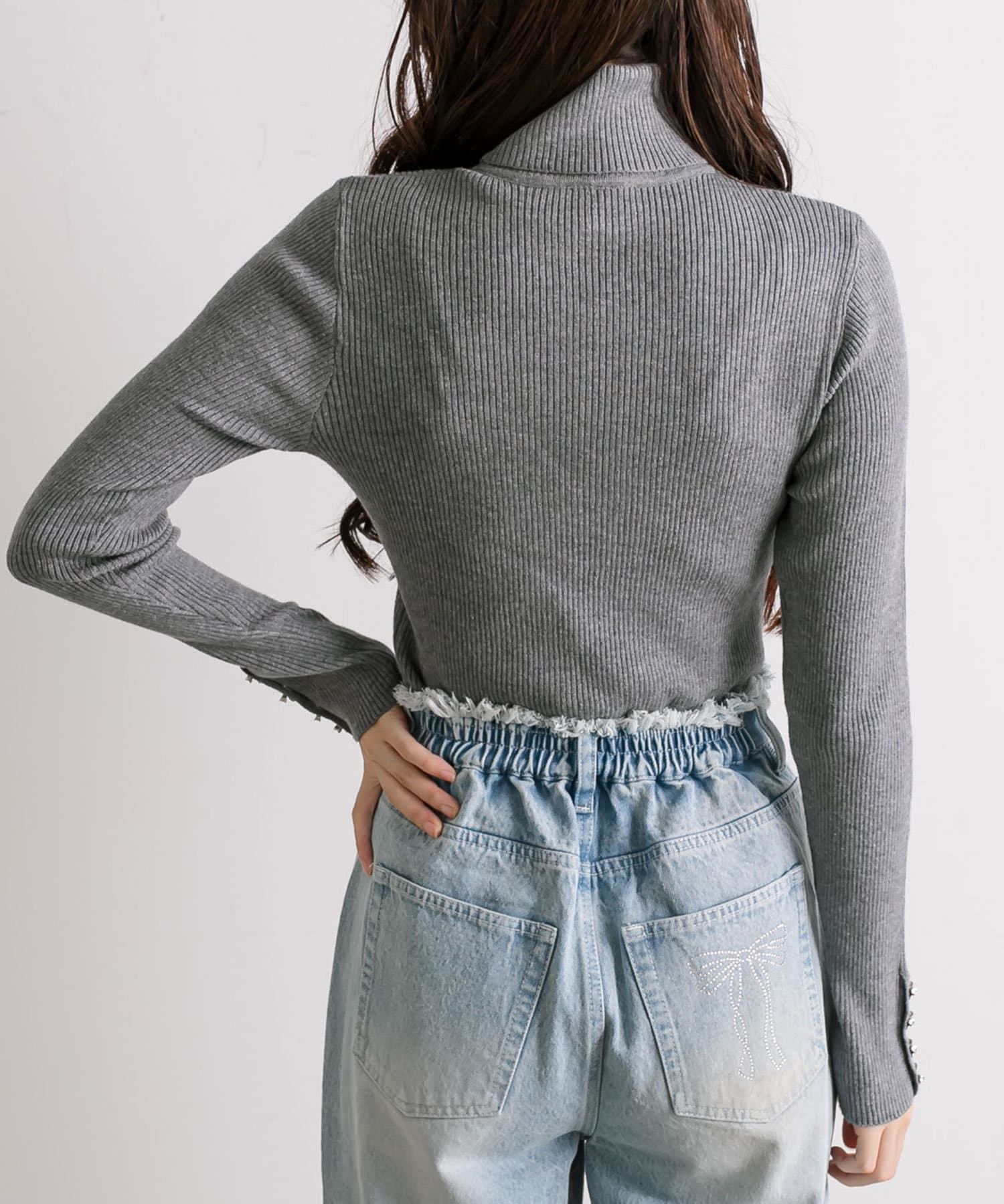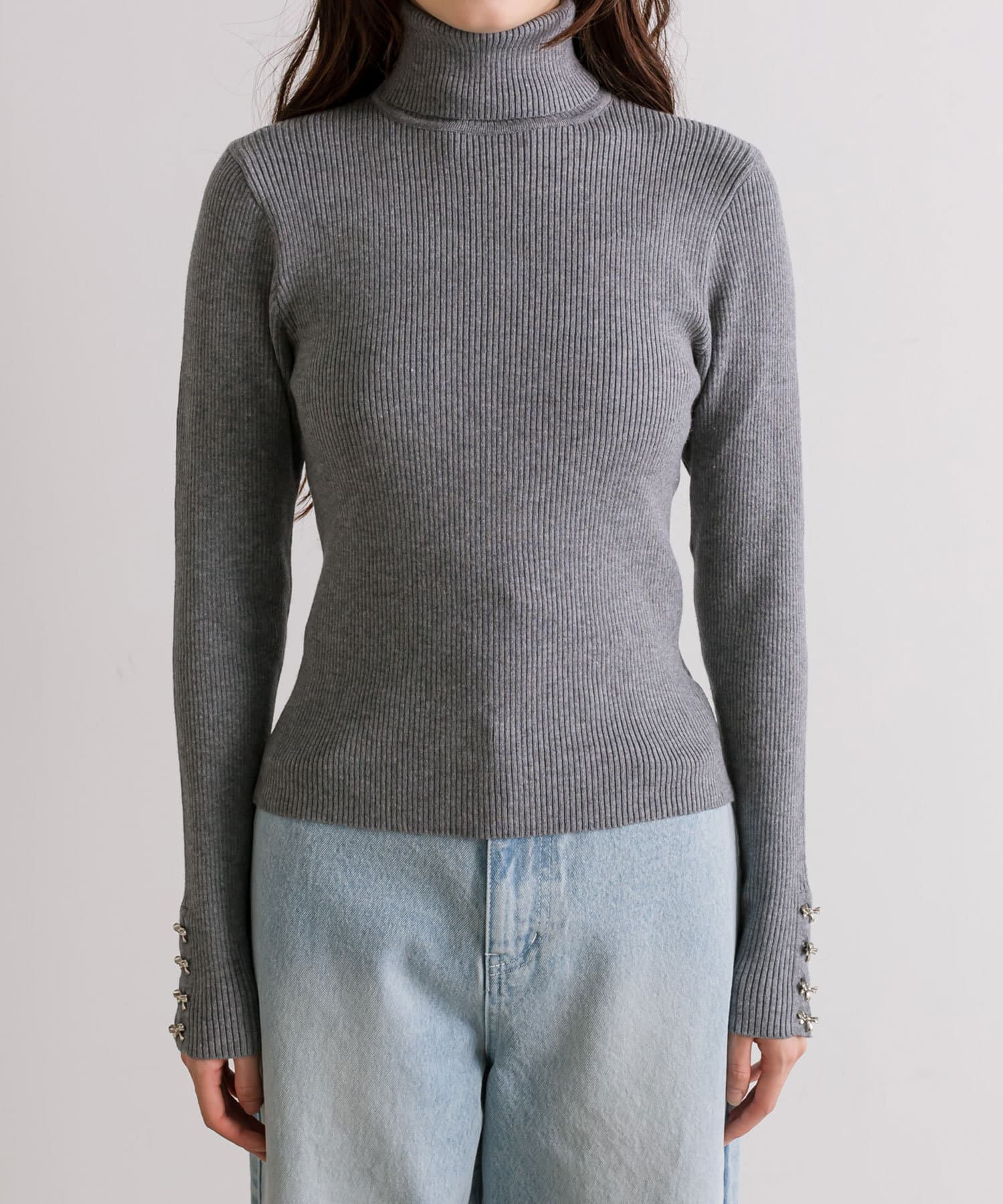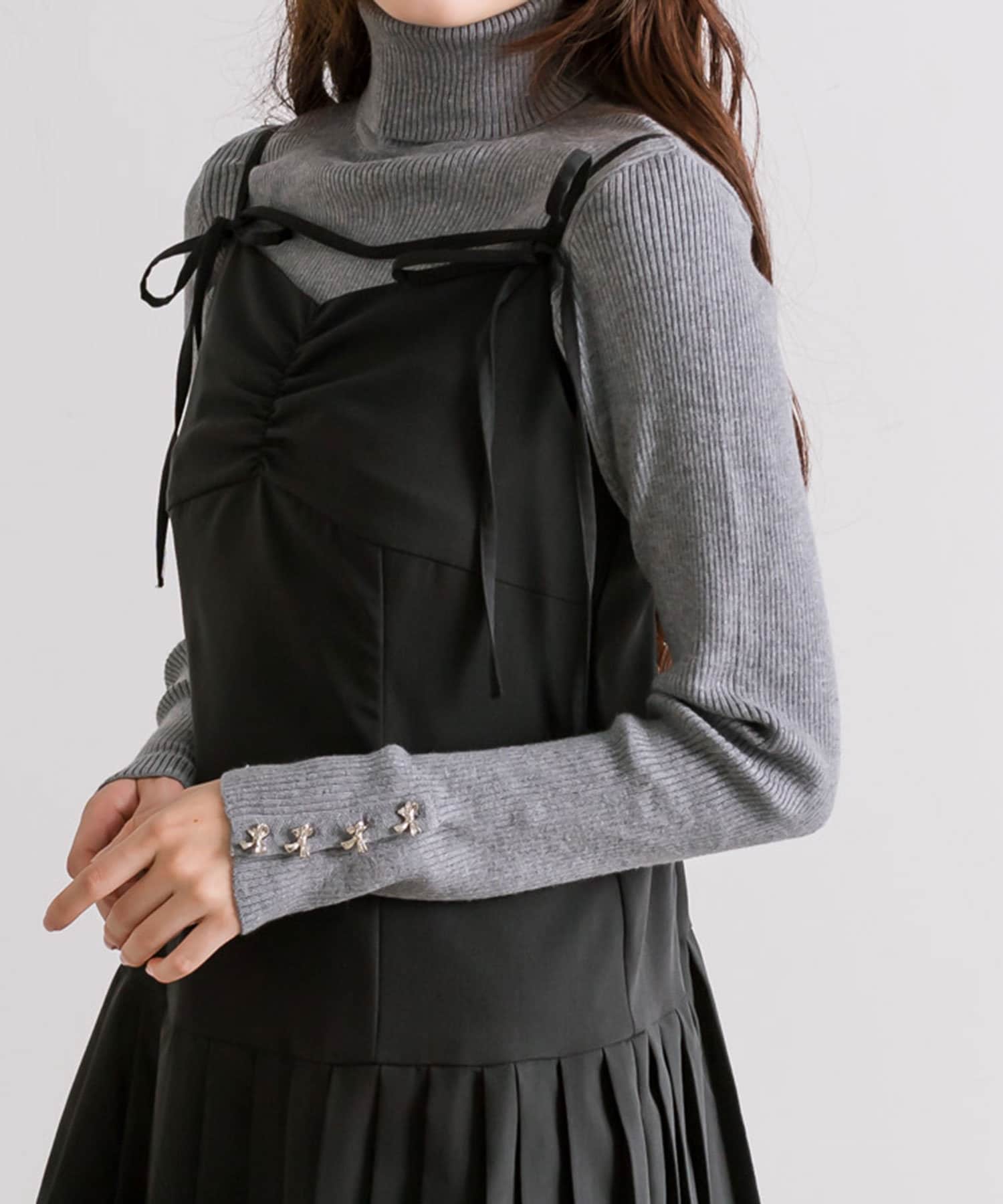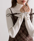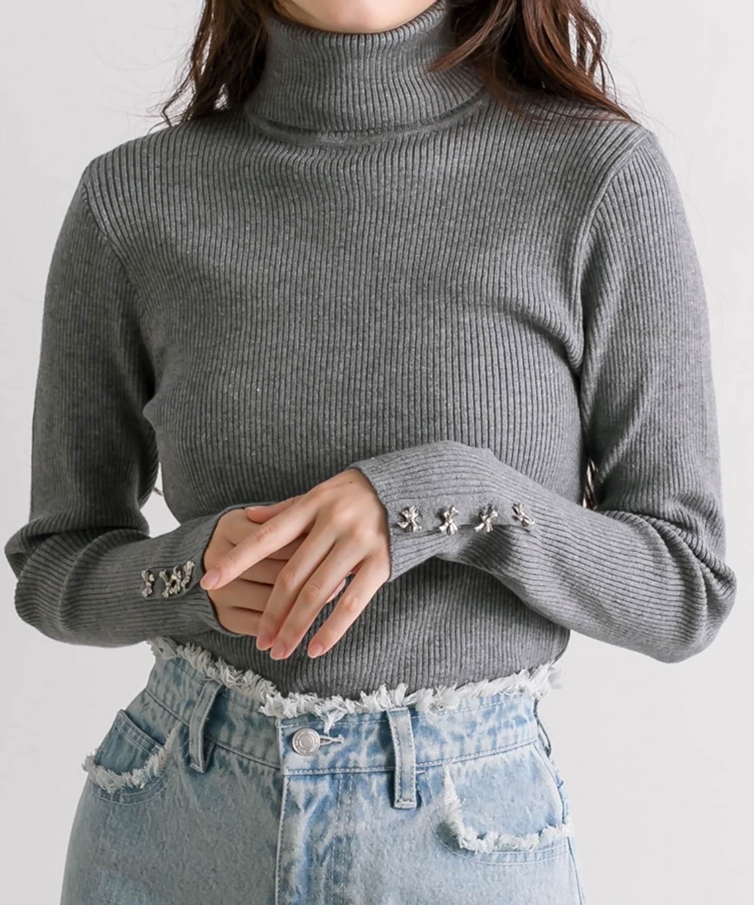 ・シンプルな無地にリボンボタンがワンポイントでかわいいニット。