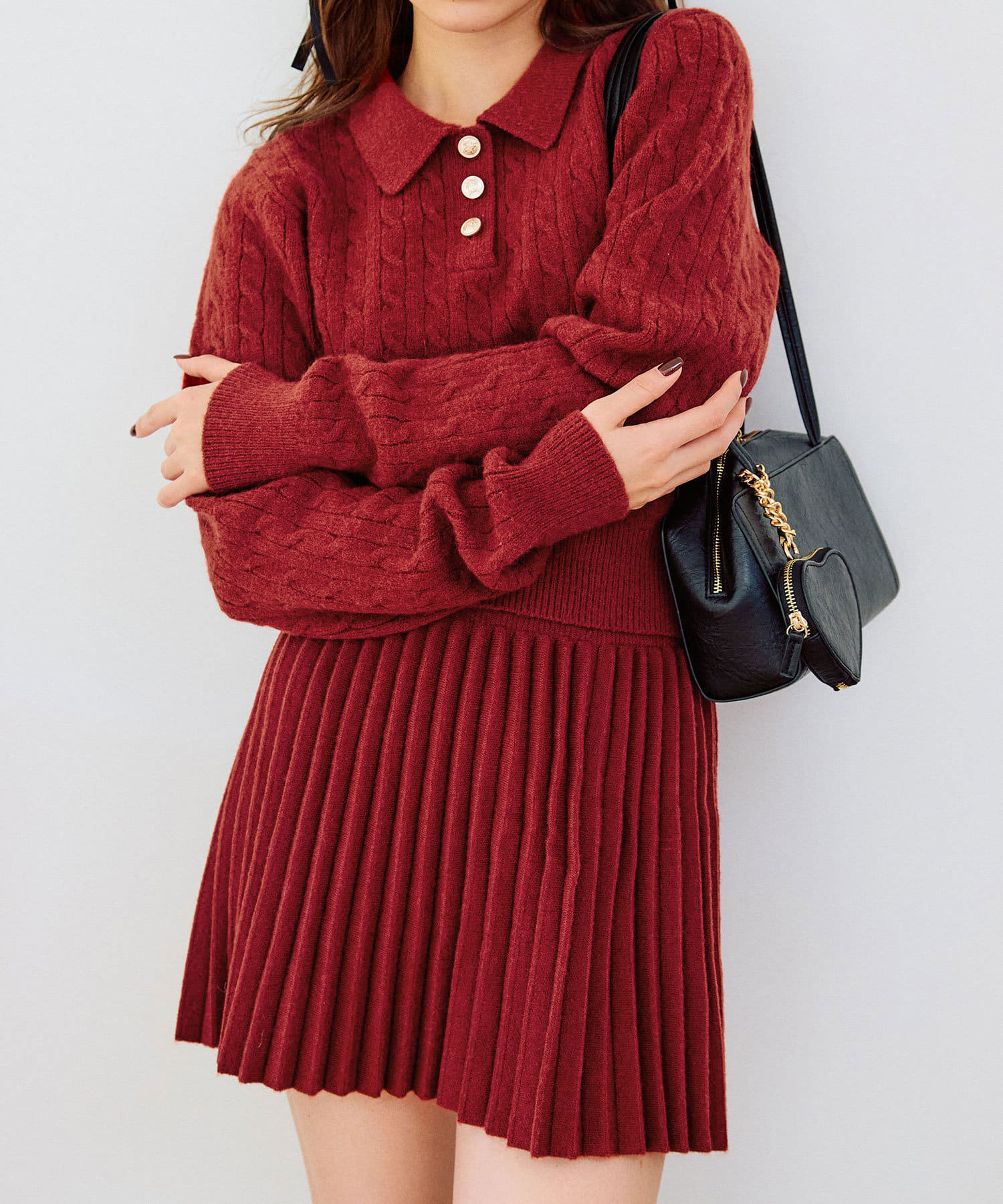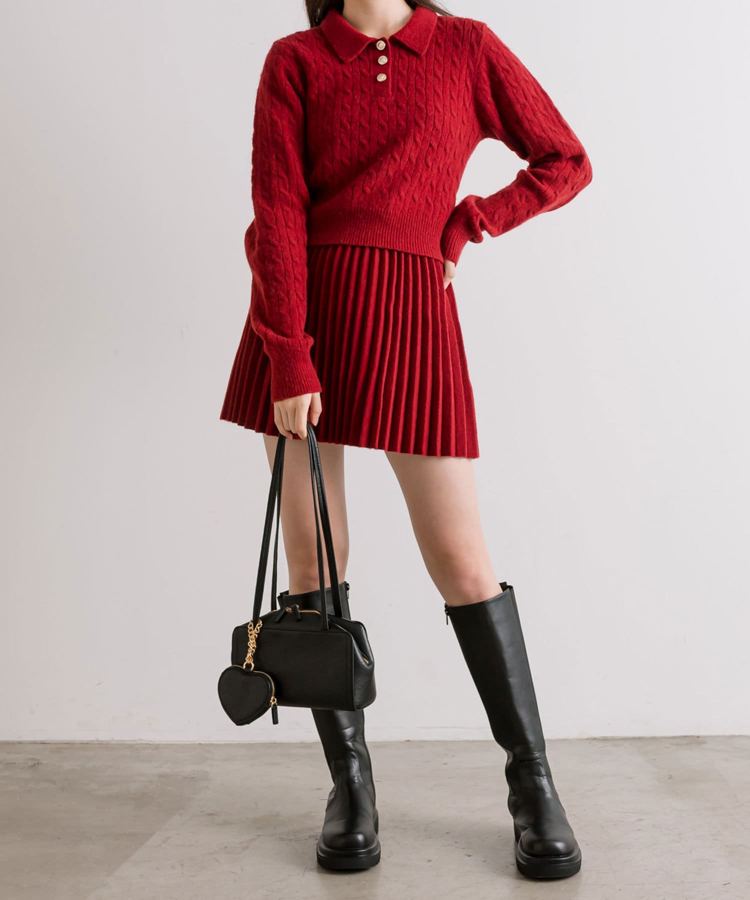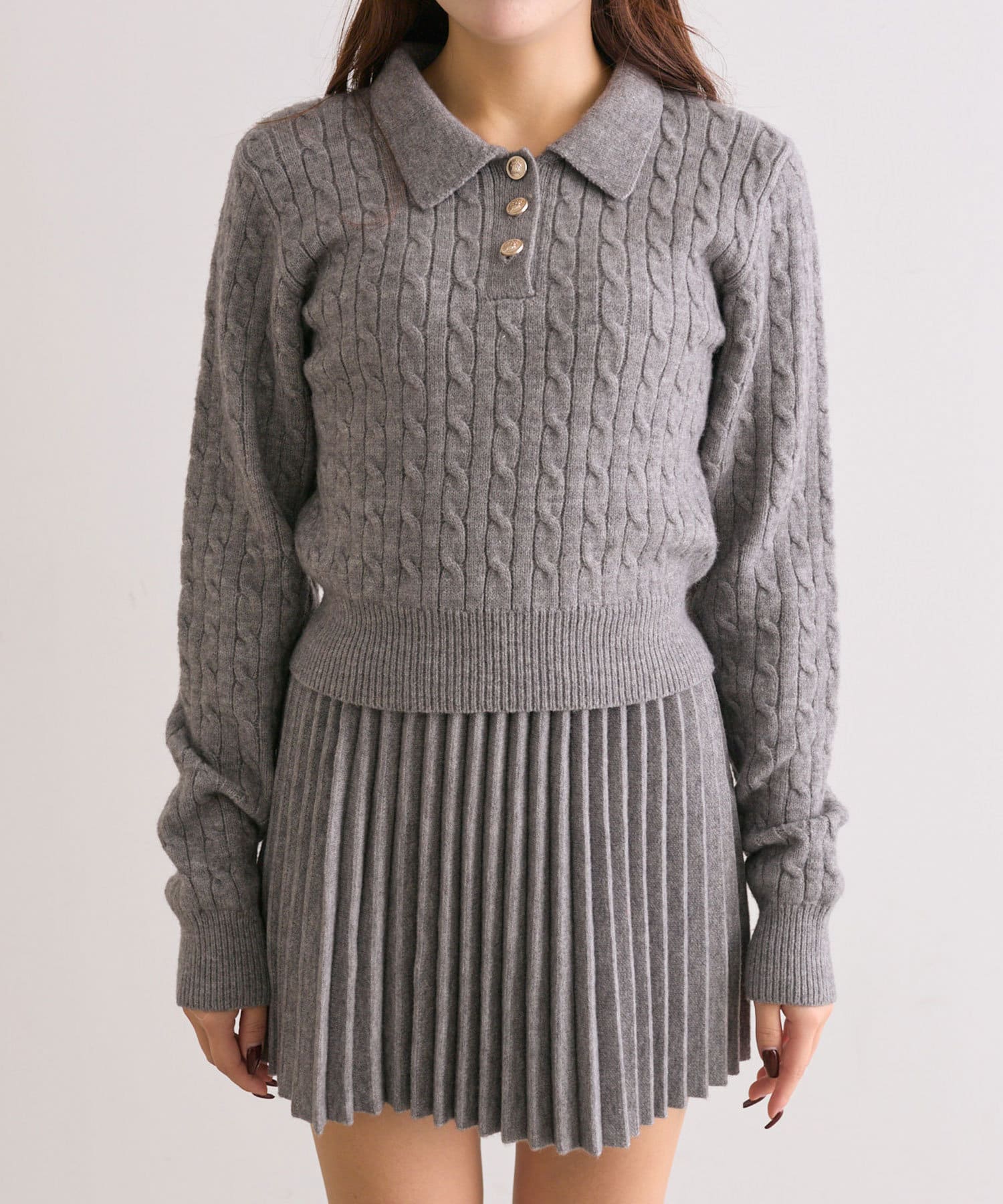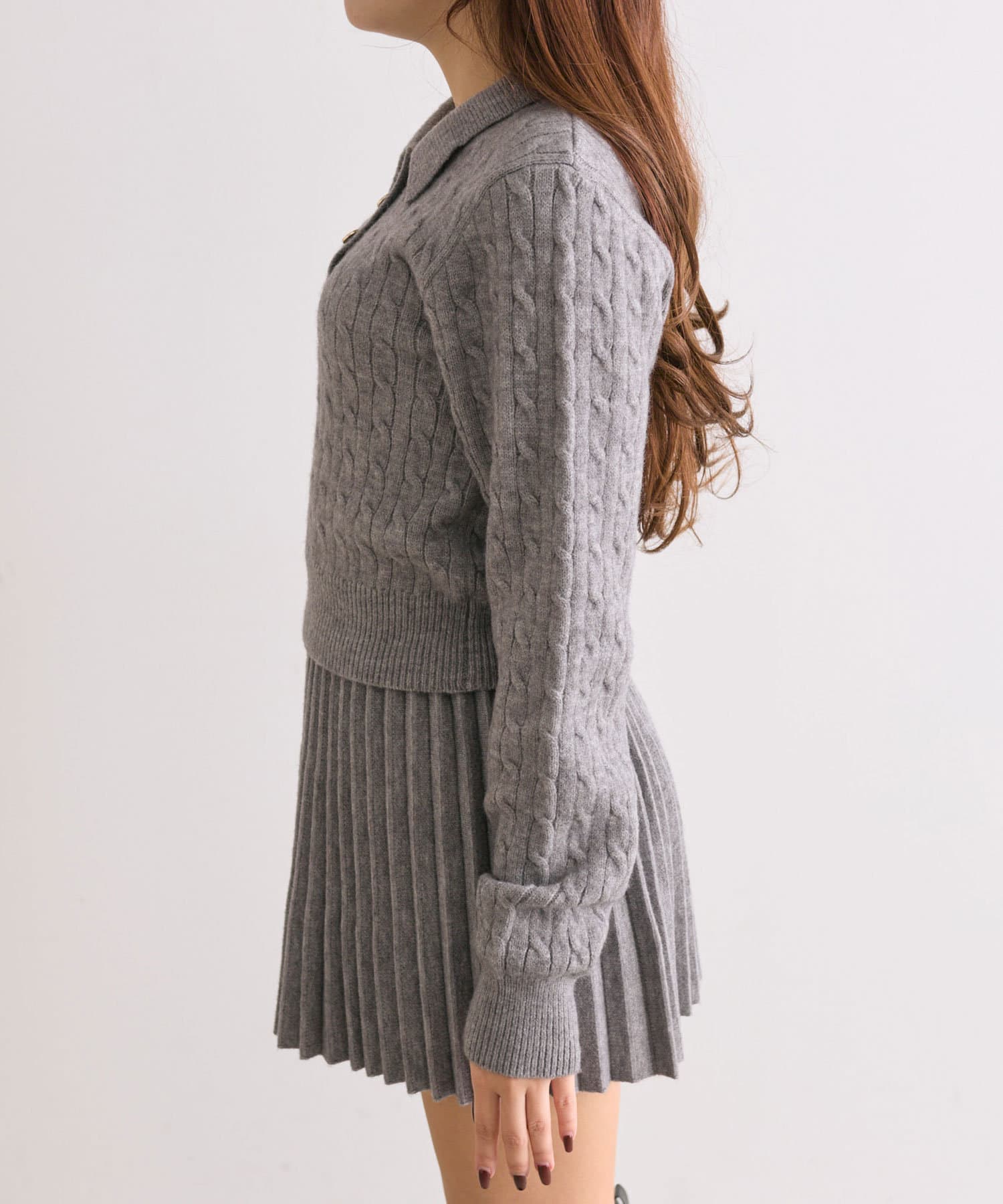・ニットプリーツスカート(商品番号:1042010220)と合わせてセットアップ風に着るのがおすすめ。