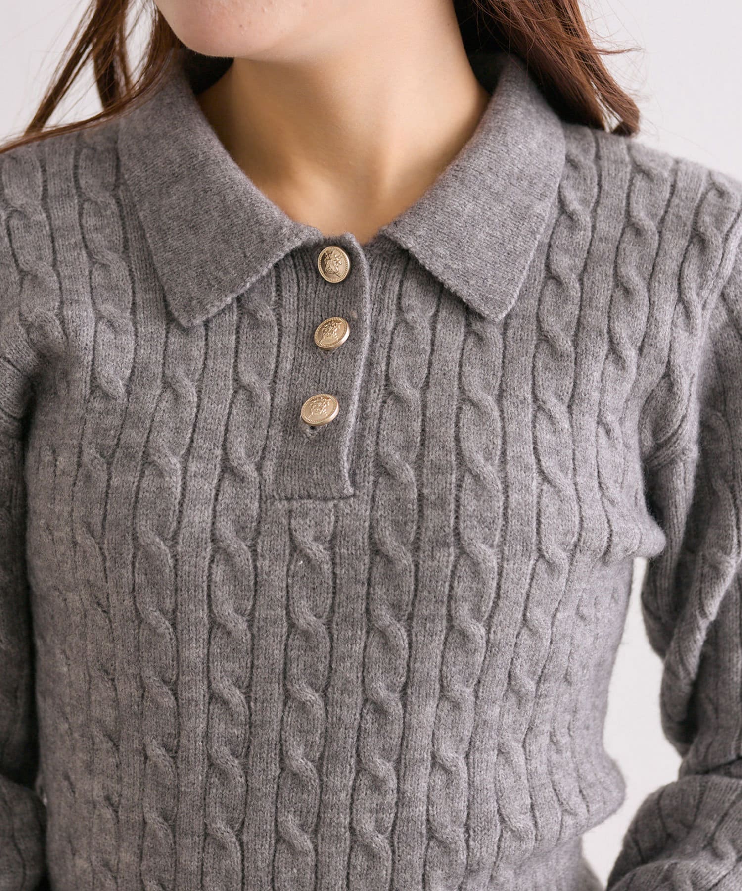 【SETUP対応】金ボタンケーブルポロ